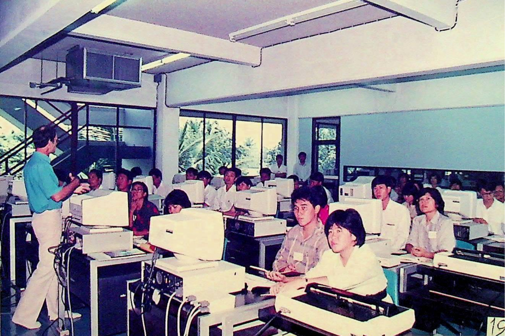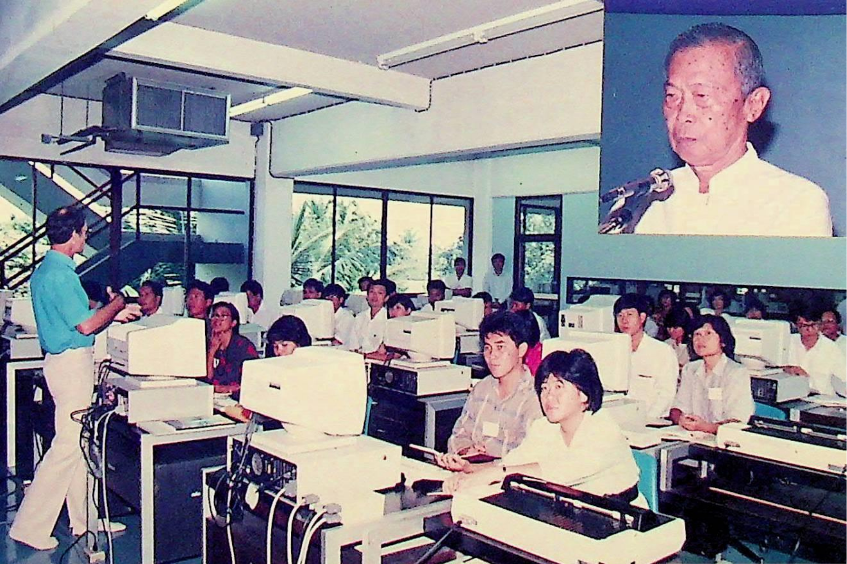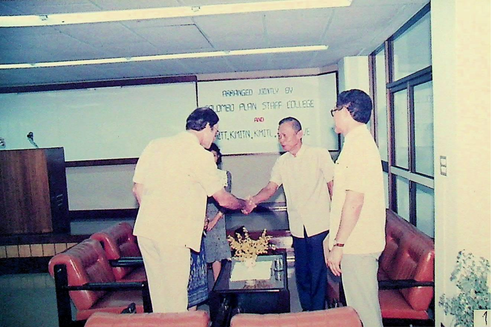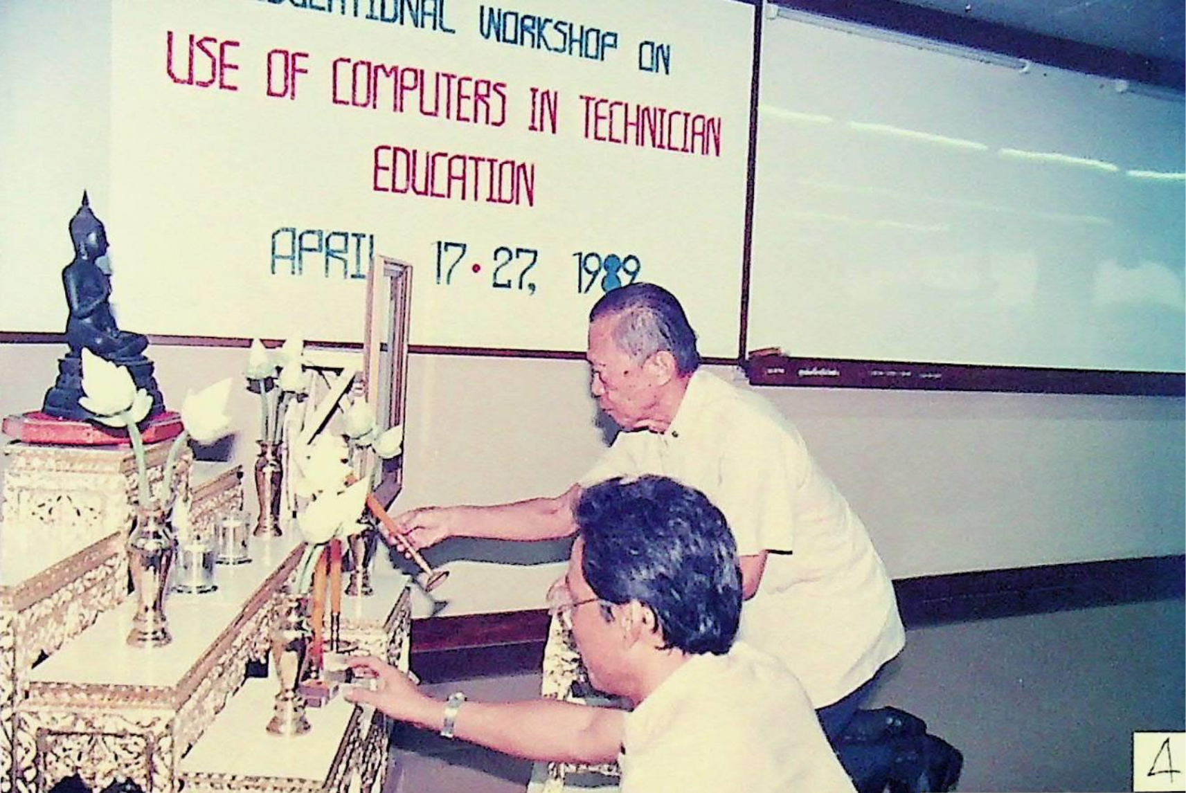 นายบุญเยียม มีศุข นายกสภาสถาบัน เป็นประธานเปิดการอบรม “Use of Computers in Technician Education” ซึ่งจัดโดย สจธ., สจพ., สจล., สรม. และกรมอาชีวศึกษา ภายใต้การสนับสนุนโครงการของวิทยาลัยนักบริหารช่างเทคนิค โคลัมโบ (CPSC) ระหว่างวันที่ 17 – 27 เมษายน 2532 ณ ศูษย์เครื่องมือวิทายาศาสตร์ฯ จากภาพถ่ายอัลบั้มที่ 3215