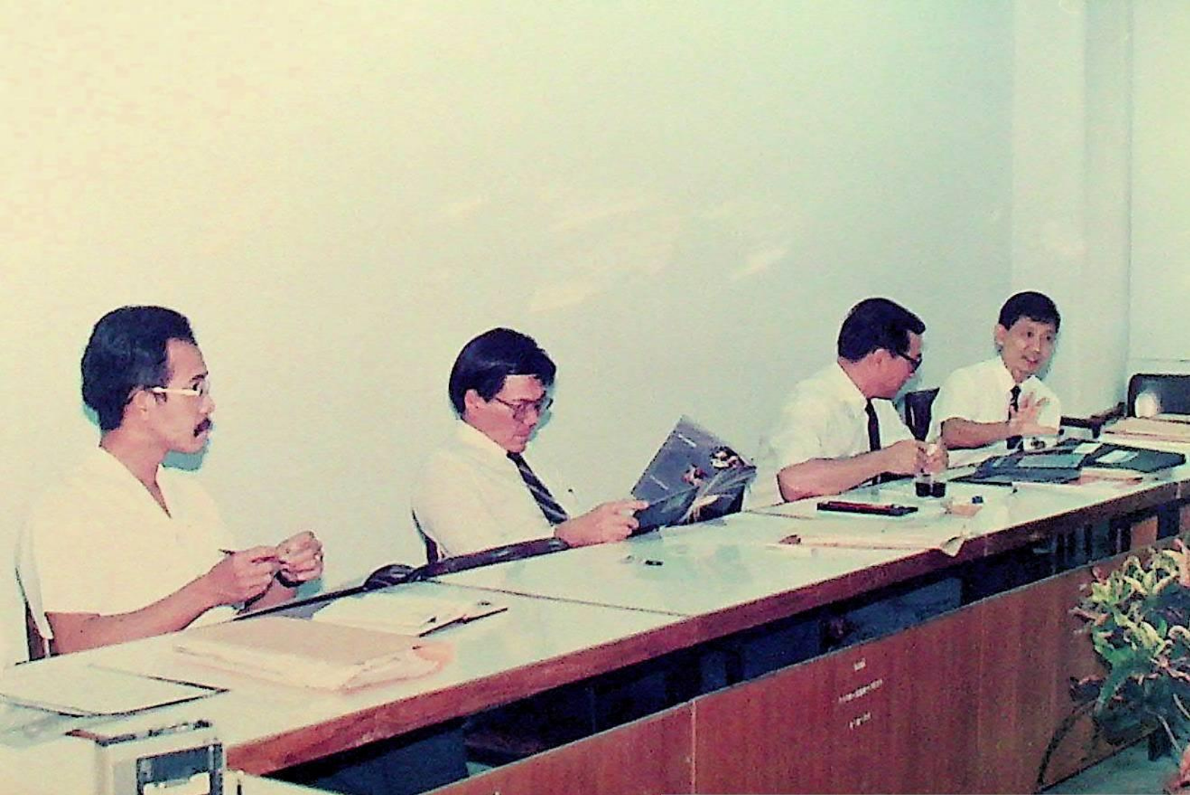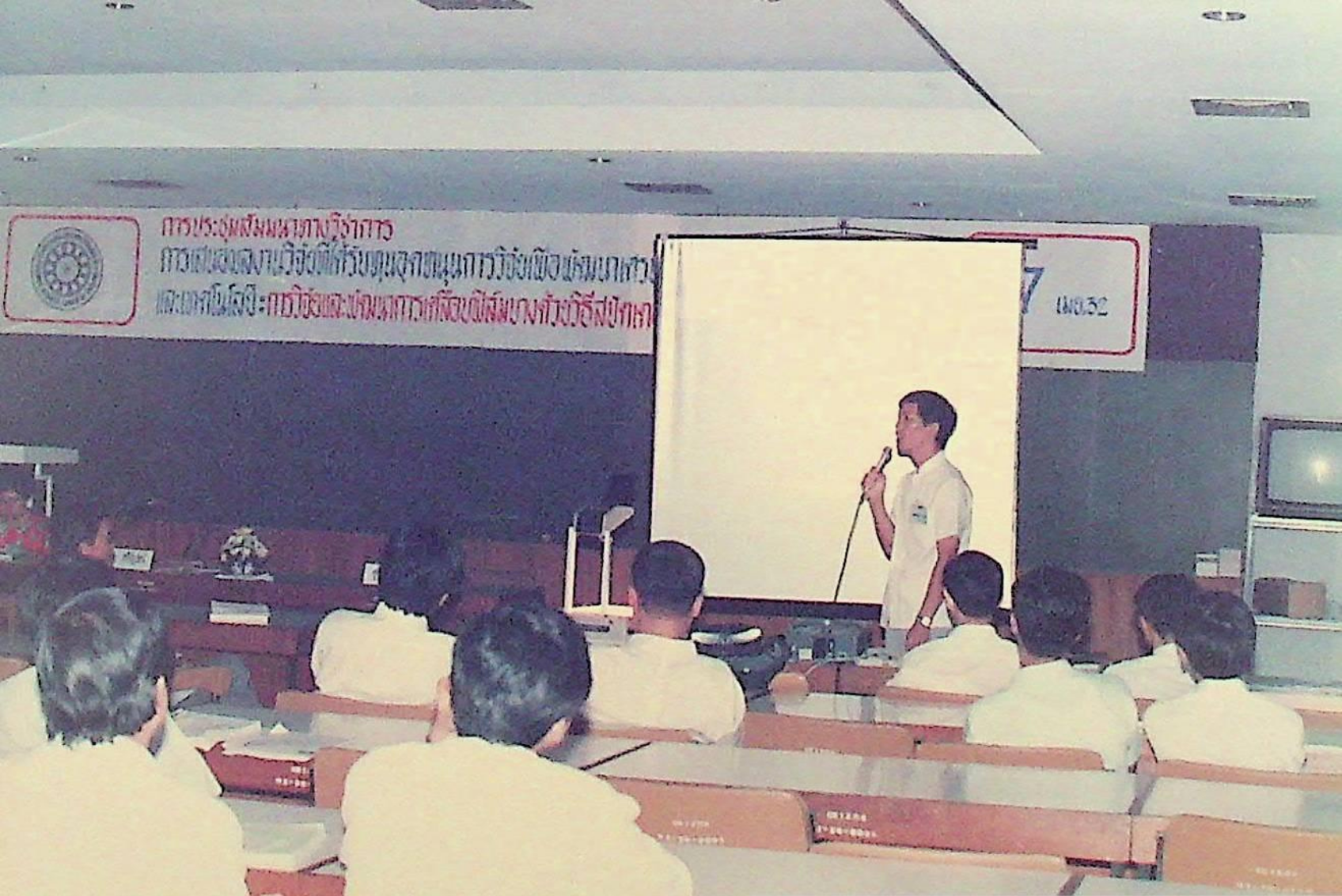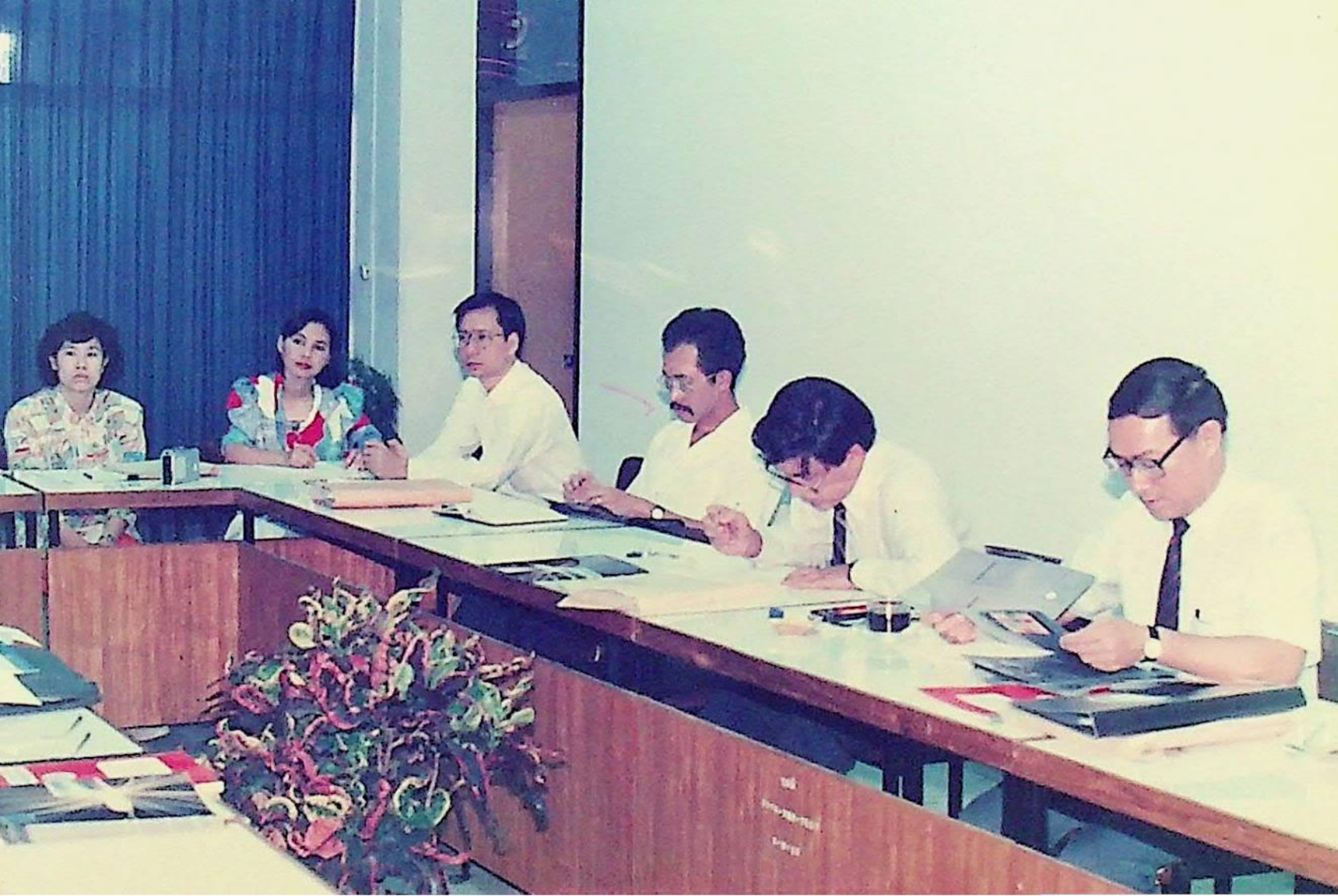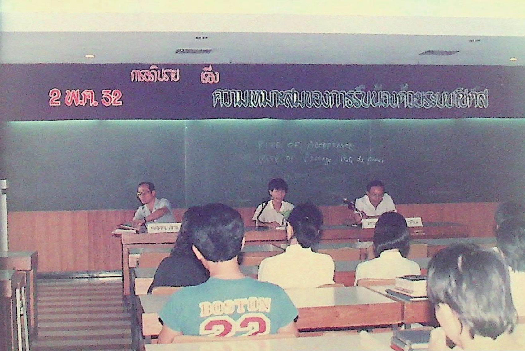 ผู้บริหารของสถาบันพัฒนาและฝึกอบรมโรงงานต้นแบบ ร่วมประชุมสัมมนากับบริษัทพัฒนาเทคโนโลยีของประเทศออสเตรเลีย ณ ภาควิชาวิศวกรรมเคมี ในวันที่ 26 เมษายน 2532 จากภาพถ่ายอัลบั้มที่ 3221