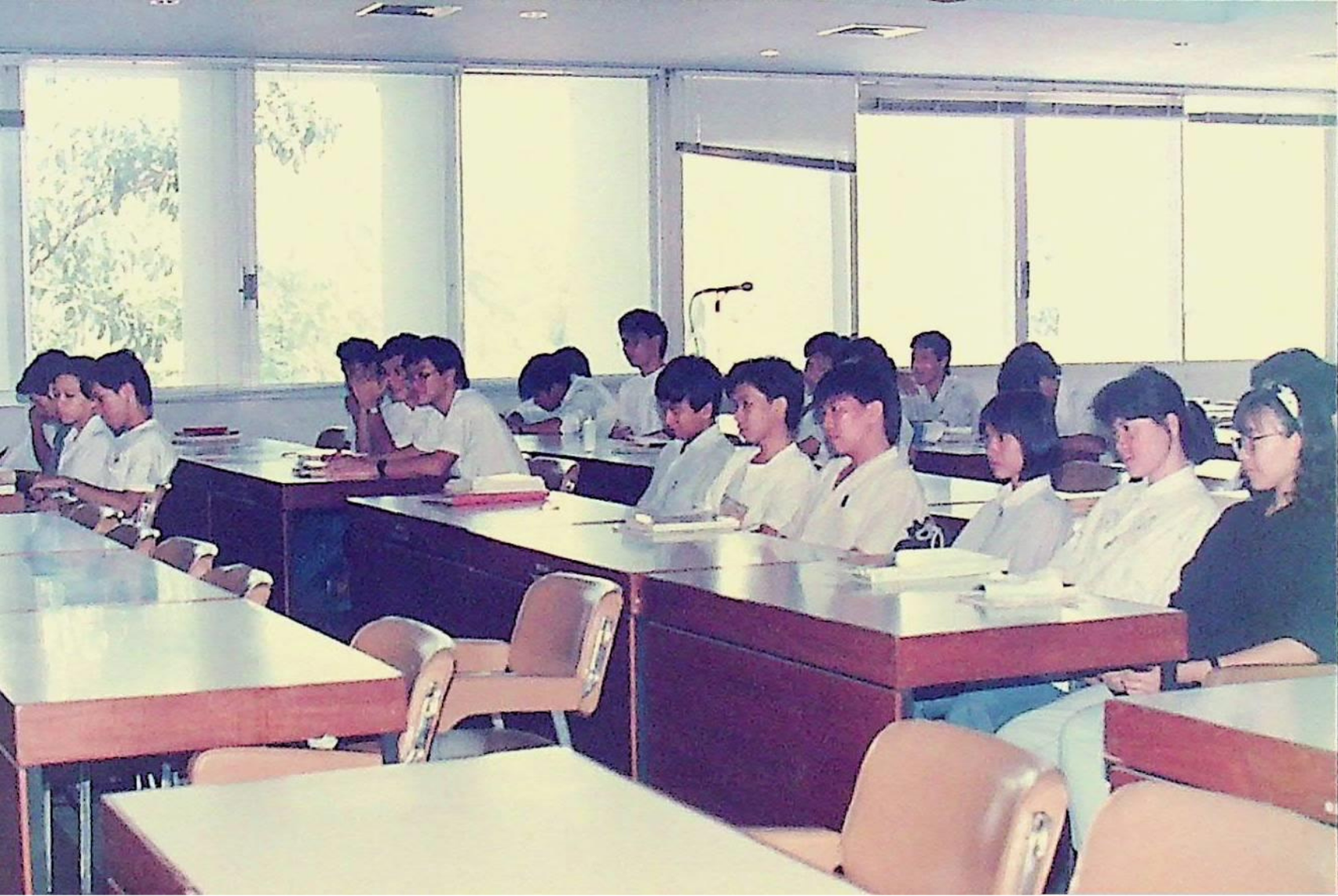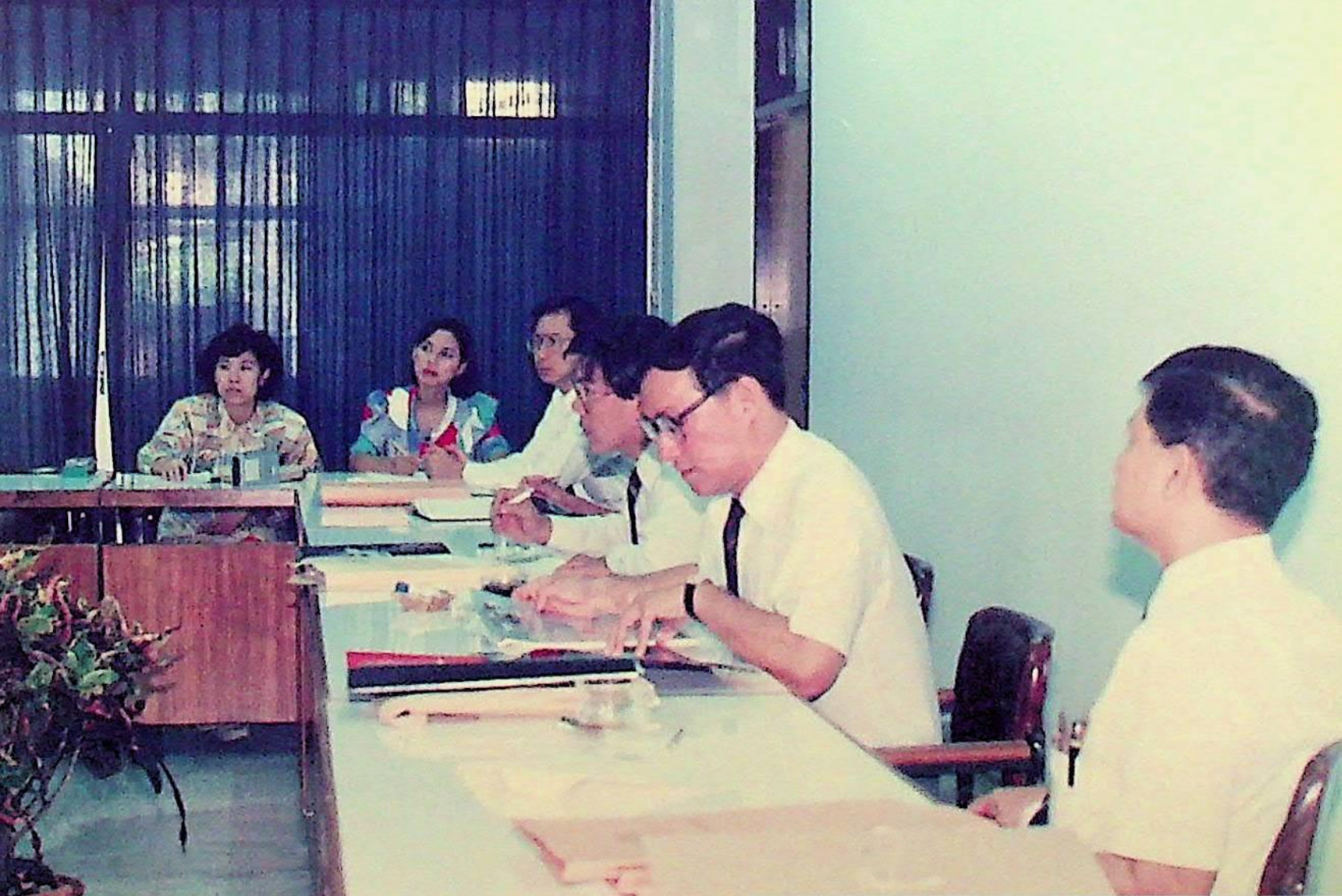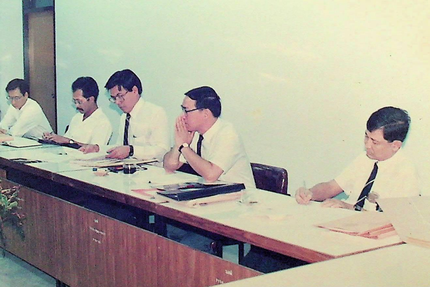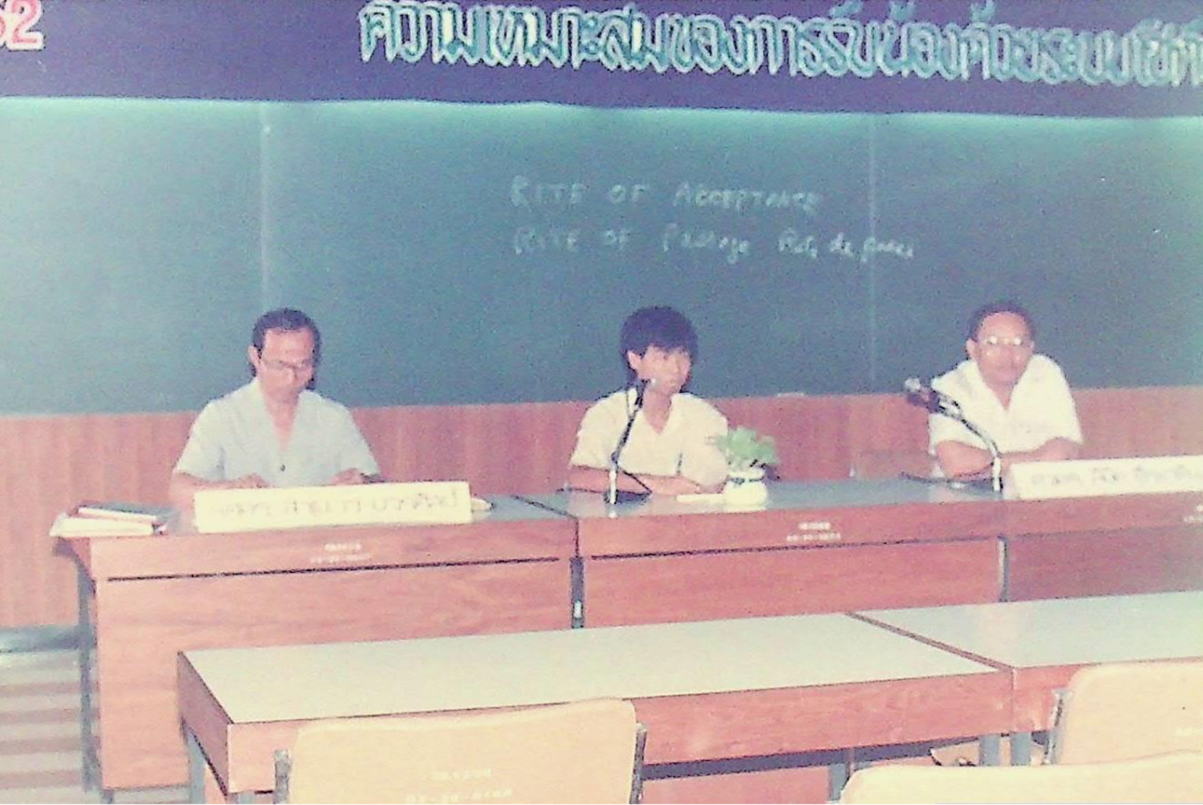 ผู้บริหารของสถาบันพัฒนาและฝึกอบรมโรงงานต้นแบบ ร่วมประชุมสัมมนากับบริษัทพัฒนาเทคโนโลยีของประเทศออสเตรเลีย ณ ภาควิชาวิศวกรรมเคมี ในวันที่ 26 เมษายน 2532 จากภาพถ่ายอัลบั้มที่ 3221