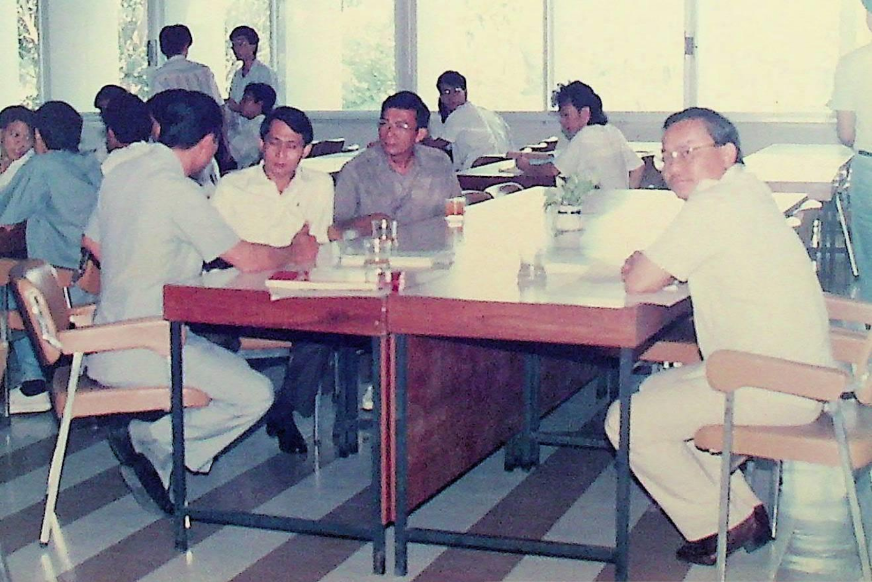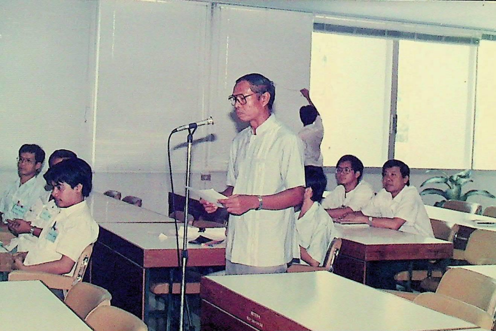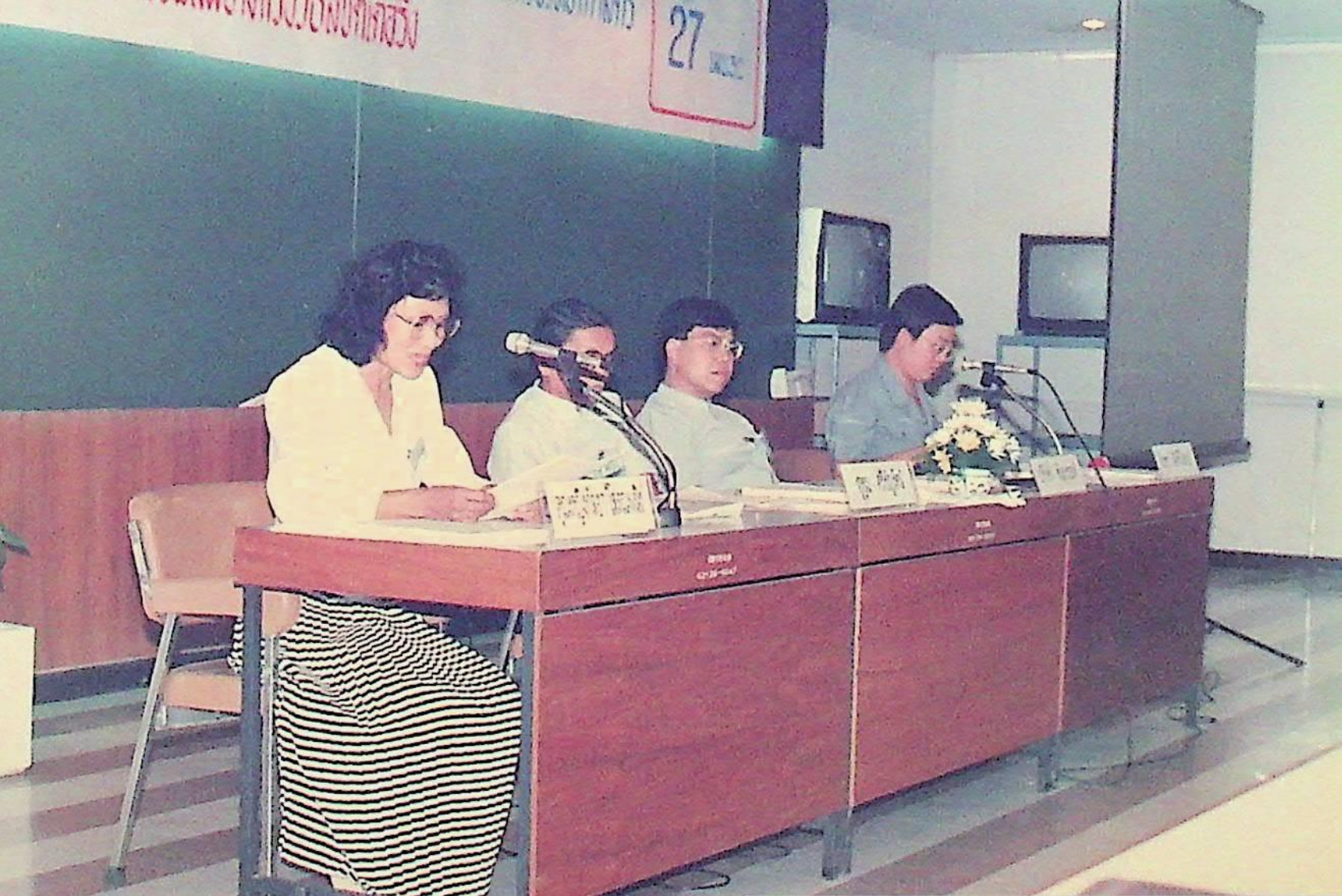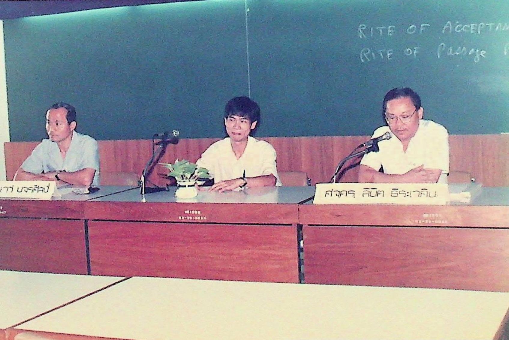 ผู้บริหารของสถาบันพัฒนาและฝึกอบรมโรงงานต้นแบบ ร่วมประชุมสัมมนากับบริษัทพัฒนาเทคโนโลยีของประเทศออสเตรเลีย ณ ภาควิชาวิศวกรรมเคมี ในวันที่ 26 เมษายน 2532 จากภาพถ่ายอัลบั้มที่ 3221