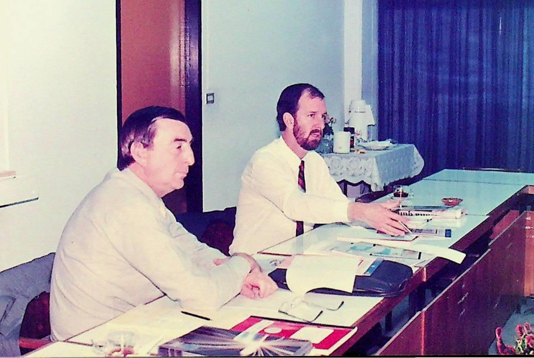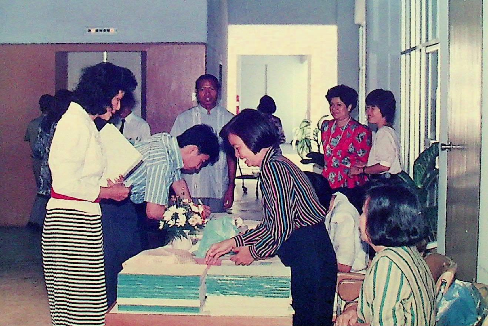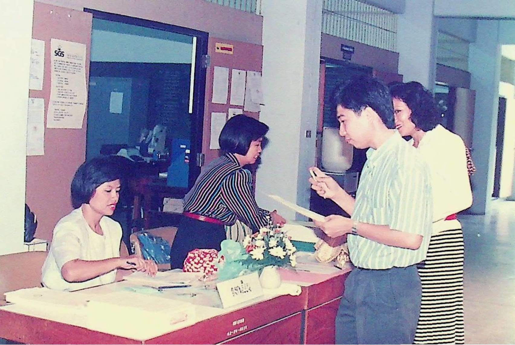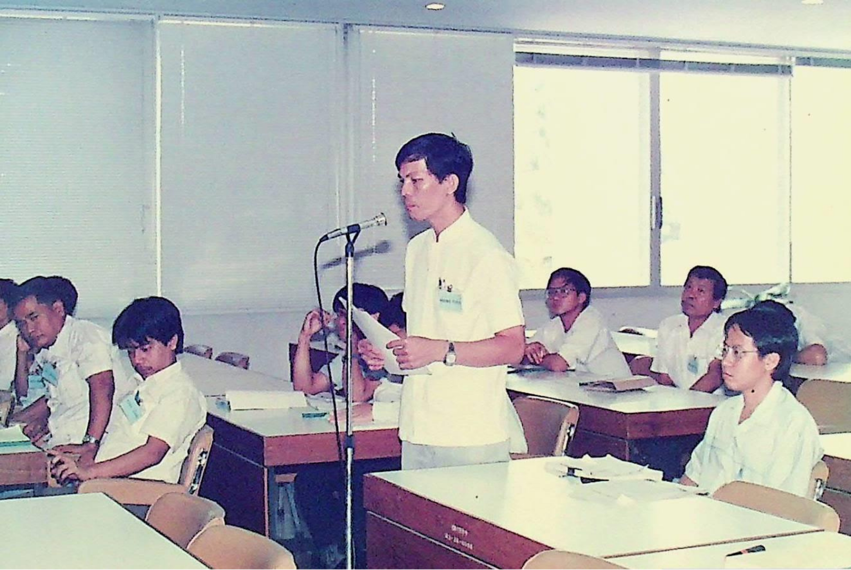 ผู้บริหารของสถาบันพัฒนาและฝึกอบรมโรงงานต้นแบบ ร่วมประชุมสัมมนากับบริษัทพัฒนาเทคโนโลยีของประเทศออสเตรเลีย ณ ภาควิชาวิศวกรรมเคมี ในวันที่ 26 เมษายน 2532 จากภาพถ่ายอัลบั้มที่ 3221