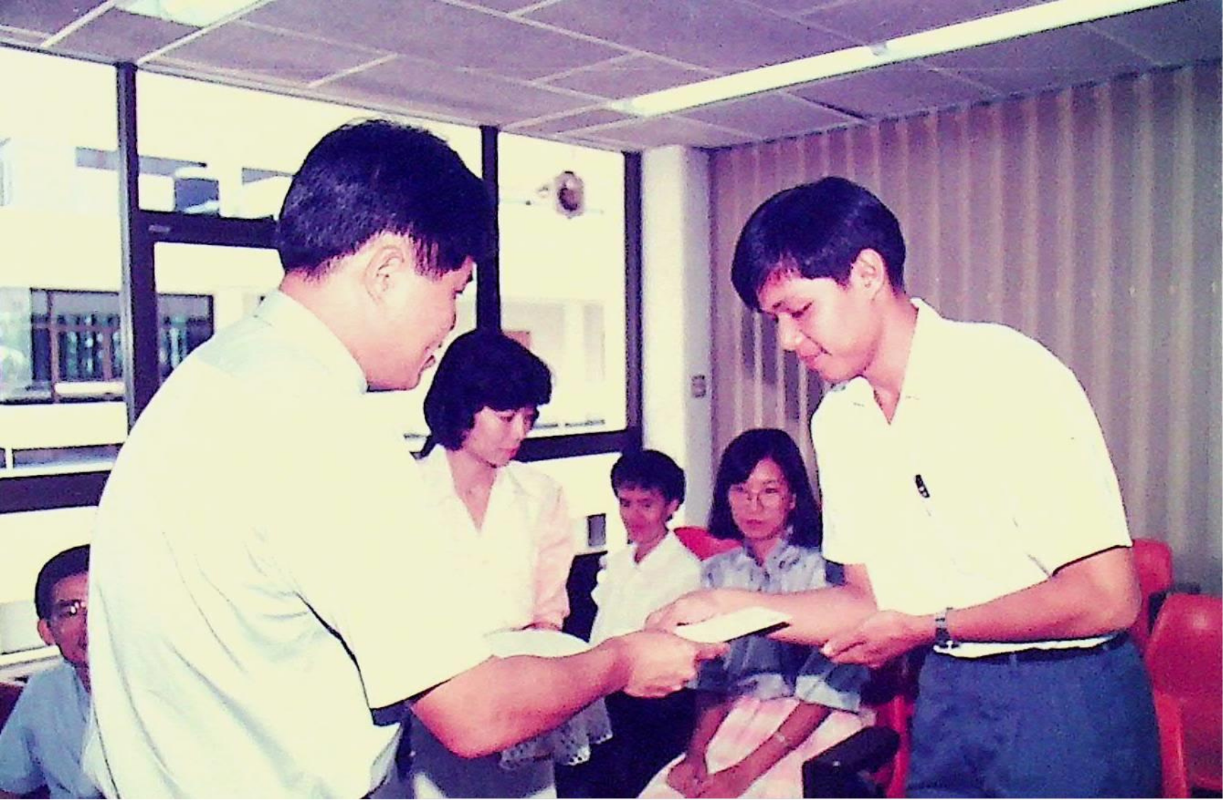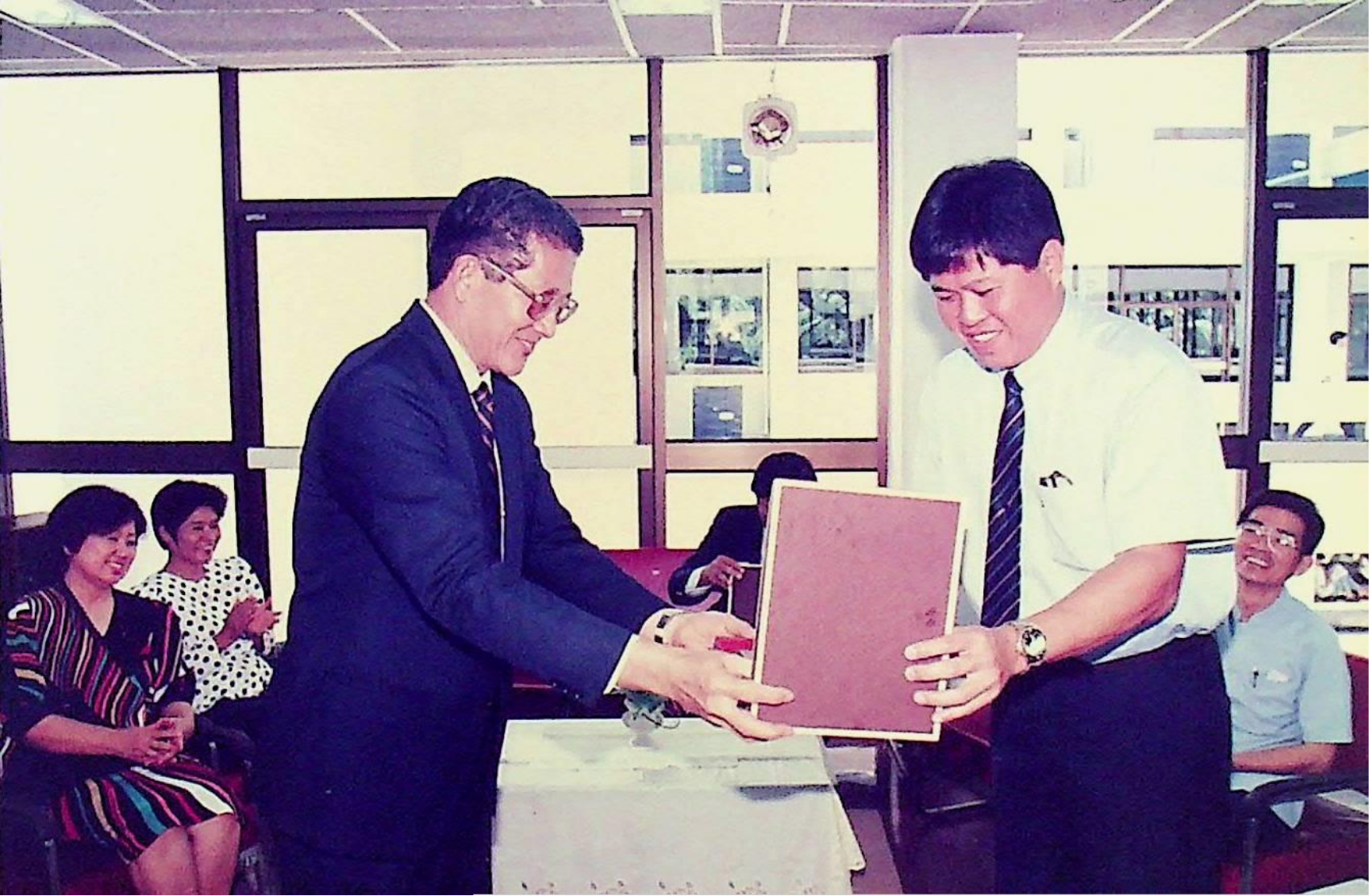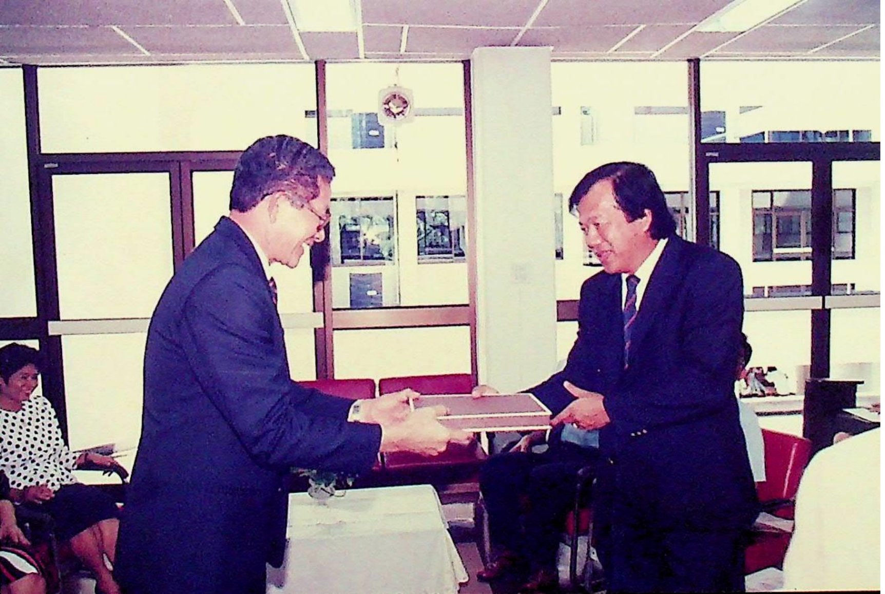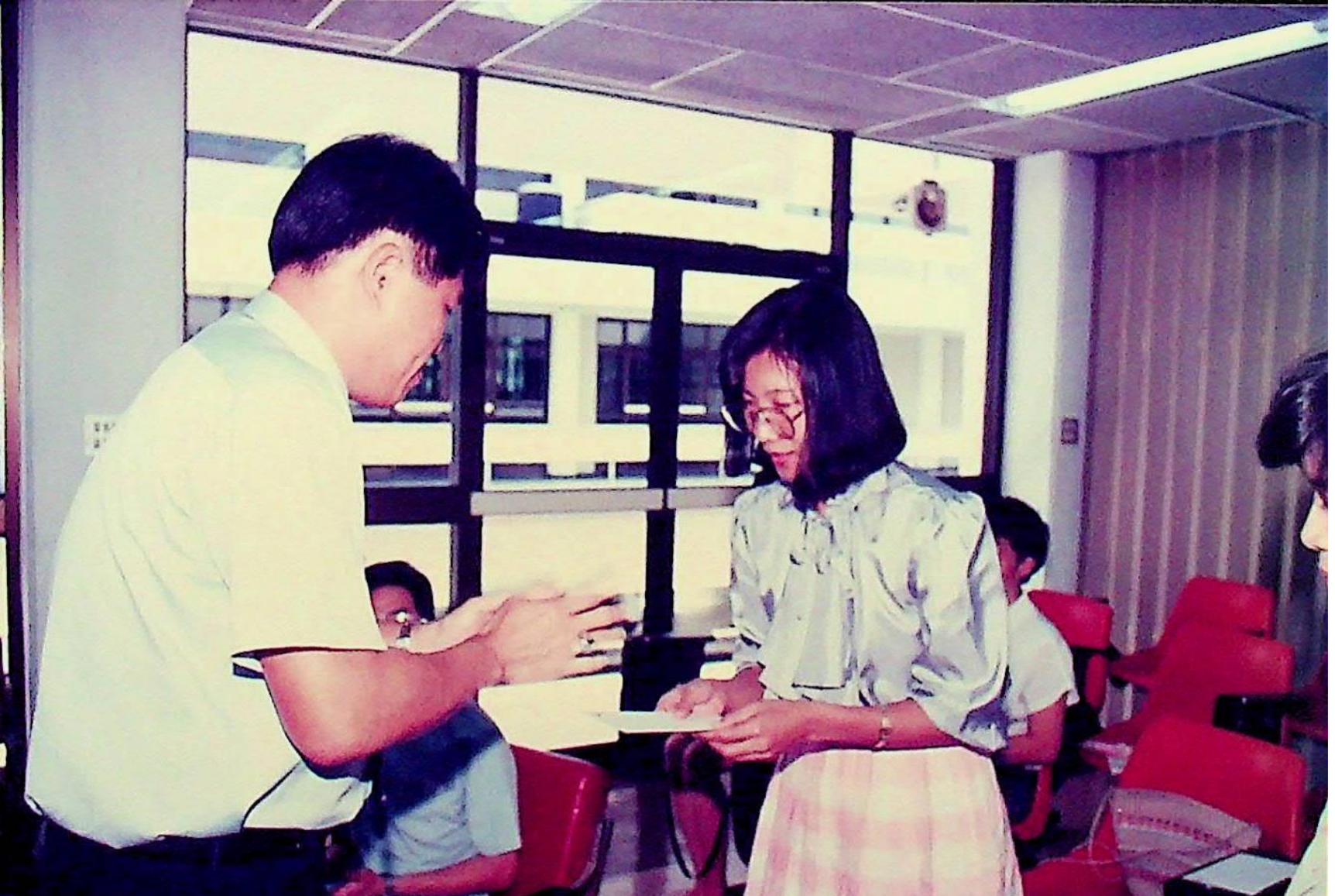 อธิการบดีมอบโล่เกียรติคุณให้แก่ ดร.วรศักดิ์ วรภมร และอาจารย์อัศวิน ชินกำธรวงค์ อดีตอาจารย์ของสถาบัน เนื่องในโอกาสที่ทั้งสองท่านได้มอบทุนการศึกษาแก่นักศึกษาปริญญาโท ภาควิชาภาษาและสังคม จำนวนท่านละ 2 ทุน ทุนละ 5,000 บาท ณ อาคารศูนย์เครื่องมือวิทยาศาสตร์ฯ ในวันที่ 8 มิถุนายน 2532 จากภาพถ่ายอัลบั้มที่ 3223 และ 3224