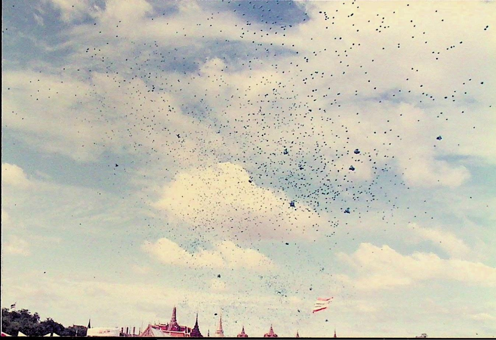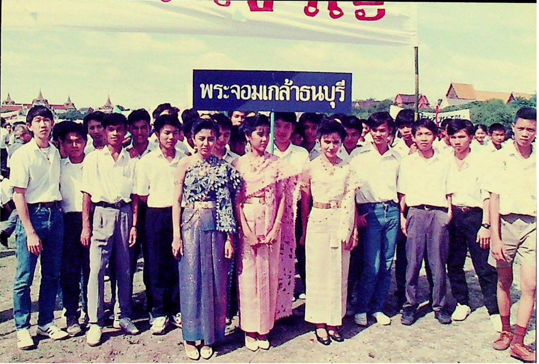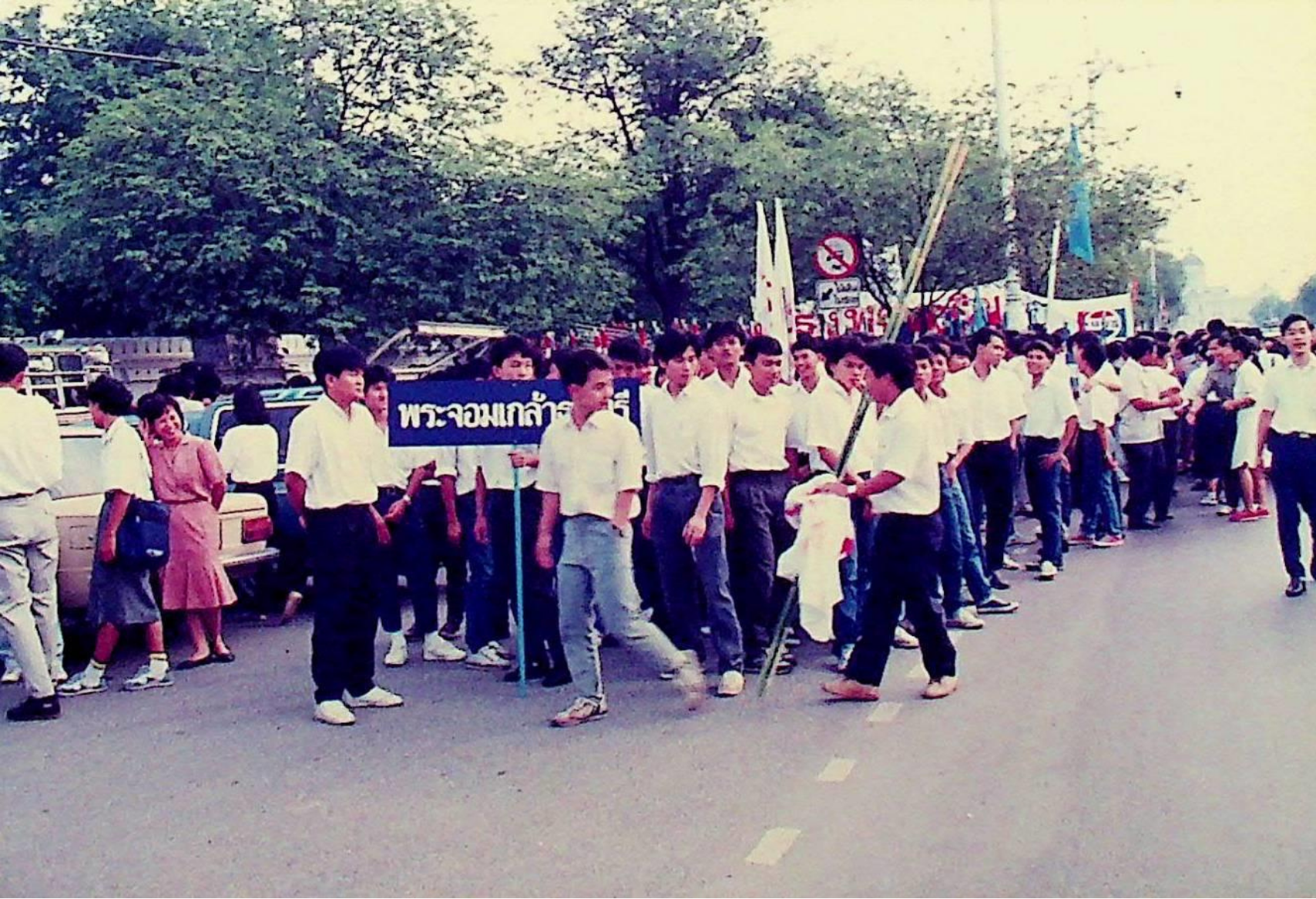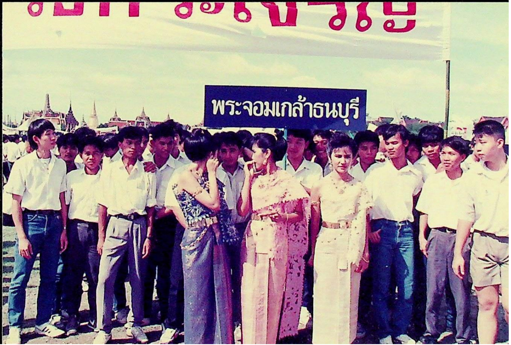 ข้าราชการและนักศึกษาของสถาบัน ร่วมขบวนเดินเทิดพระเกียรติ เนื่องในวันเฉลิมพระชนมพรรษาพระบรมราชินีนาถ จากสะพานมัฆวานรังสรรค์ไปท้องสนามหลวง ณ ถนนราชดำเนิน ในวันที่ 12 สิงหาคม 2532 จากภาพถ่ายอัลบั้มที่ 3231
