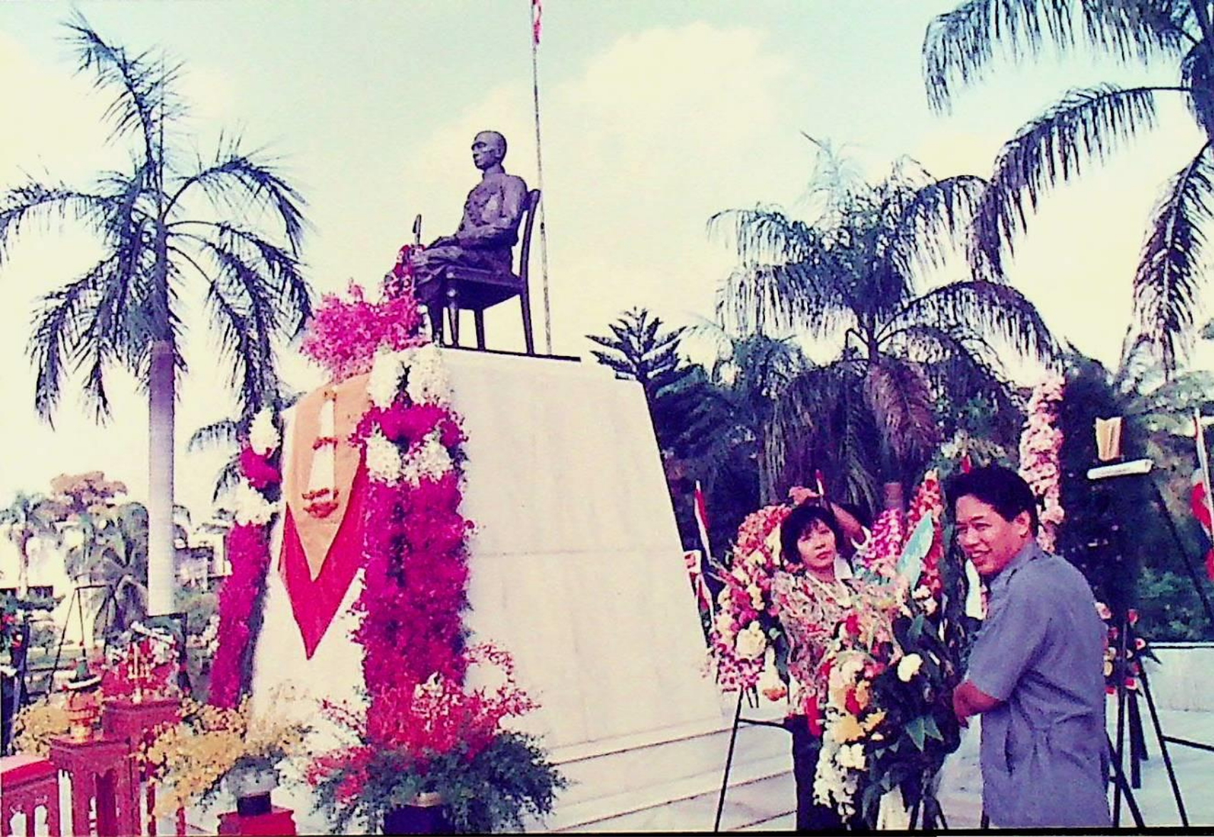 พิธีวางพวงมาลาเนื่องในวันคล้ายวันสวรรคต พระบาทสมเด็จพระจอมเกล้าเจ้าอยู่หัว ณ ลานพระรูป ร.4 ในวันที่ 1 ตุลาคม 2532 จากภาพถ่ายอัลบั้มที่ 3238 และ 3239