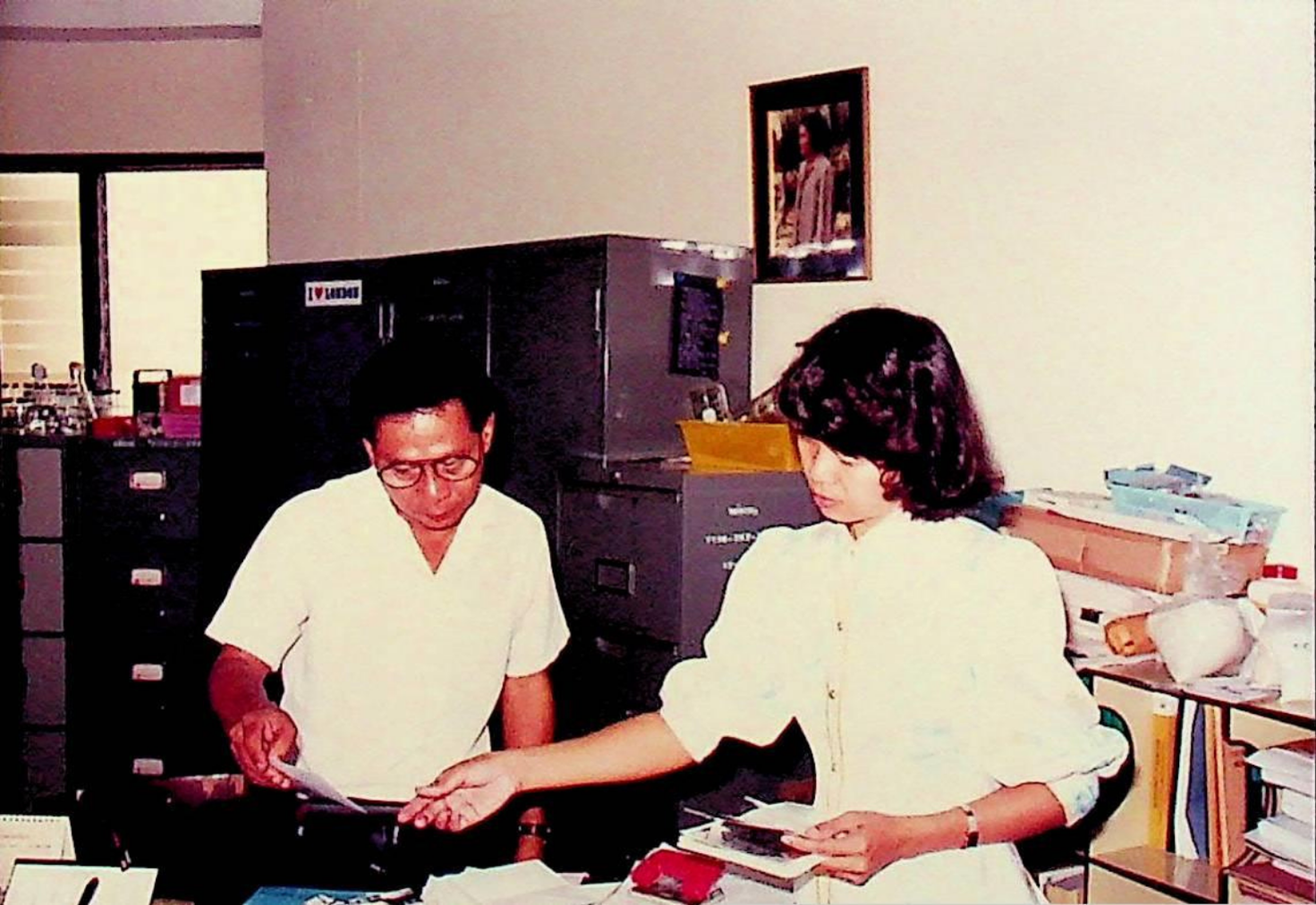 คุณสมศักดิ์ อรรถอิทธิรุจน์ ผู้สื่อข่าวหนังสือพิมพ์ประชาชาติธุรกิจ ทำข่าวการเคลือบฟิล์มบางด้วยวิธี Sputtering โดยสัมภาษณ์ ดร.สุพัฒน์พงษ์ ดำรงค์รัตน์ และการเคลือบแบบ Multilayer โดยสัมภาษณ์ ดร.พิเชษฐ ลิมสุวรรณ ร ภาควิชาฟิสิกส์ ในวันที่ 9 ตุลาคม 2532 จากภาพถ่ายอัลบั้มที่ 3241