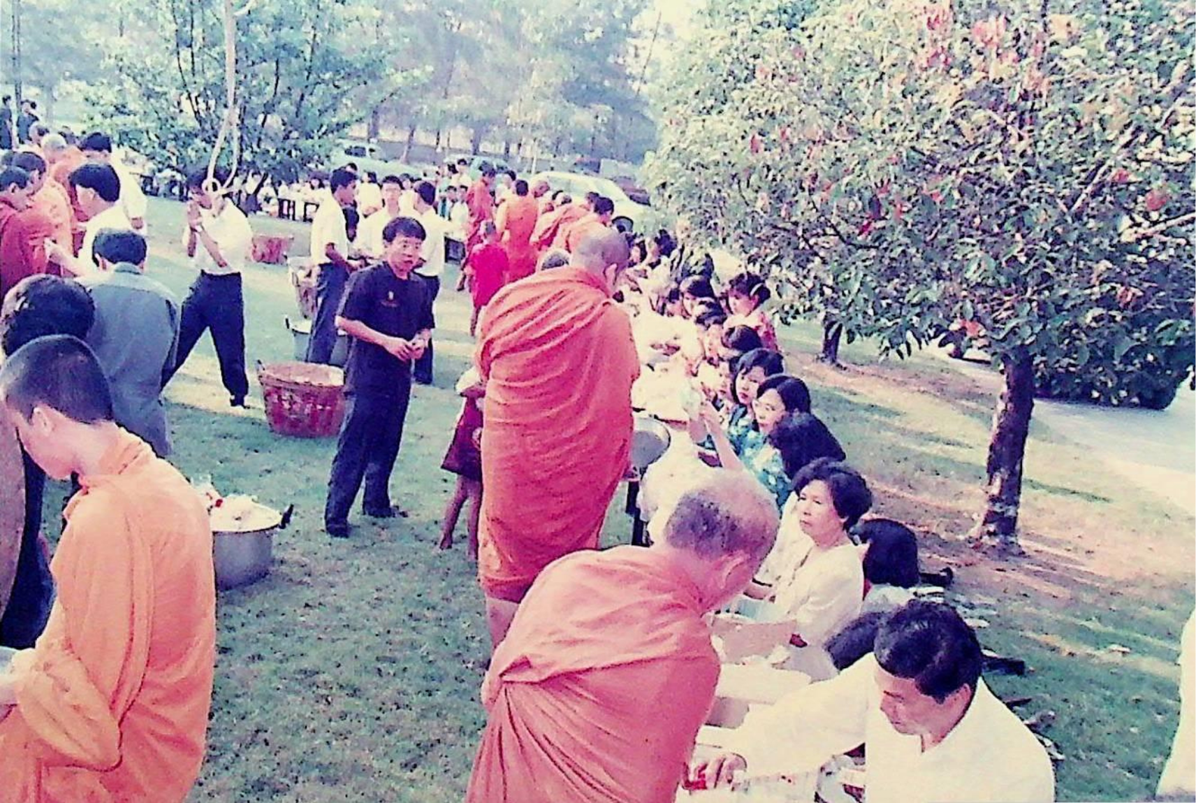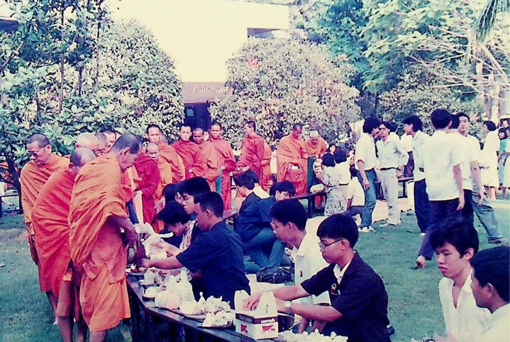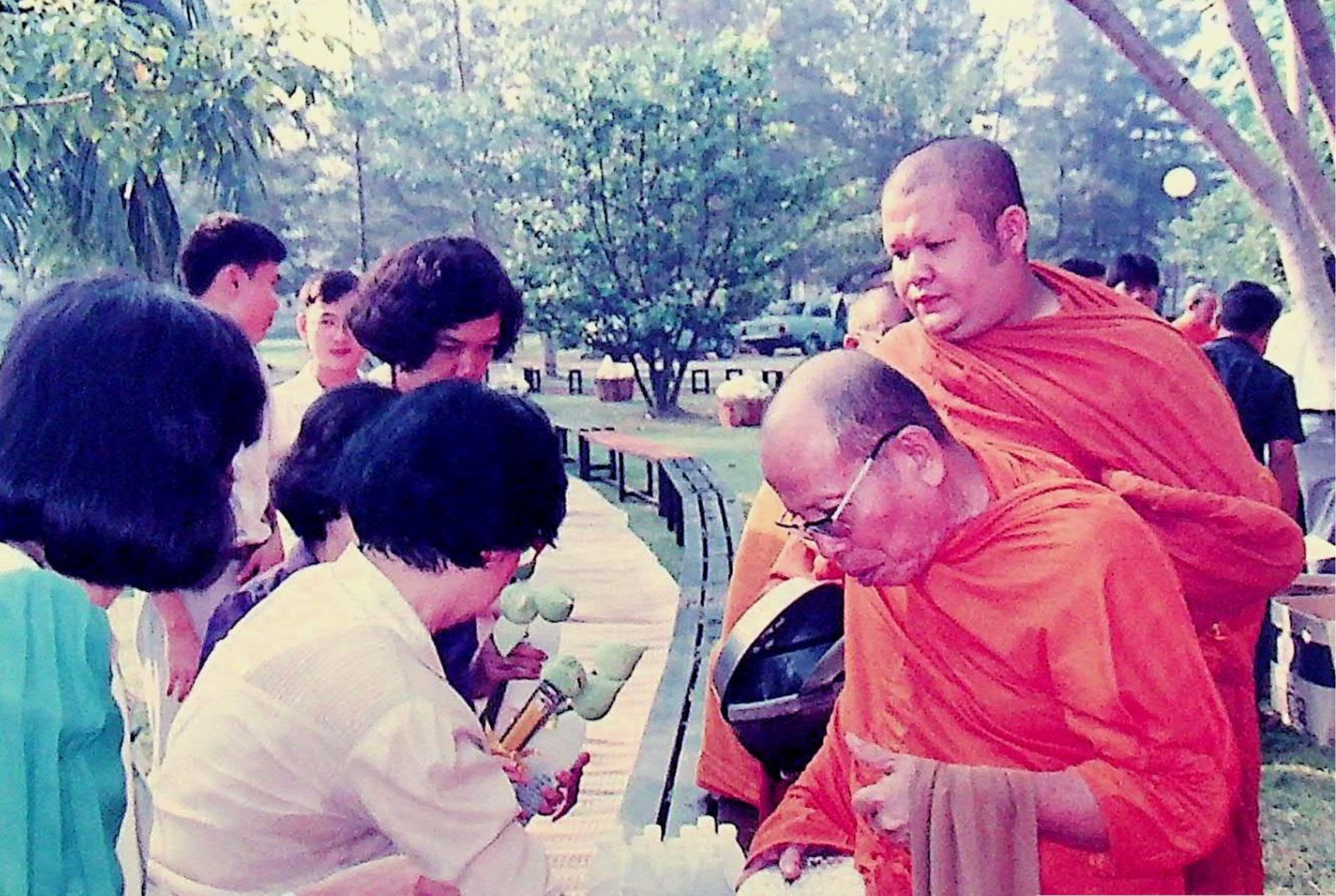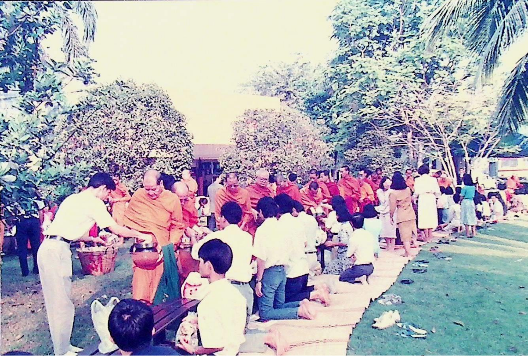 นักศึกษา อาจารย์ และเจ้าหน้าที่ของสถาบัน ร่วมกันทำบุญถวายภัตตาหารแด่พระสงฆ์จำนวน 31 รูป เนื่องในโอกาสครบรอบ 30 ปี สถาบันเทคโนโลยีพระจอมเกล้าธนบุรี ณ หน้าอาคารสํานักงานอธิการบดี ในวันที่ 31 มกราคม 2533 จากภาพถ่ายอัลบั้มที่ 333