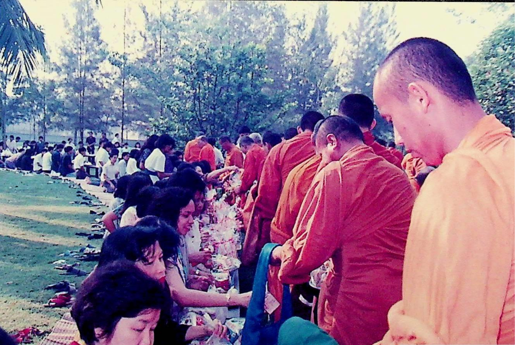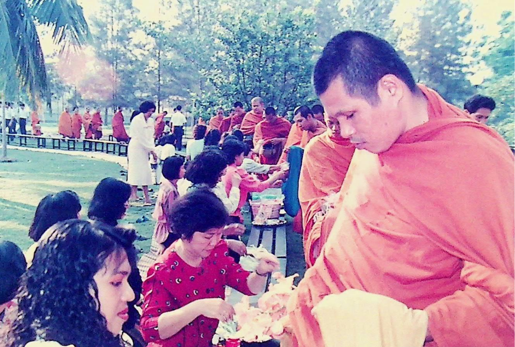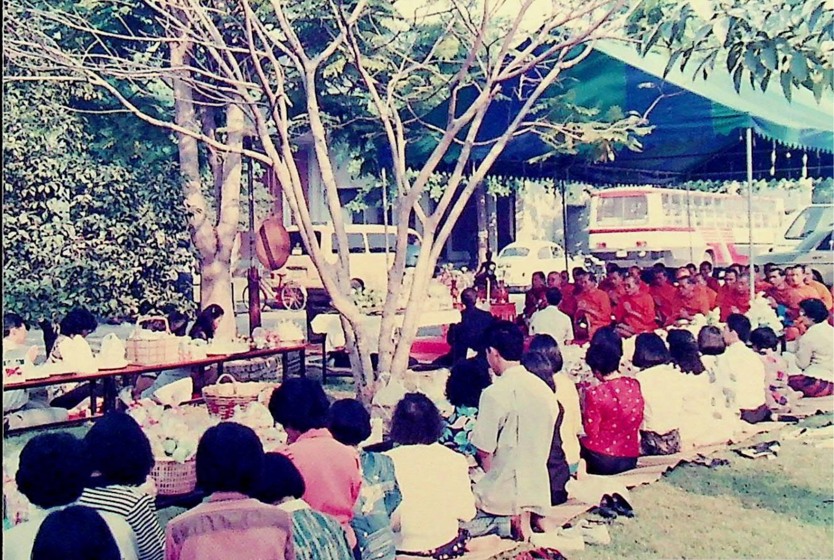นักศึกษา อาจารย์ และเจ้าหน้าที่ของสถาบัน ร่วมกันทำบุญถวายภัตตาหารแด่พระสงฆ์จำนวน 31 รูป เนื่องในโอกาสครบรอบ 30 ปี สถาบันเทคโนโลยีพระจอมเกล้าธนบุรี ณ หน้าอาคารสํานักงานอธิการบดี ในวันที่ 31 มกราคม 2533 จากภาพถ่ายอัลบั้มที่ 333