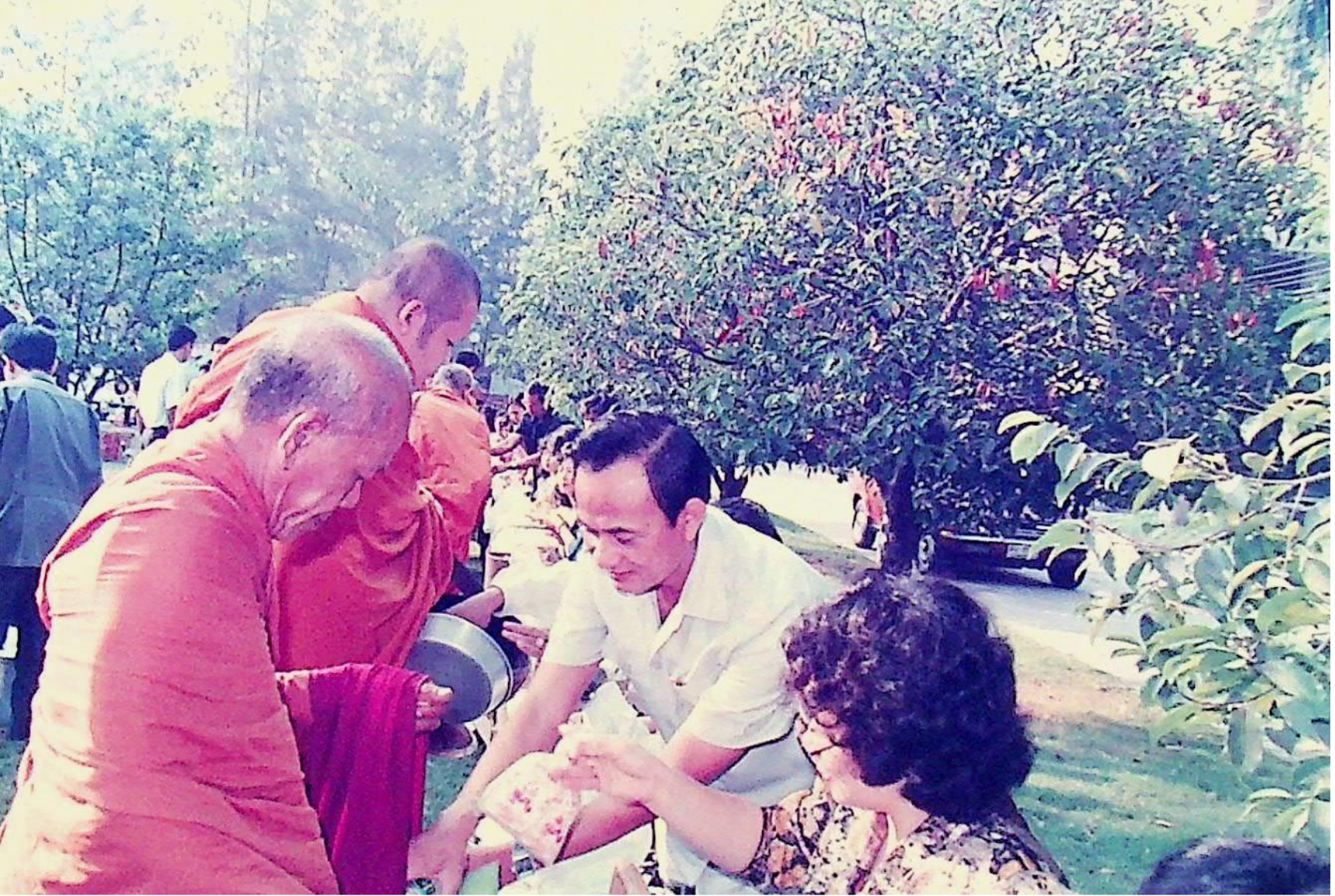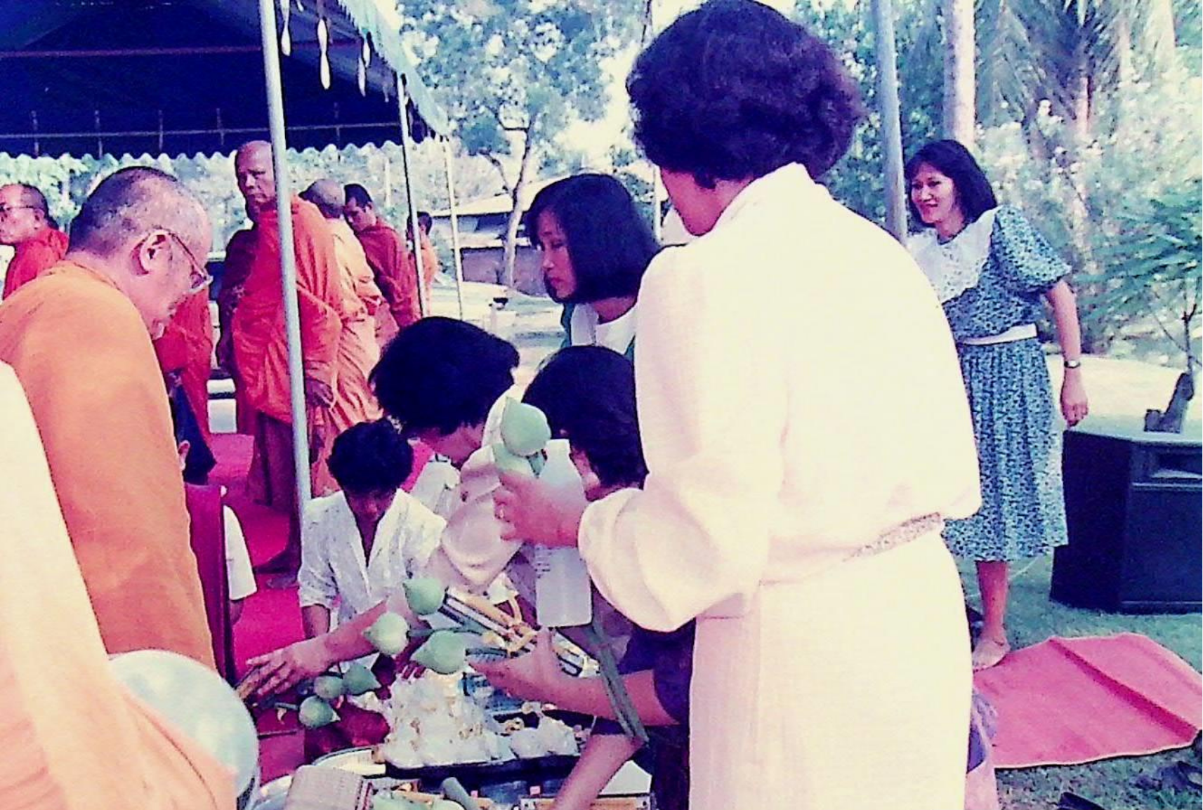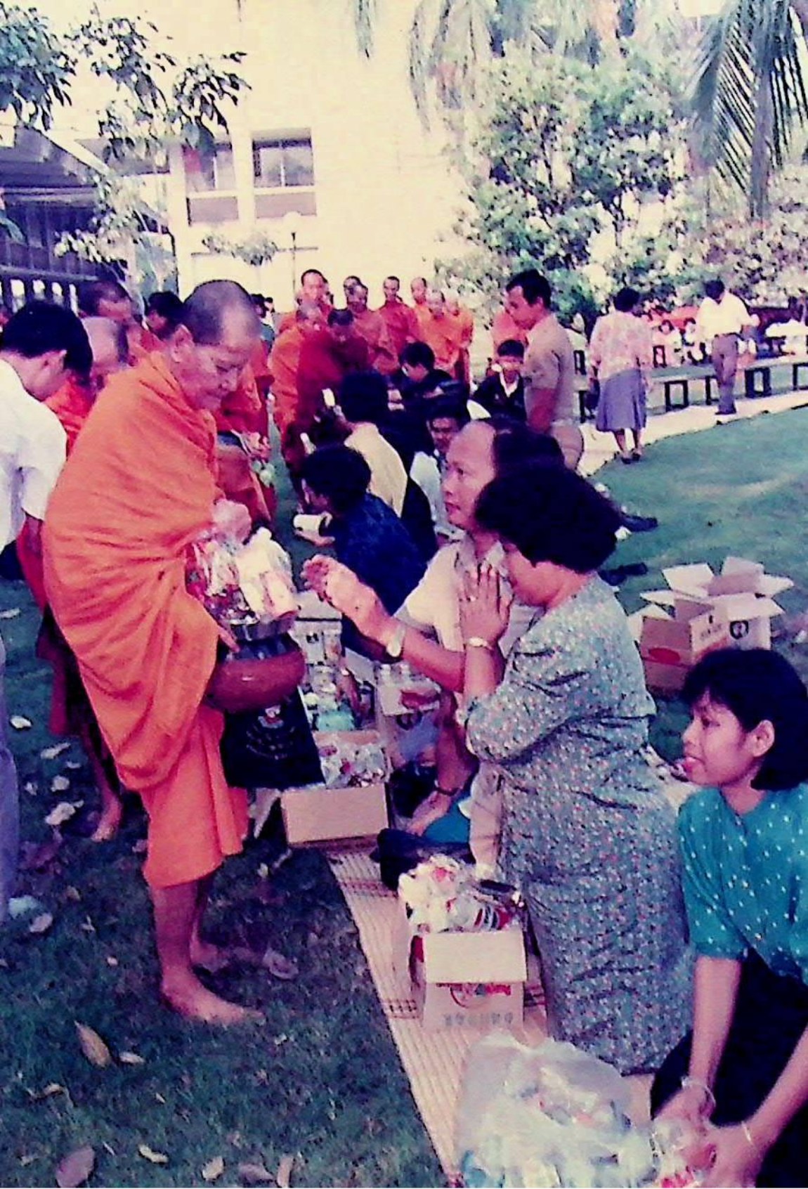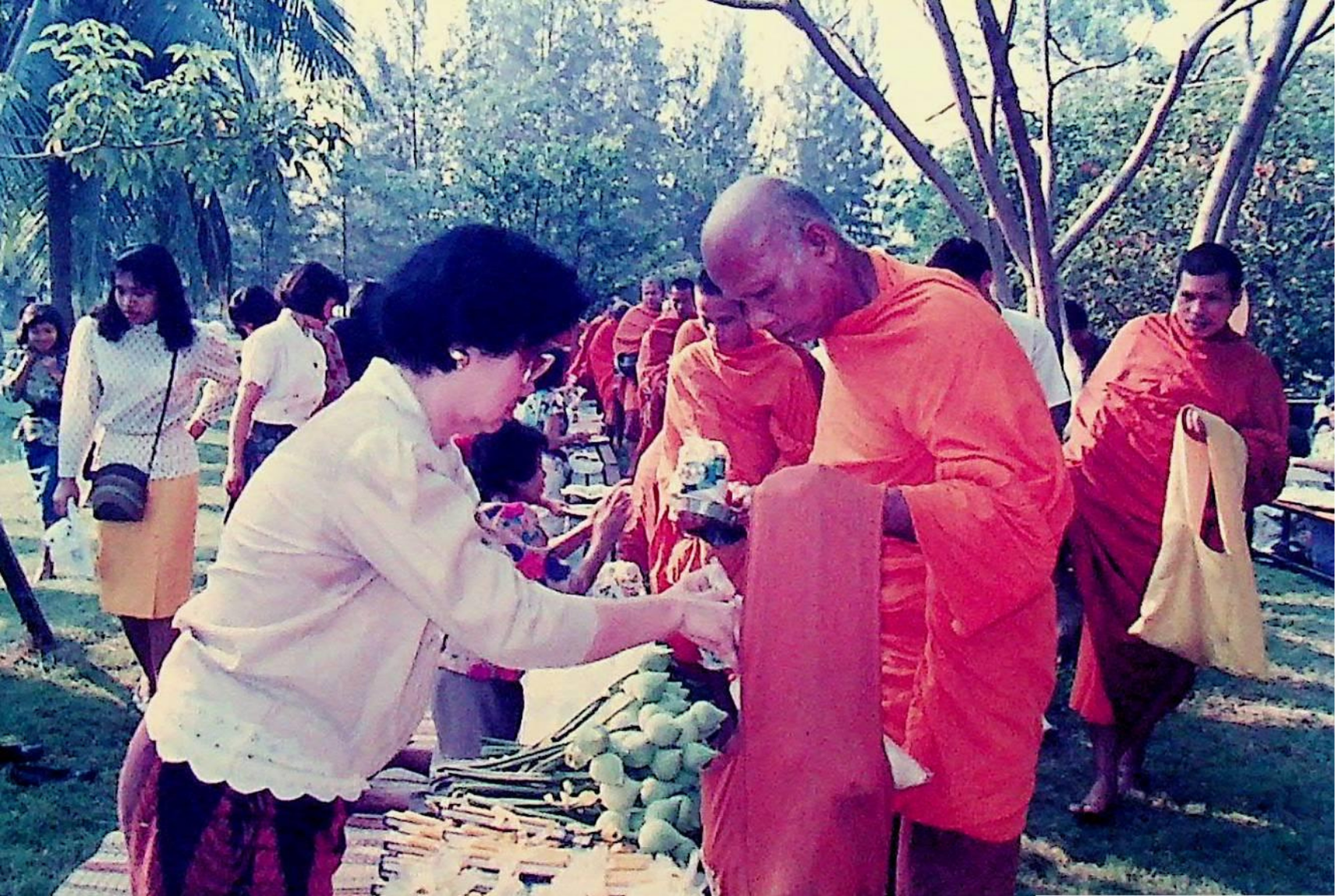 นักศึกษา อาจารย์ และเจ้าหน้าที่ของสถาบัน ร่วมกันทำบุญถวายภัตตาหารแด่พระสงฆ์จำนวน 31 รูป เนื่องในโอกาสครบรอบ 30 ปี สถาบันเทคโนโลยีพระจอมเกล้าธนบุรี ณ หน้าอาคารสํานักงานอธิการบดี ในวันที่ 31 มกราคม 2533 จากภาพถ่ายอัลบั้มที่ 333