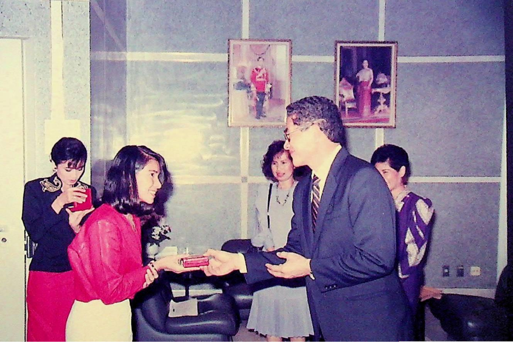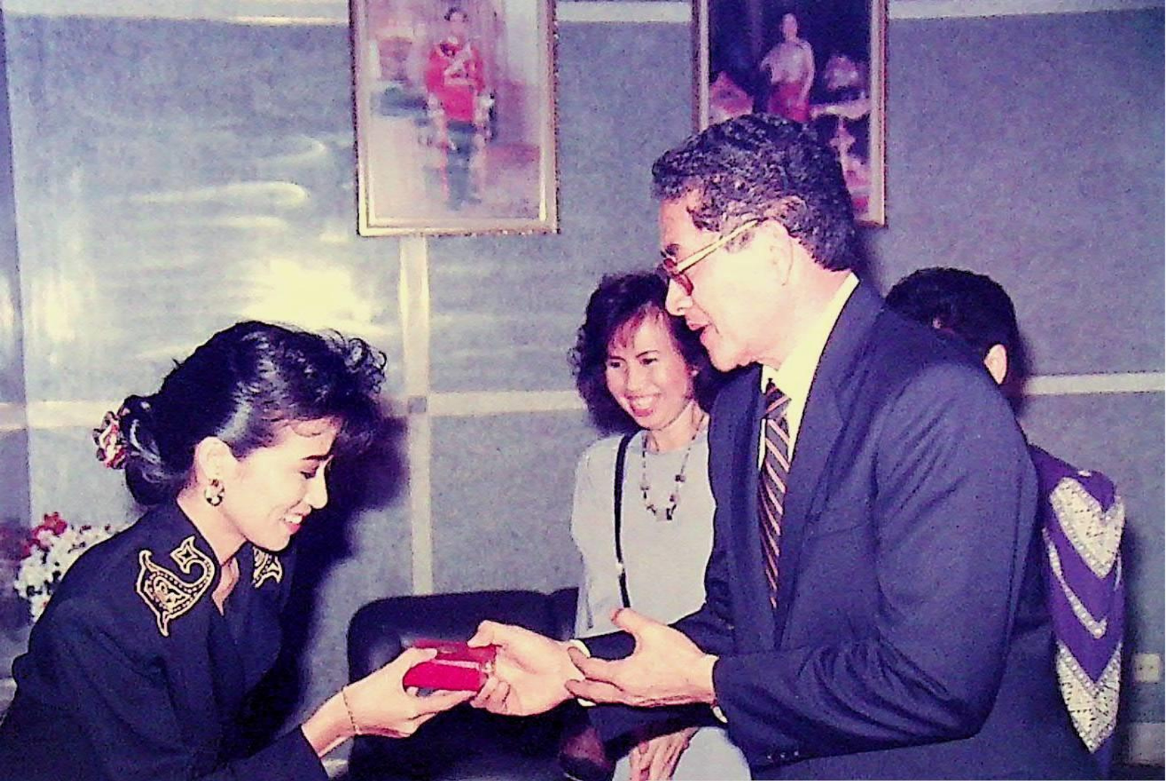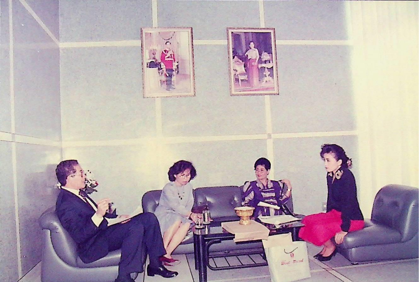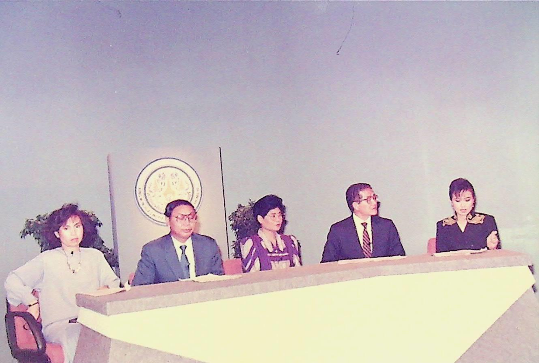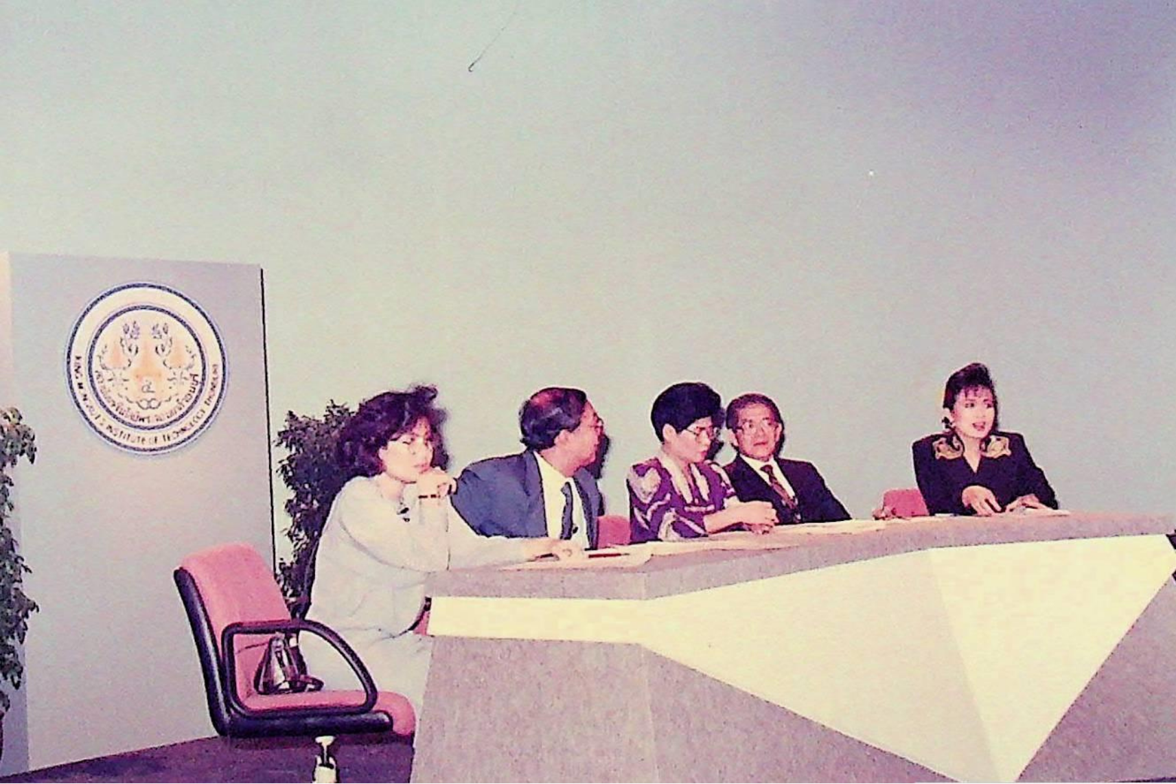 รศ.ดร.ไพบูลย์ หังสพฤกษ์ อธิการบดี พร้อมด้วยคณบดีคณะวิศวกรรมศาสตร์ คณบดีคณะครุศาสตร์อุตสาหกรรมและวิทยาศาสตร์ และคณบดีคณะพลังงานและวัสดุ ร่วมบันทึกเทปโทรทัศน์เพื่อเผยแพร่ในรายการ 30 ปี พระจอมเกล้าธนบุรี ณ สถานีวิทยุโทรทัศน์แห่งประเทศไทย ช่อง 11 ในวันที 31 มกราคม 2533 จากภาพถ่ายอัลบั้มที่ 334