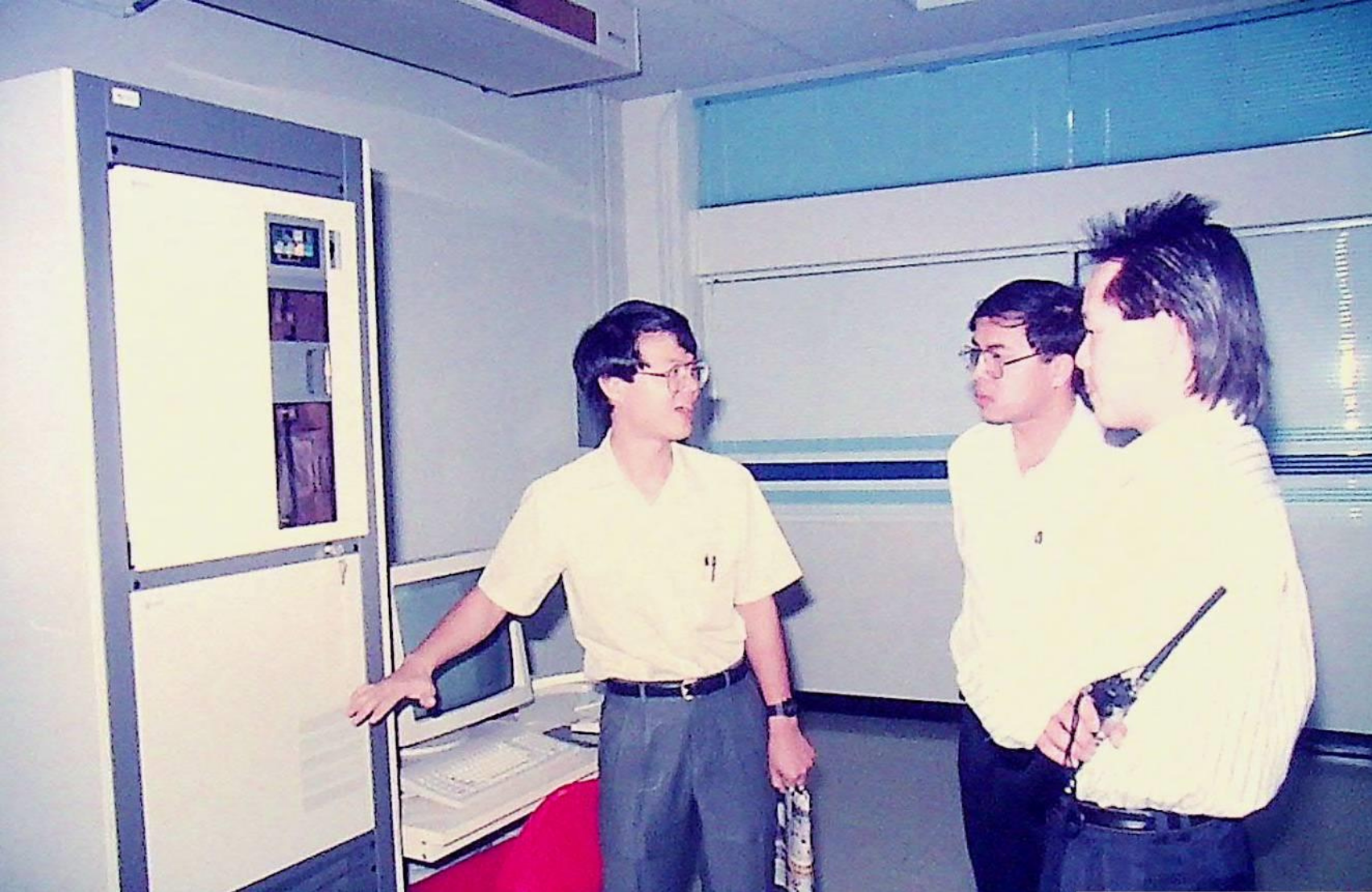 เจ้าหน้าที่ฝ่ายโรงพิมพ์หนังสือพิมพ์ไทยรัฐ ขอเข้าชมเครื่องคอมพิวเตอร์ระบบเวิร์คสเตชัน โดยมี อาจารย์ประเสริฐ คันธมานนท์ ให้การต้อนรับและให้รายละเอียดเกี่ยวกับระบบดังกล่าว
