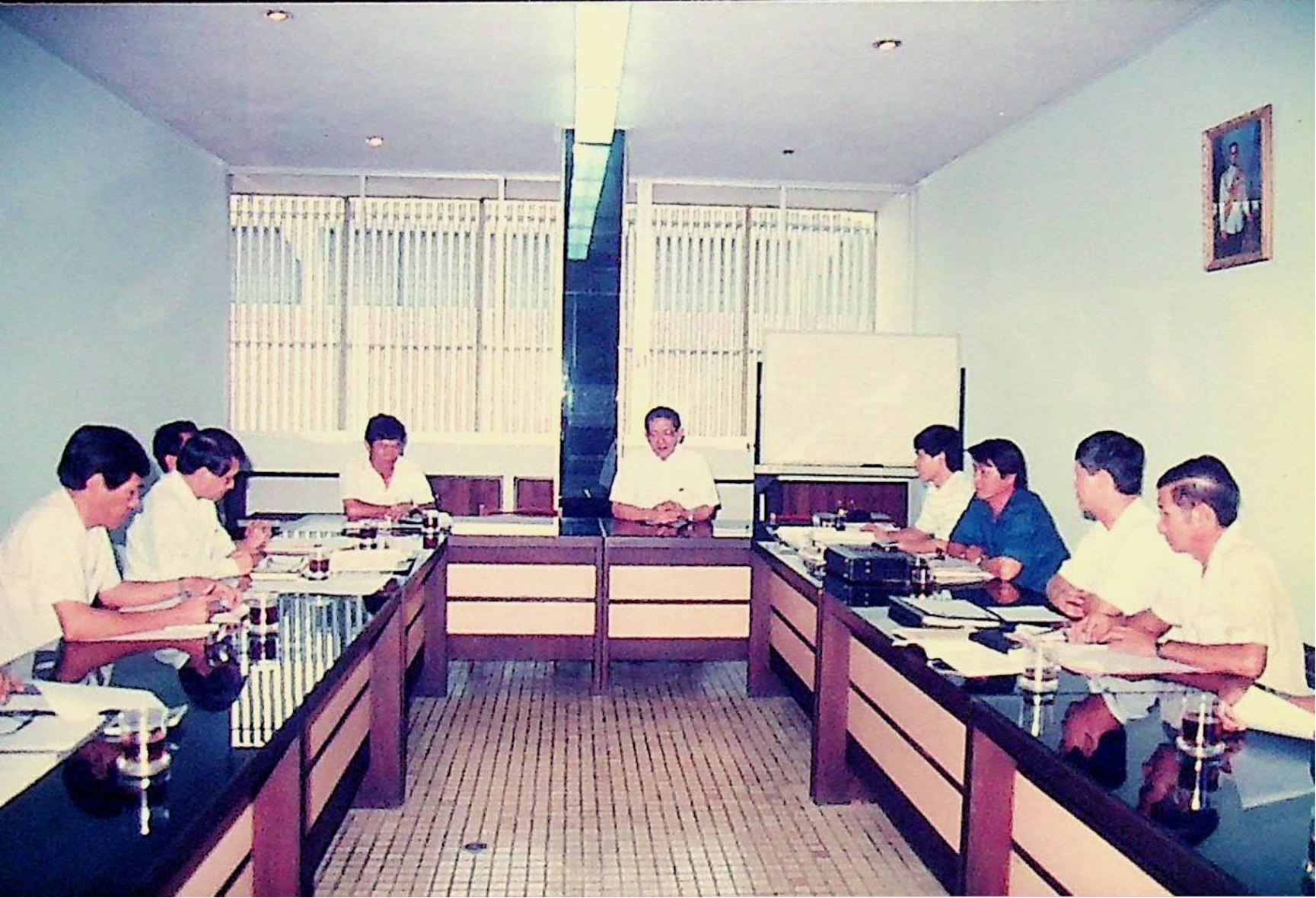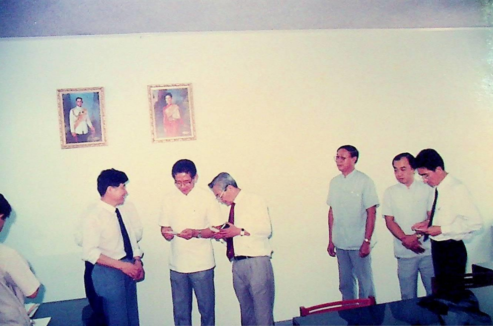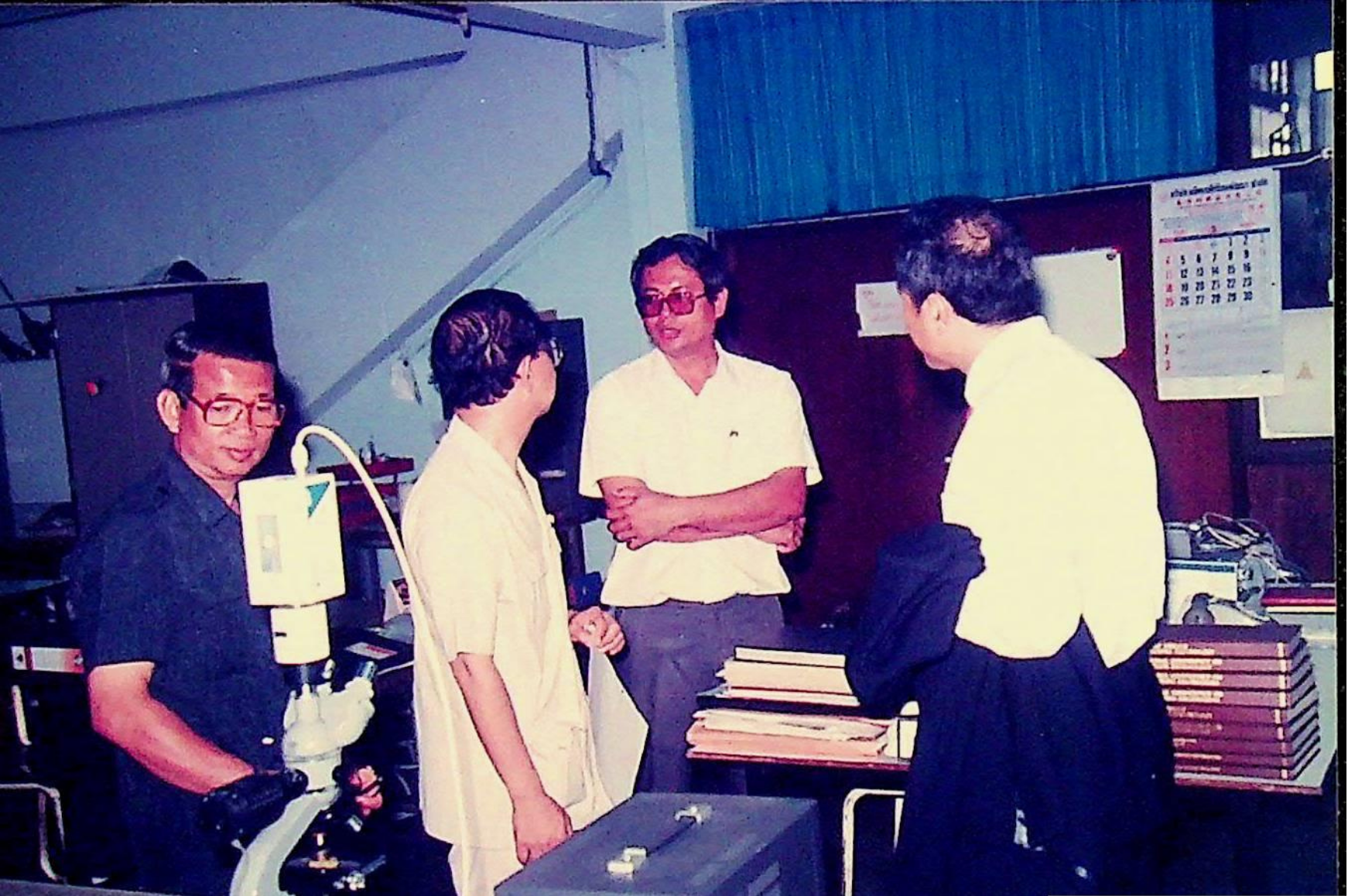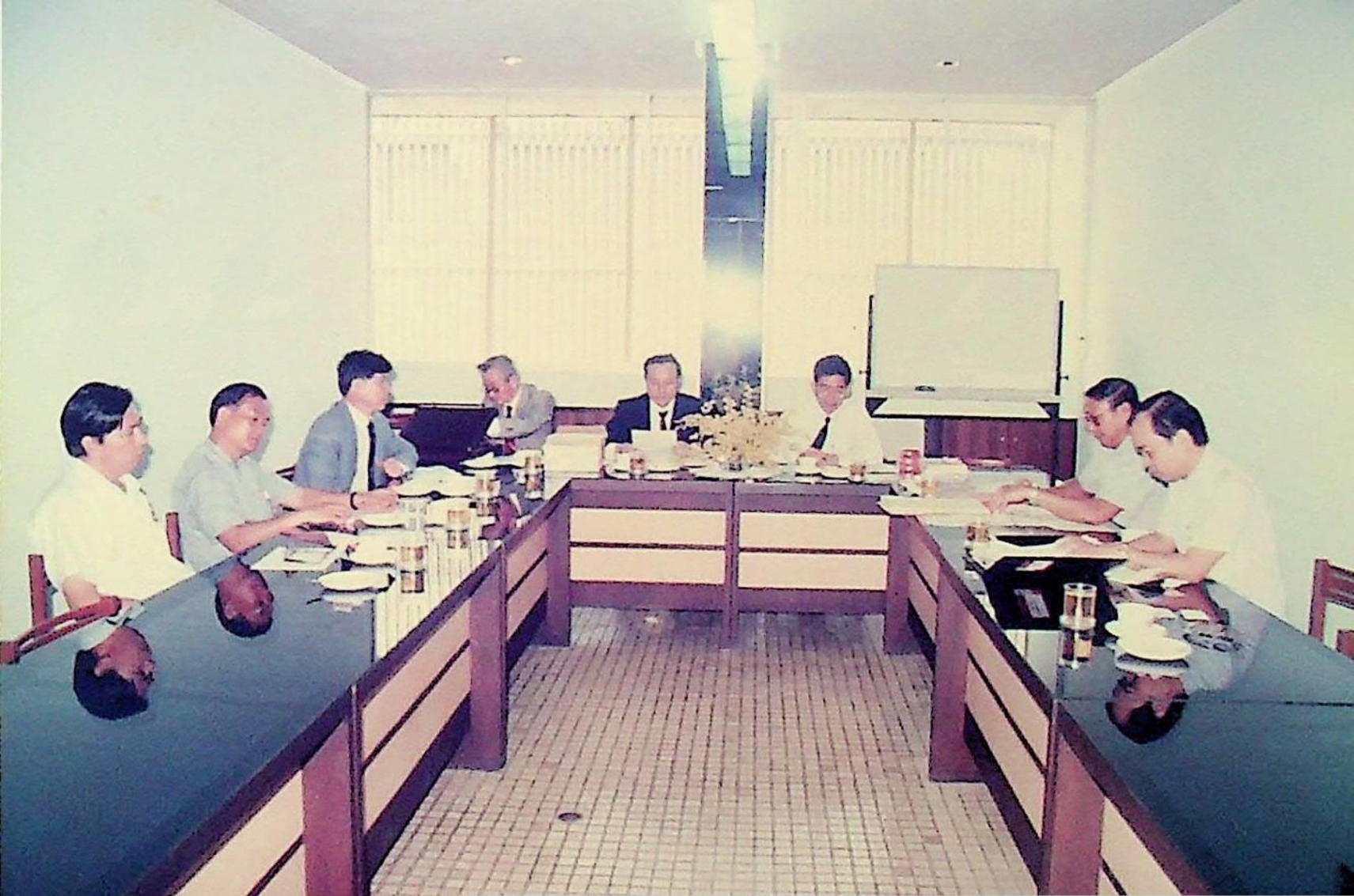 รศ.ดร.ไพบูลย์ หังสพฤกษ์ อธิการบดี และคณะ ให้การต้อนรับ Prof. Chem Hu และ Prof. Ting Shan Yi จาก Beijing Management Institute of Machine Building Industry และ Mr. Liu Bao Kui จาก Department of Scientific Research and Foreign Affairs Education Bureau ประเทศสาธารณรัฐประชาธิปไตยประชาชนจีน เยี่ยมชมสถาบัน และหารือความร่วมมือทางวิชาการระหว่างกัน ณ สํานักงานอธิการบดี และภาควิชาต่าง ๆ ในเดือนมีนาคม 2533 จากอัลบั้มภาพถ่าย 3316 และ 3317