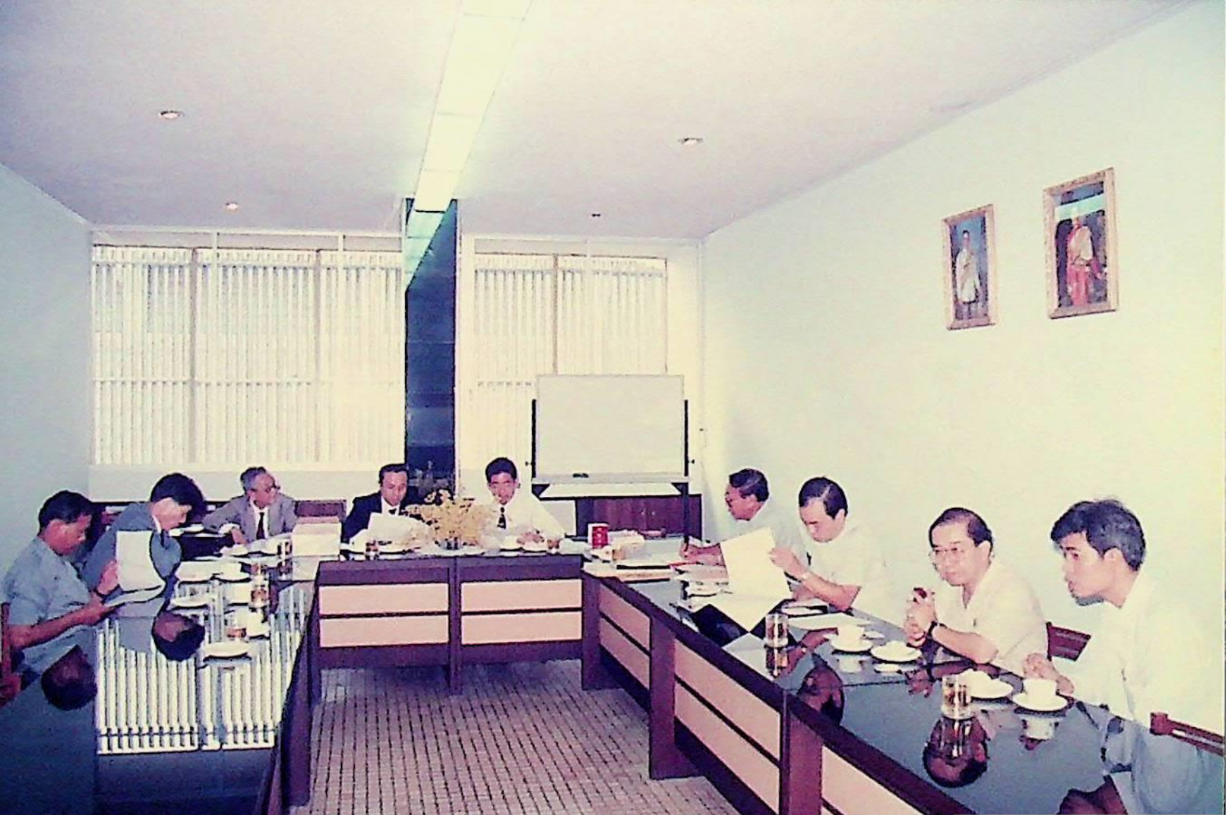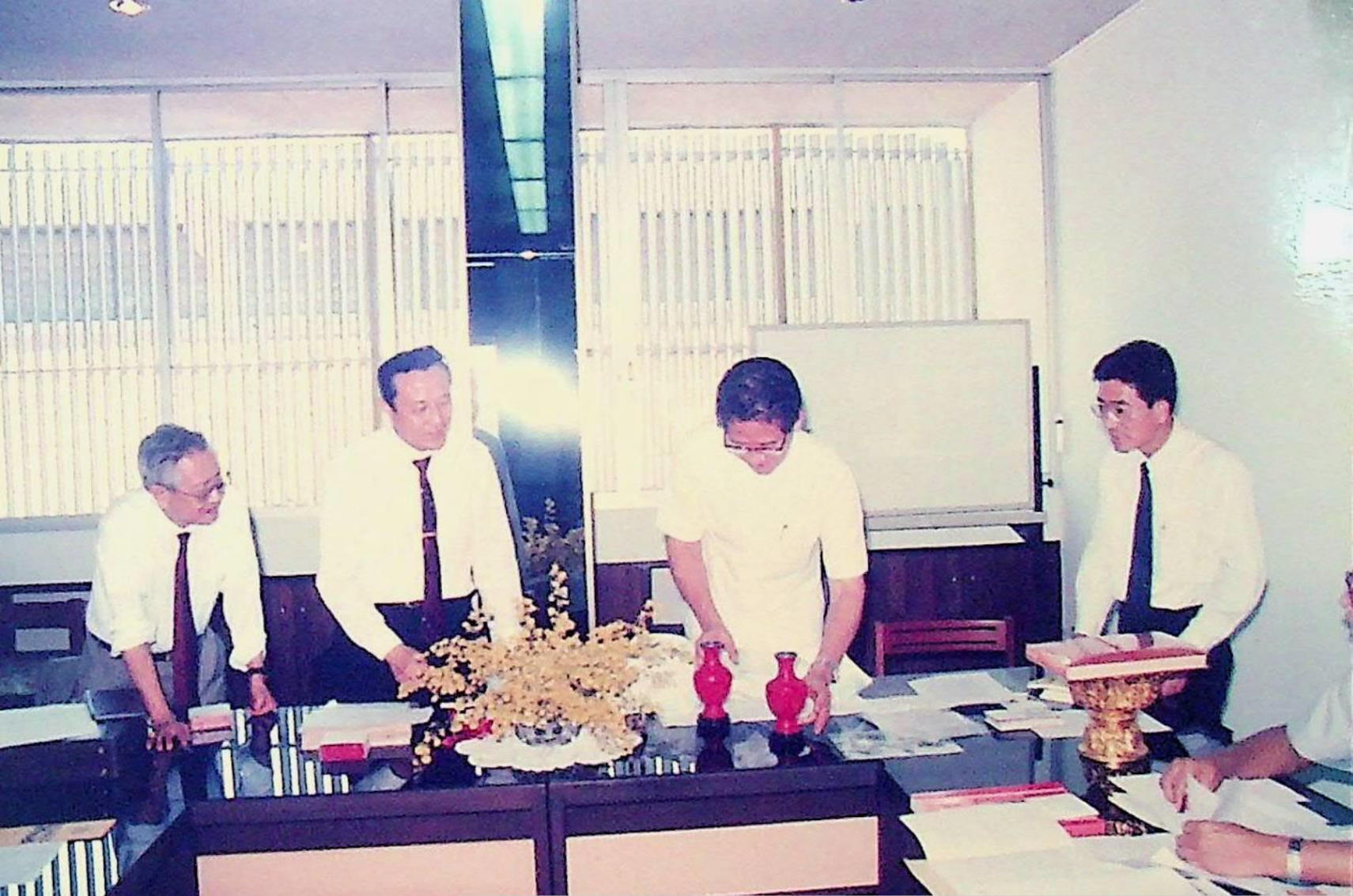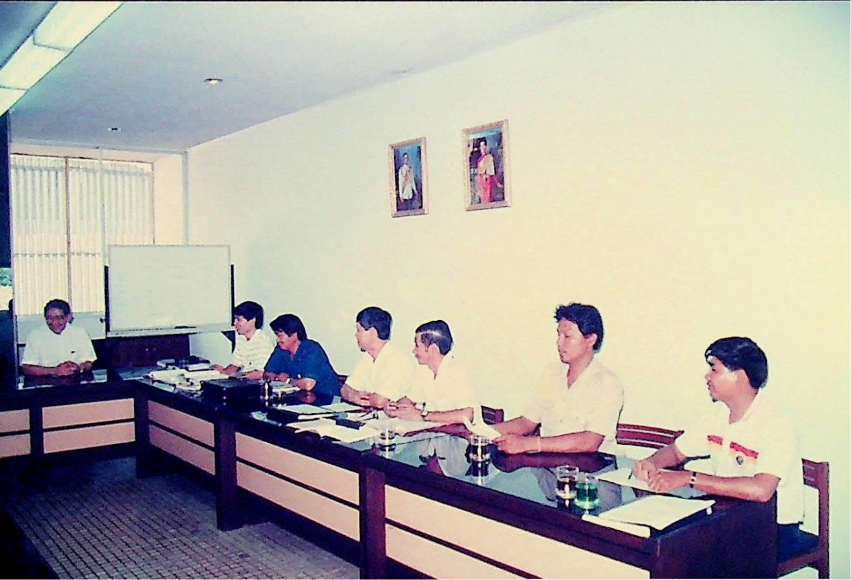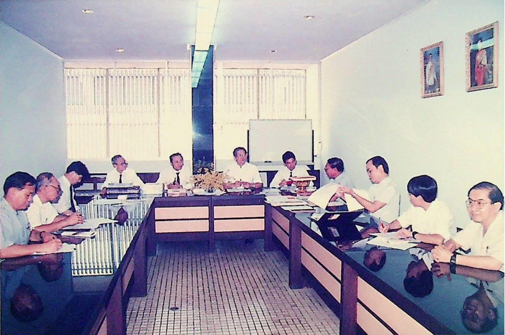 รศ.ดร.ไพบูลย์ หังสพฤกษ์ อธิการบดี และคณะ ให้การต้อนรับ Prof. Chem Hu และ Prof. Ting Shan Yi จาก Beijing Management Institute of Machine Building Industry และ Mr. Liu Bao Kui จาก Department of Scientific Research and Foreign Affairs Education Bureau ประเทศสาธารณรัฐประชาธิปไตยประชาชนจีน เยี่ยมชมสถาบัน และหารือความร่วมมือทางวิชาการระหว่างกัน ณ สํานักงานอธิการบดี และภาควิชาต่าง ๆ ในเดือนมีนาคม 2533 จากอัลบั้มภาพถ่าย 3316 และ 3317