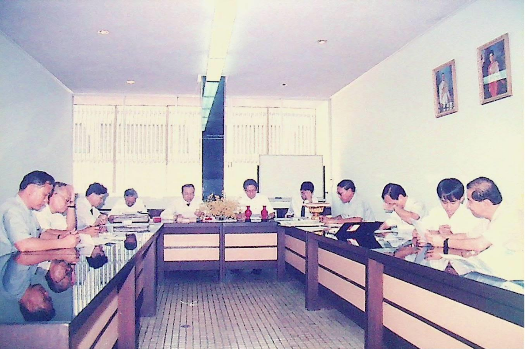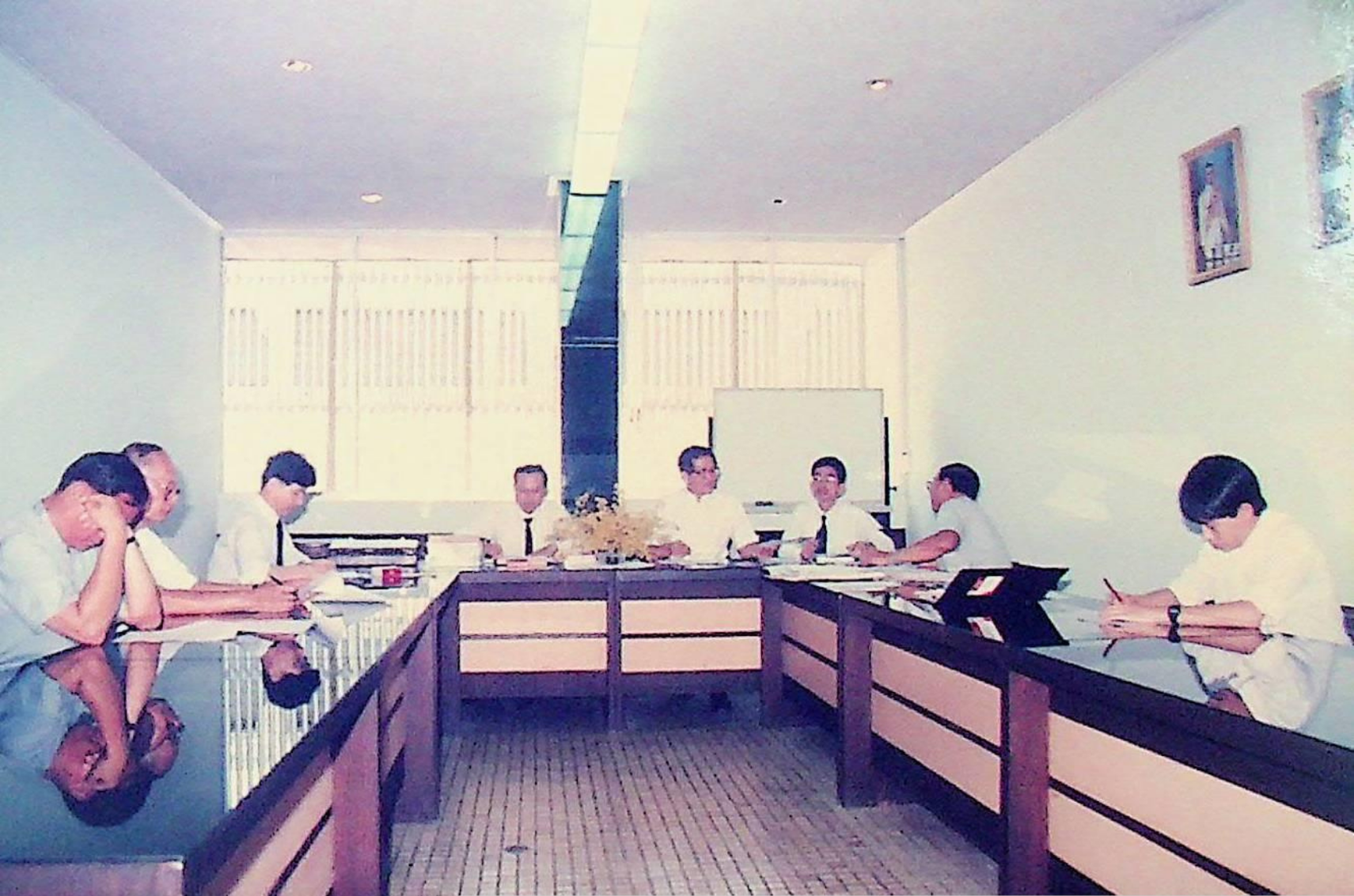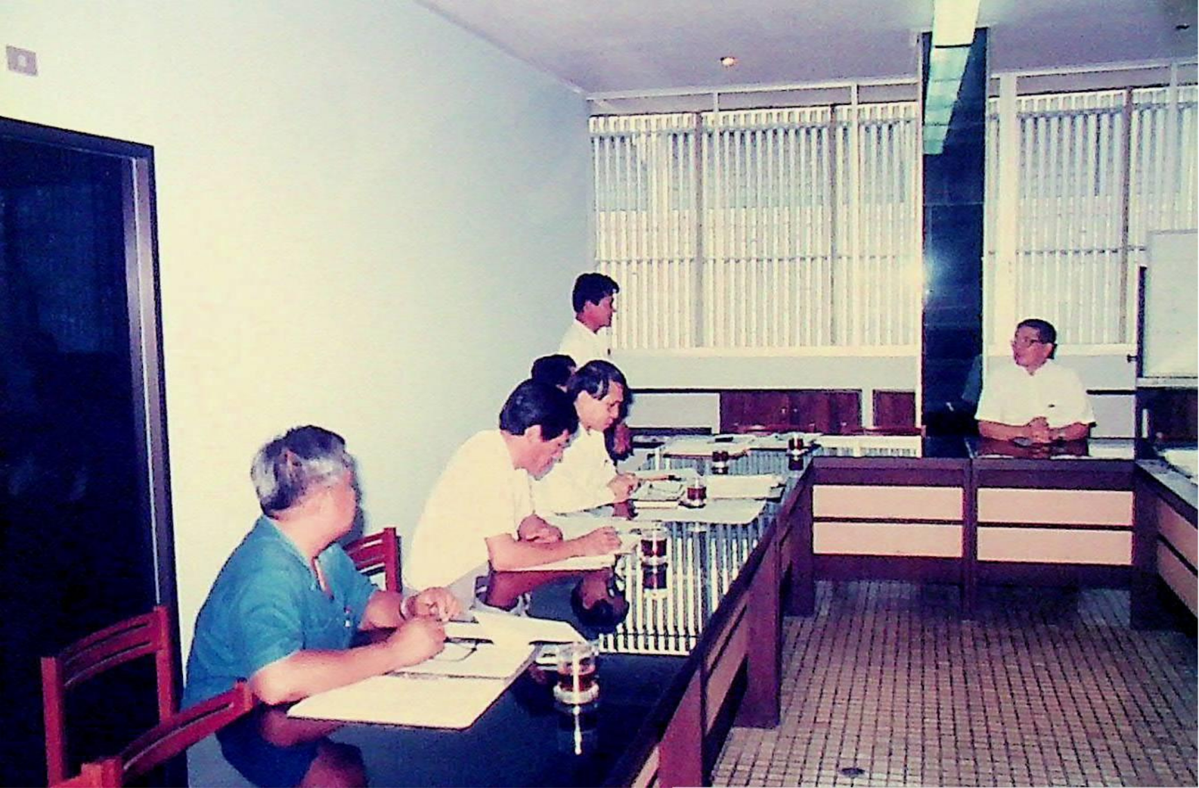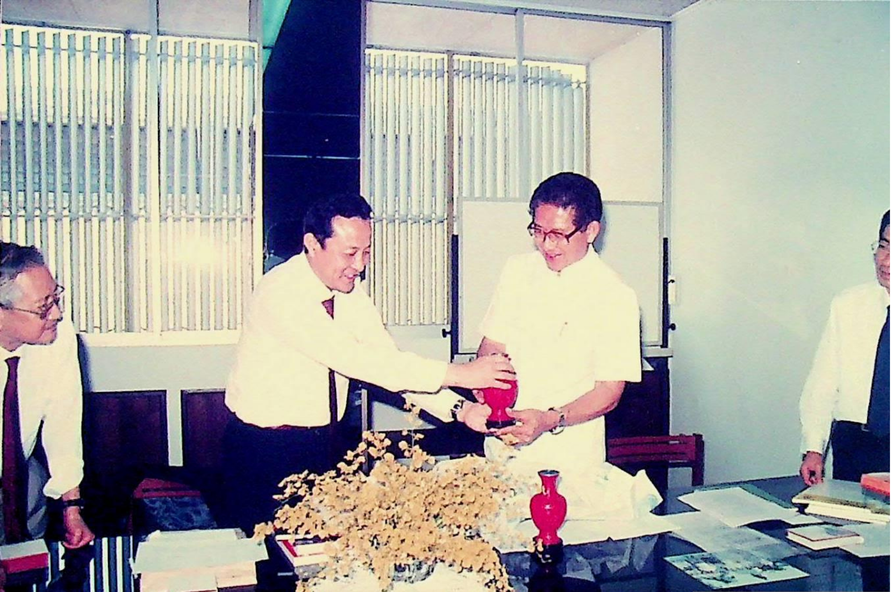 รศ.ดร.ไพบูลย์ หังสพฤกษ์ อธิการบดี และคณะ ให้การต้อนรับ Prof. Chem Hu และ Prof. Ting Shan Yi จาก Beijing Management Institute of Machine Building Industry และ Mr. Liu Bao Kui จาก Department of Scientific Research and Foreign Affairs Education Bureau ประเทศสาธารณรัฐประชาธิปไตยประชาชนจีน เยี่ยมชมสถาบัน และหารือความร่วมมือทางวิชาการระหว่างกัน ณ สํานักงานอธิการบดี และภาควิชาต่าง ๆ ในเดือนมีนาคม 2533 จากอัลบั้มภาพถ่าย 3316 และ 3317