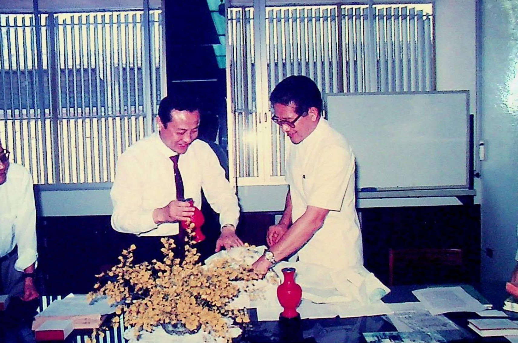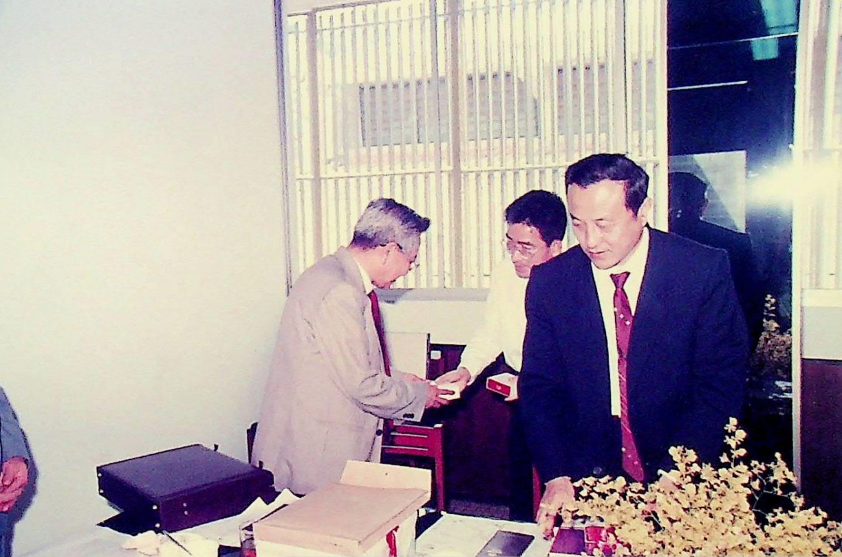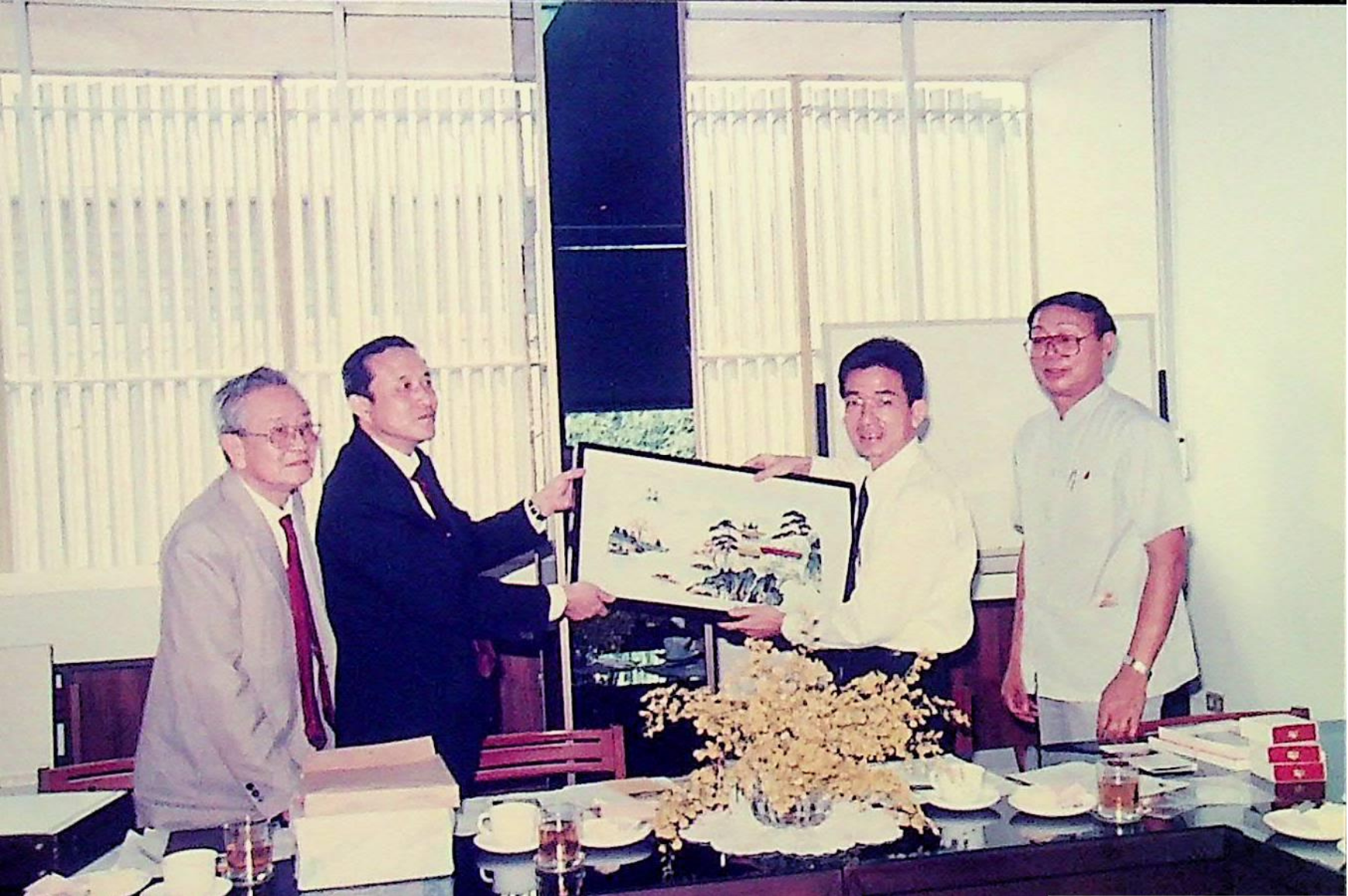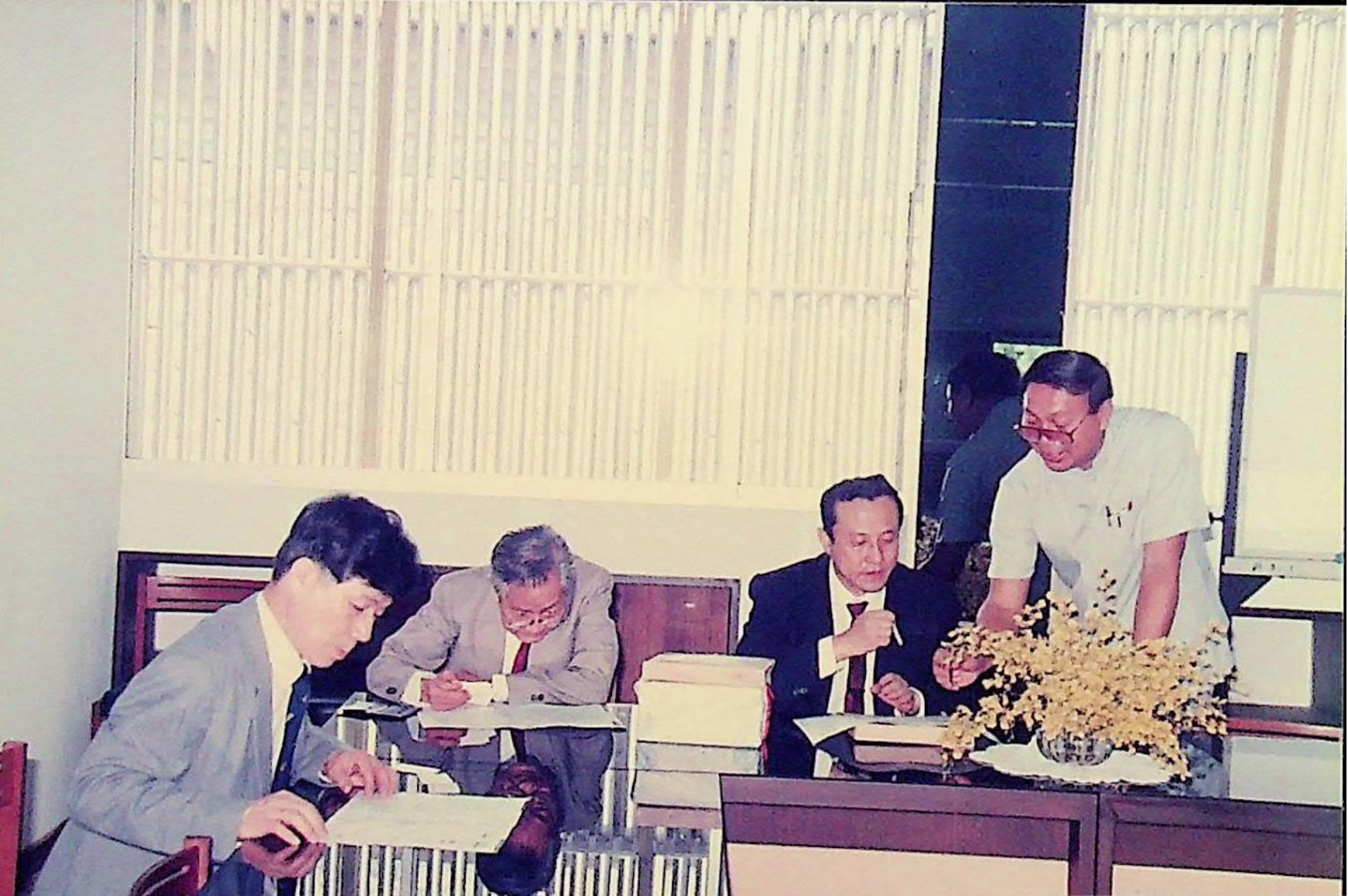 รศ.ดร.ไพบูลย์ หังสพฤกษ์ อธิการบดี และคณะ ให้การต้อนรับ Prof. Chem Hu และ Prof. Ting Shan Yi จาก Beijing Management Institute of Machine Building Industry และ Mr. Liu Bao Kui จาก Department of Scientific Research and Foreign Affairs Education Bureau ประเทศสาธารณรัฐประชาธิปไตยประชาชนจีน เยี่ยมชมสถาบัน และหารือความร่วมมือทางวิชาการระหว่างกัน ณ สํานักงานอธิการบดี และภาควิชาต่าง ๆ ในเดือนมีนาคม 2533 จากอัลบั้มภาพถ่าย 3316 และ 3317