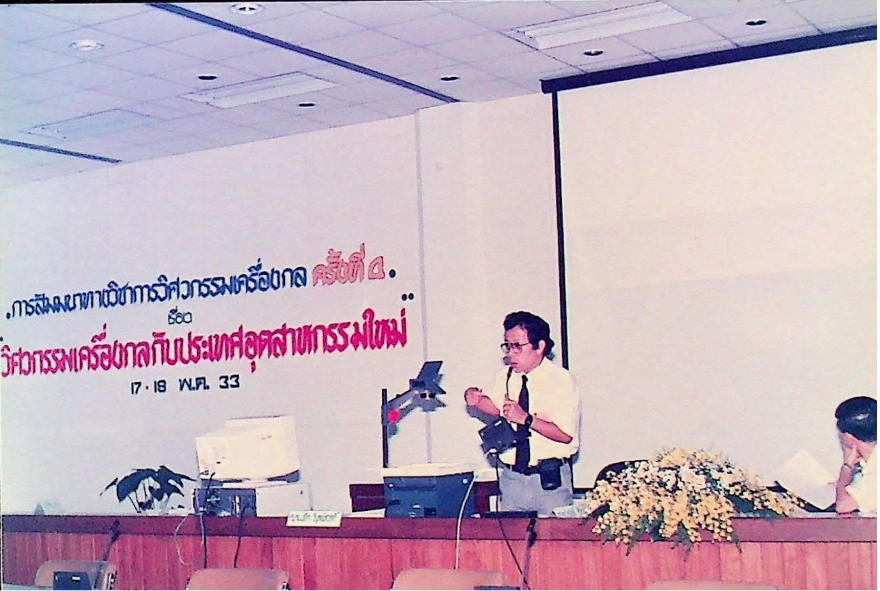 นายกสภาสถาบัน เป็นประธานเปิดสัมมนาทางวิชาการทางวิศวกรรมเครื่องกล ครั้งที่ 4 เรื่อง วิศวกรรมเครื่องกลกับประเทศอุตสาหกรรมใหม่ จัดโดยเครือข่ายวิศวกรรมเครื่องกล ดำเนินงานโดยภาควิชาวิศวกรรมเครื่องกล คณะวิศวกรรมศาสตร์ สจธ. ณ ห้องสัมมนา อาคารเรียนรวม 2 ในวันที 17-18 พฤษภาคม 2533 จากภาพถ่ายอัลบั้มที่ 3326