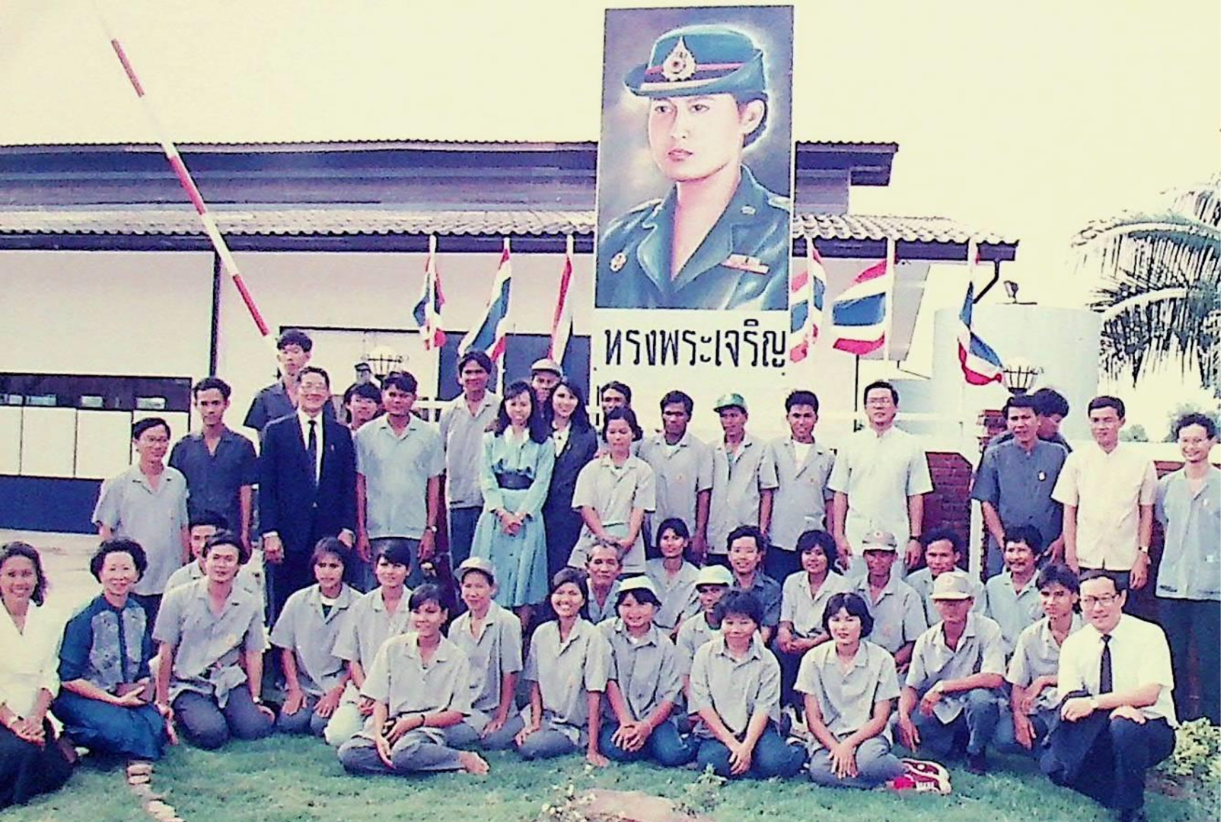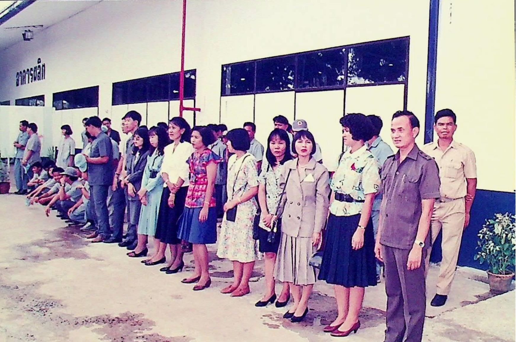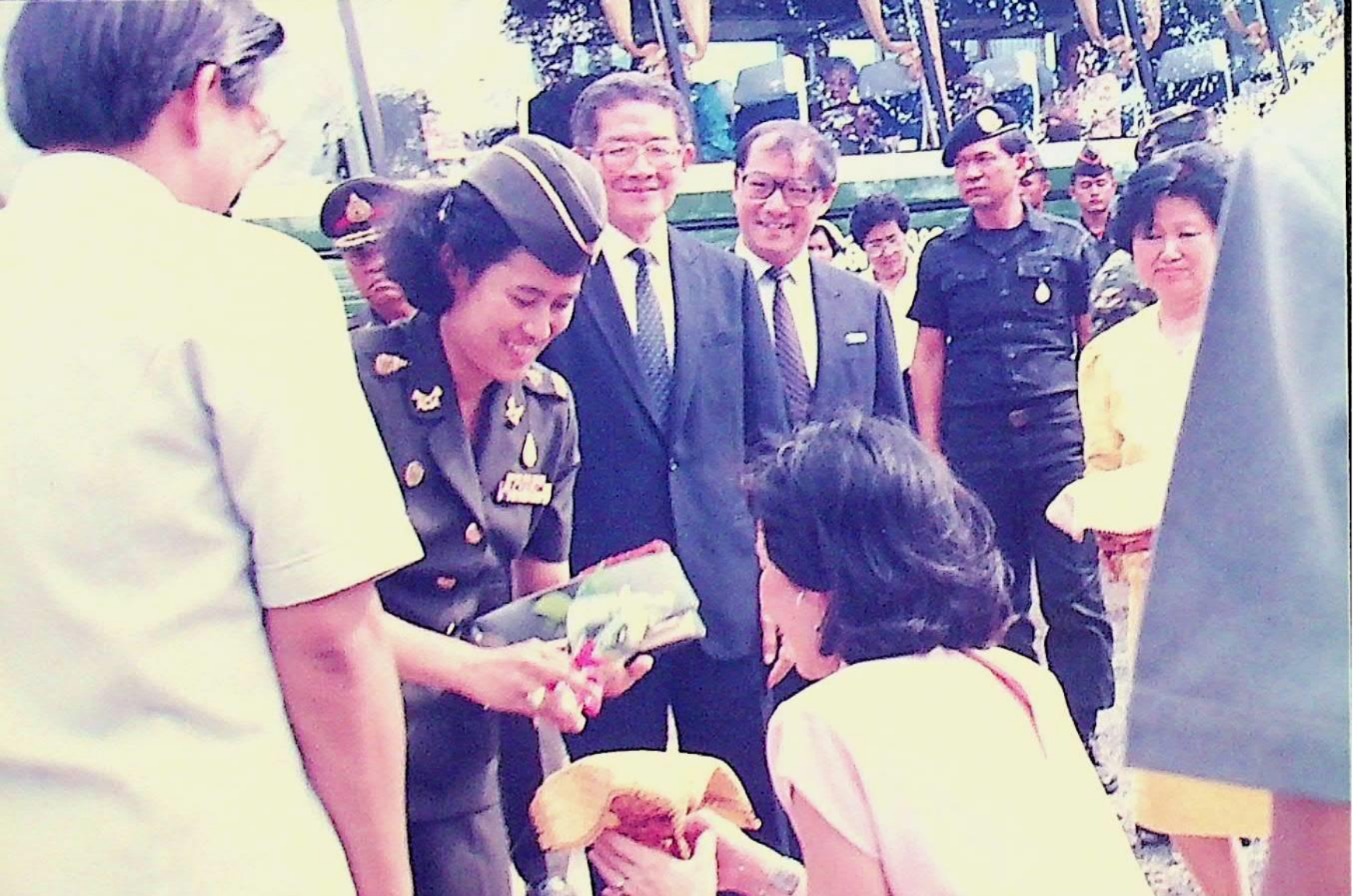 สมเด็จพระเทพรัตนราชสุดา สยามบรมราชกุมารี เสด็จพระราชดำเนินนำนักเรียนนายร้อย จปร. เยี่ยมชมโรงงานหลวงอาหารสำเร็จรูป อำเภอระหานทราย จังหวัดบุรีรัมย์ โดยมี รศ.ดร.ไพบูลย์ หังสพฤกษ์ อธิการบดี และคณะ เฝ้ารับเสด็จ ณ โรงงานหลวง อาหารสําเร็จรูป อ.ระหานทราย จ.บุรีรัมย ในวันที่วันที่ 27 พฤษภาคม 2533 จากภาพถ่าย 3329, 3330 และ 3331