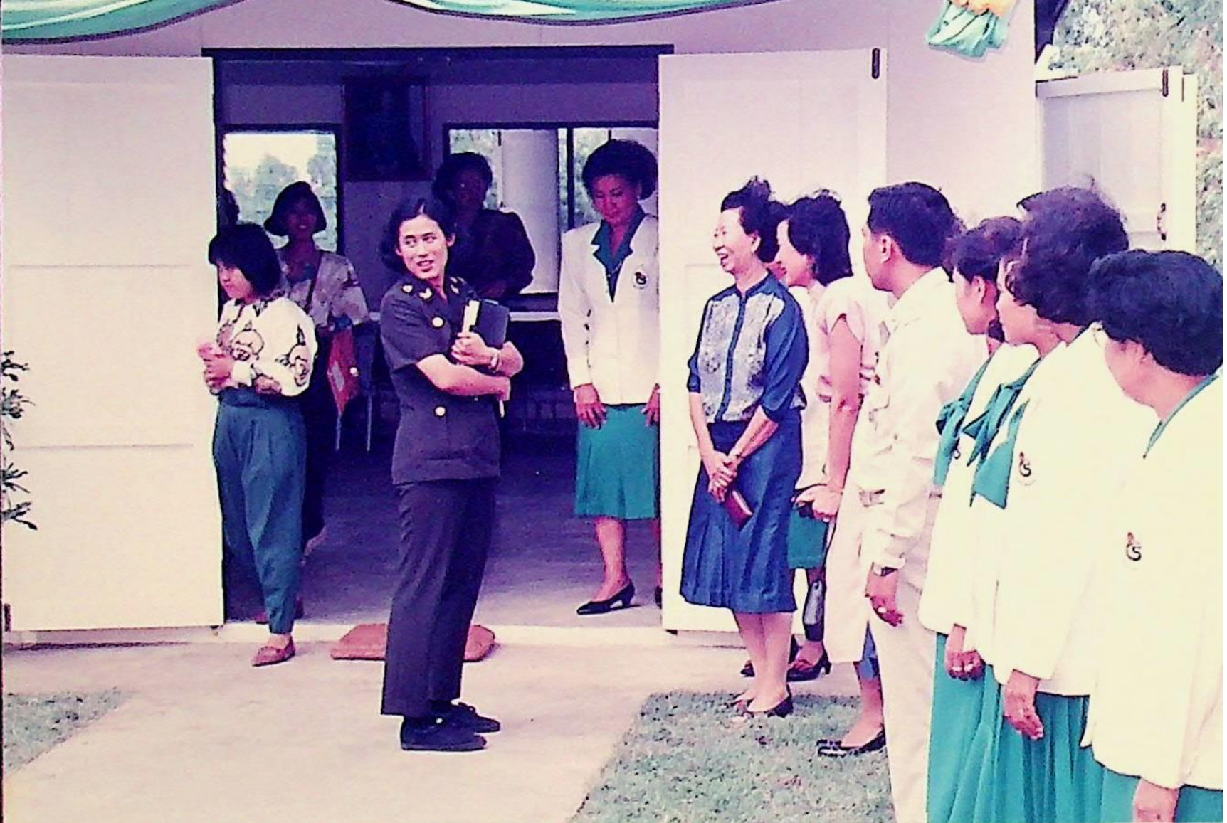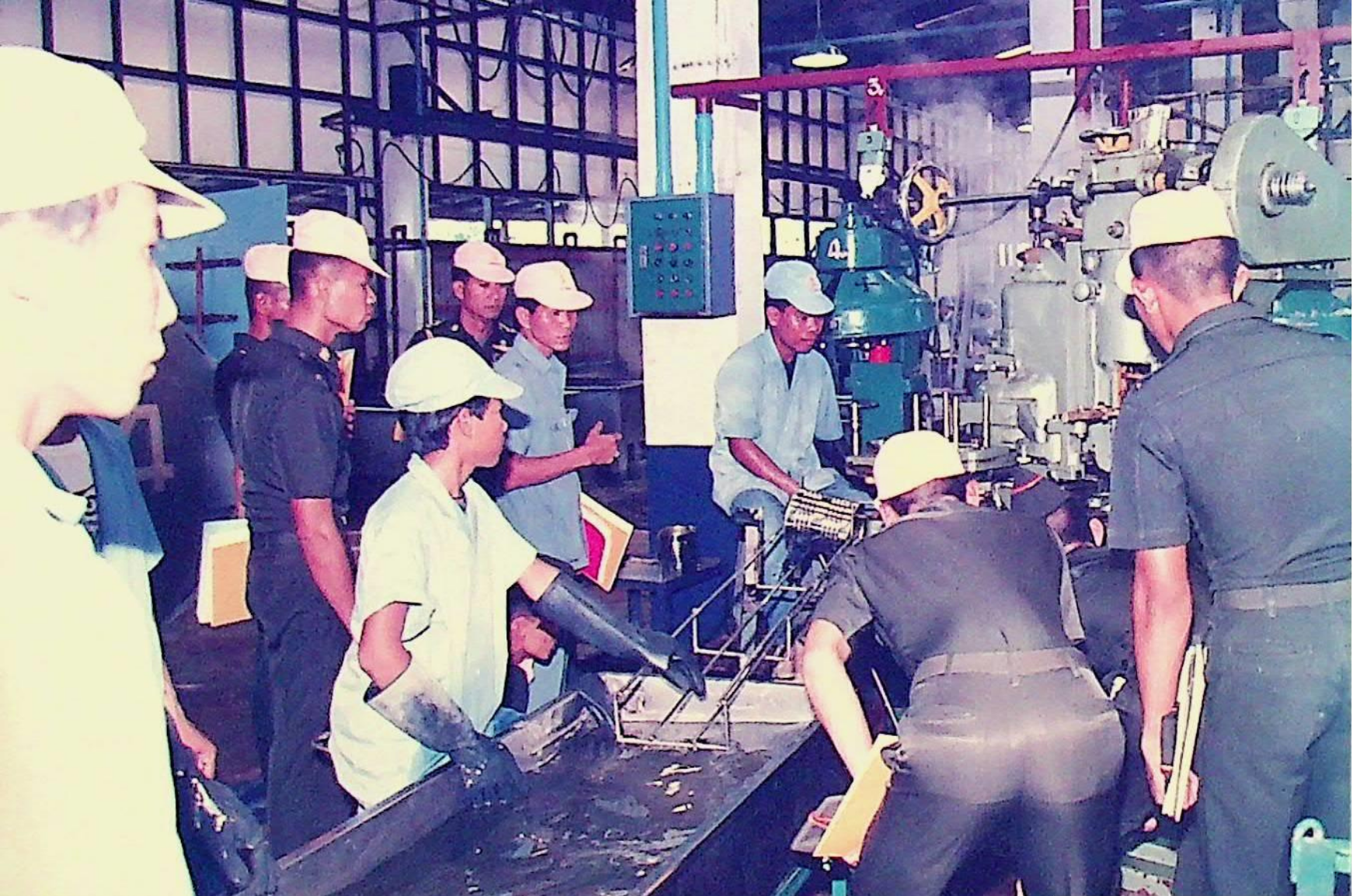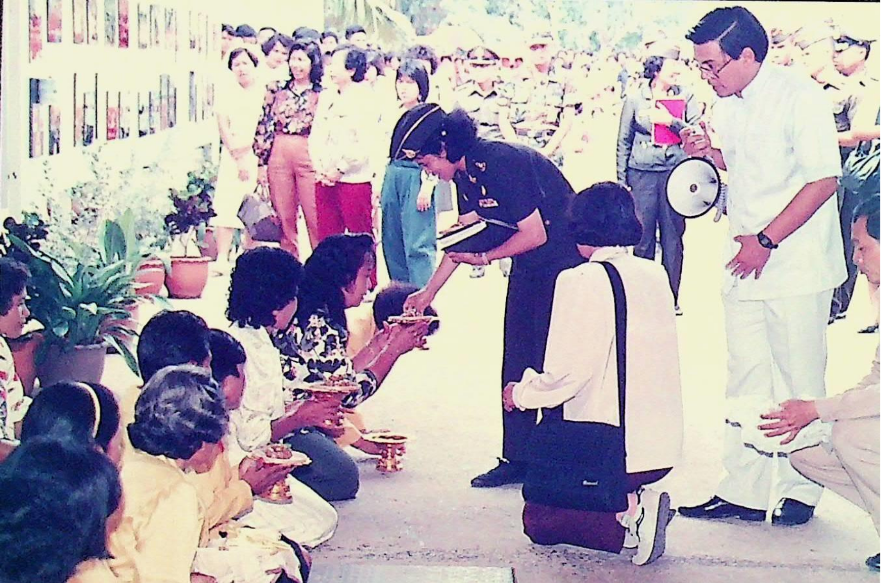 สมเด็จพระเทพรัตนราชสุดา สยามบรมราชกุมารี เสด็จพระราชดำเนินนำนักเรียนนายร้อย จปร. เยี่ยมชมโรงงานหลวงอาหารสำเร็จรูป อำเภอระหานทราย จังหวัดบุรีรัมย์ โดยมี รศ.ดร.ไพบูลย์ หังสพฤกษ์ อธิการบดี และคณะ เฝ้ารับเสด็จ ณ โรงงานหลวง อาหารสําเร็จรูป อ.ระหานทราย จ.บุรีรัมย ในวันที่วันที่ 27 พฤษภาคม 2533 จากภาพถ่าย 3329, 3330 และ 3331