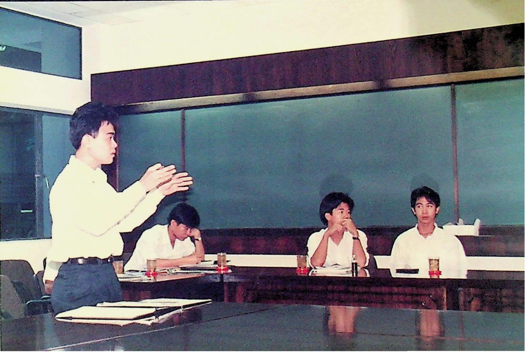 คุณไพโรจน์ บรรเริงศรี ผู้จัดการบริษัทพระประแดงคอนกรีต จำกัด เข้าพบคณบดีคณะวิศวกรรมศาสตร์และคณะ เพื่อทราบข้อมูลการสร้างรถสะเทินน้ำสะเทินบกคันที่ 2 และยินดีให้การสนับสนุนโดยให้วัสดุครุภัณฑ์ในการสร้าง ณ ห้องประชุมเล็ก อาคารเรียนรวม 2 ในวันที่ 31 ตุลาคม 2533 จากภาพถ่ายอัลบั้มที่ 3364