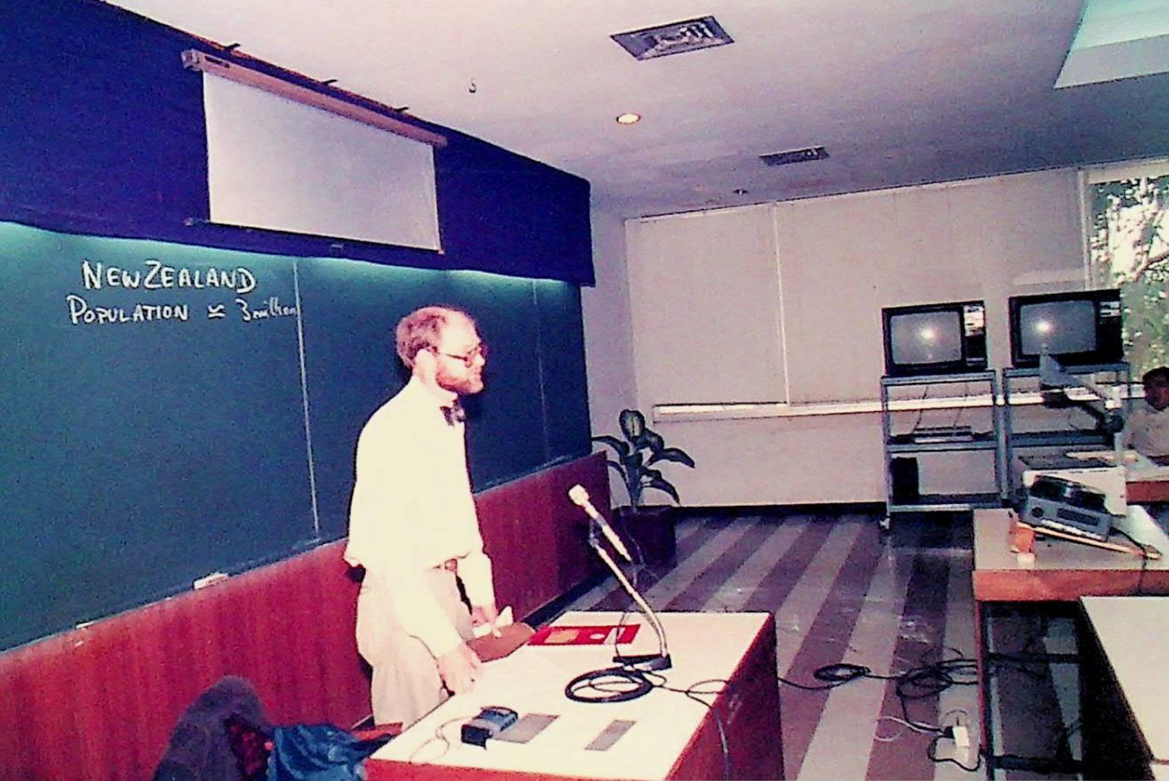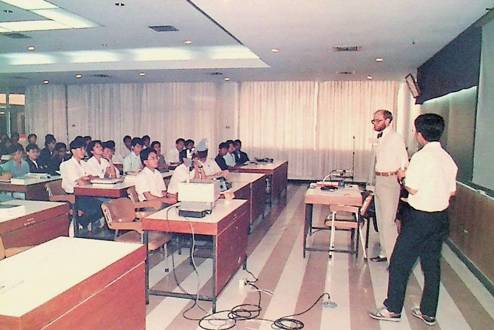 Dr. R. R. Raine จาก University of Auckland ประเทศนิวซีแลนด์ ได้เข้าเยี่ยมชมภาควิชาวิศวกรรมเครื่องกล และบรรยายพิเศษในหัวข้อ New Zealand Experience with Gas for Transportation ณ ภาควิชาวิศวกรรมเครืองกลและ C B.1209 ในวันที่ 15 พฤศจิกายน 2533 จากภาพถ่ายอัลบั้มที่ 3366