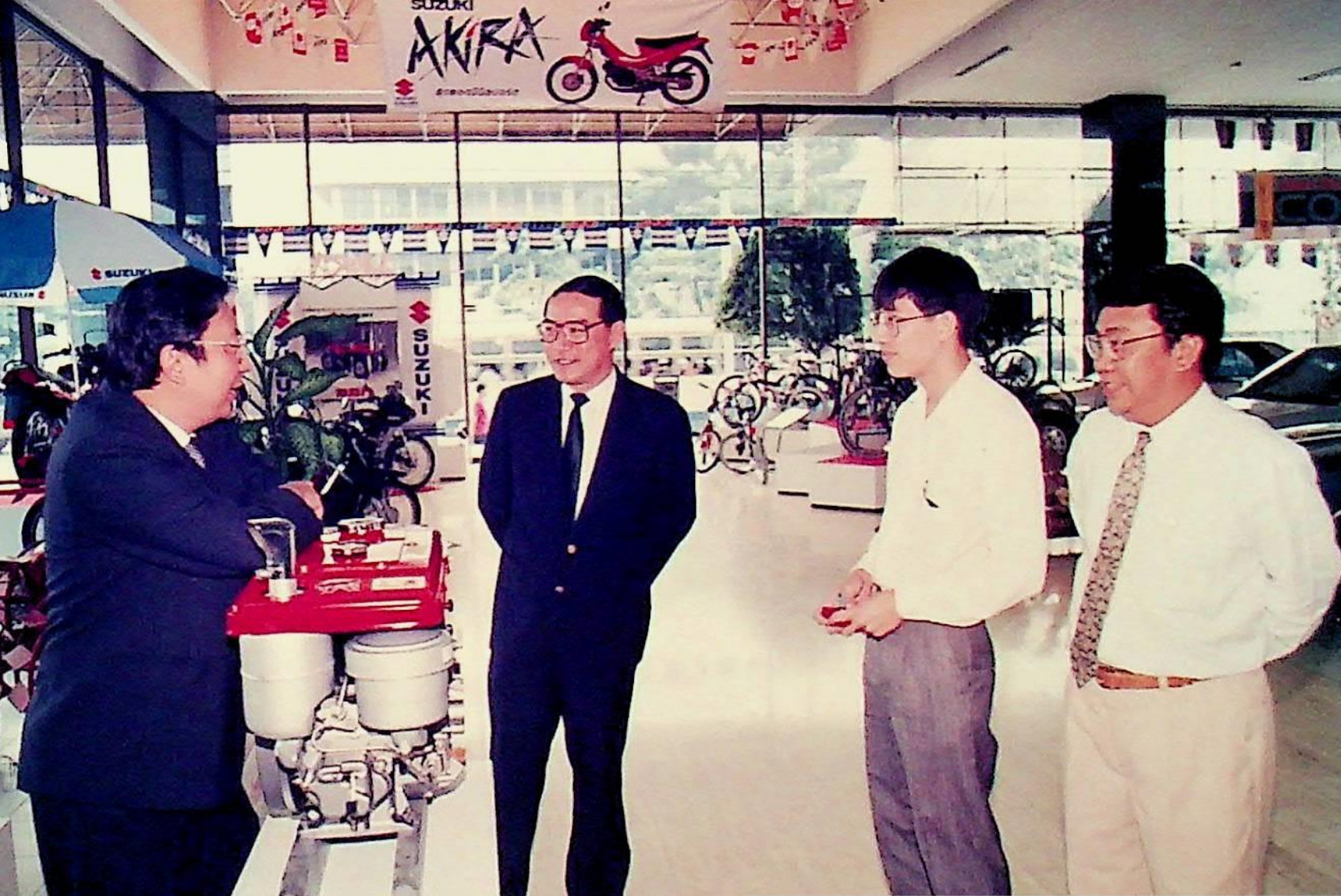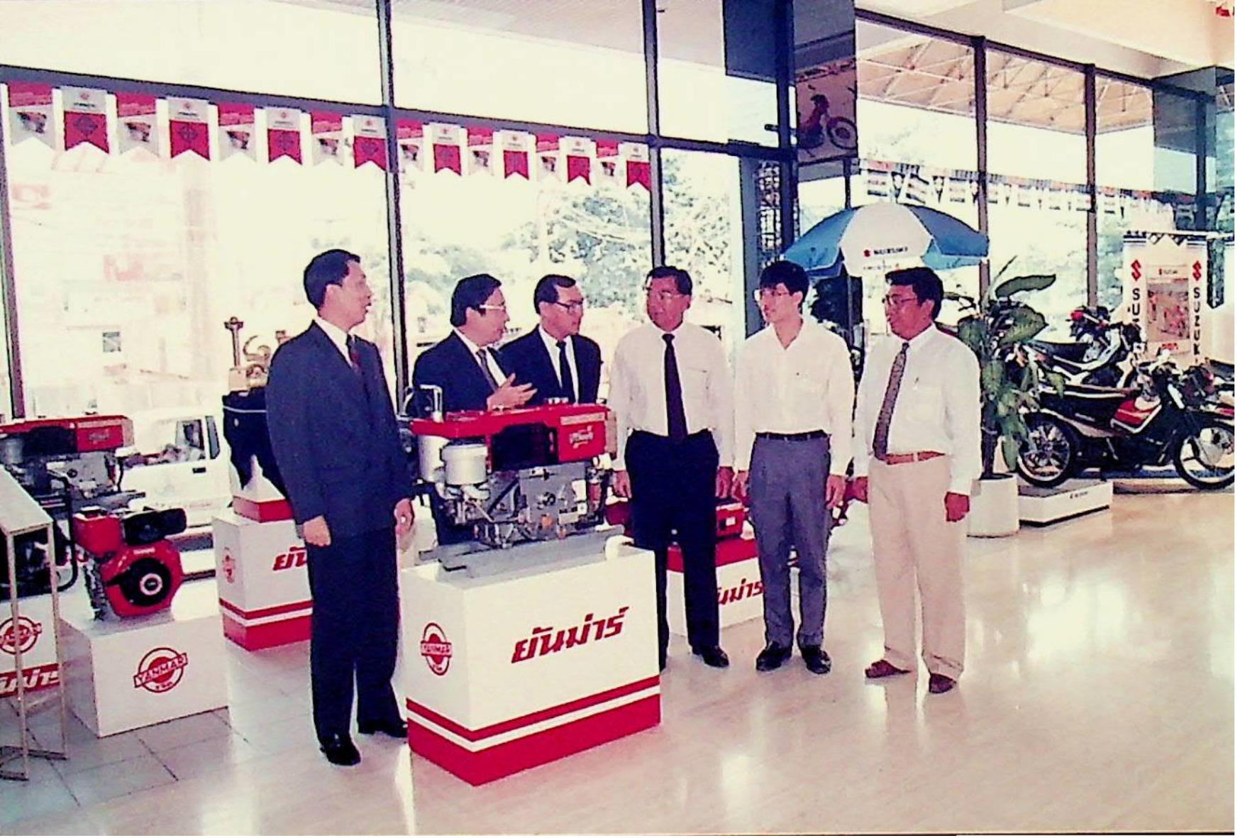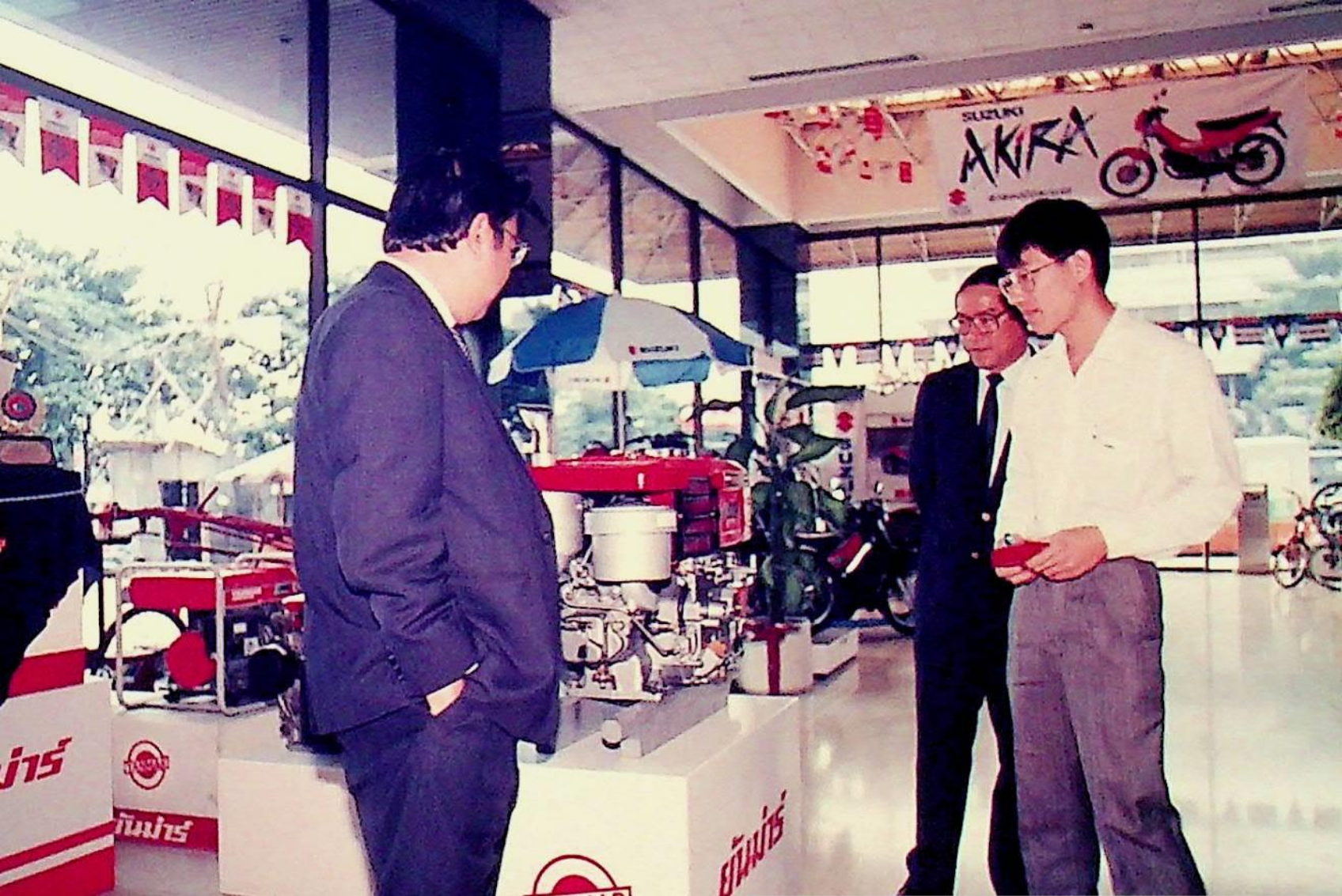 รองอธิการบดีฝ่ายวิจัยและวิเทศสัมพันธ์ รับมอบเครื่องยนต์ยันม่าร์จาก ดร.ชุมพล พรประภา ประธานกรรมการบริษัท ยันม่าร์ เอส.พี.ไอ. จำกัด ซึ่งมอบให้แก่ภาควิชาวิศวกรรมไฟฟ้า เพื่อใช้ประโยชน์ในการศึกษา ณ อาคาร SPI. หัวหมาก ในวันที่ 19 พฤศจิกายน 2533 จากภาพถ่ายอัลบั้มที่ 3366