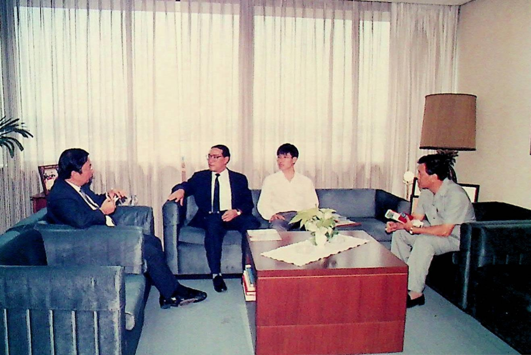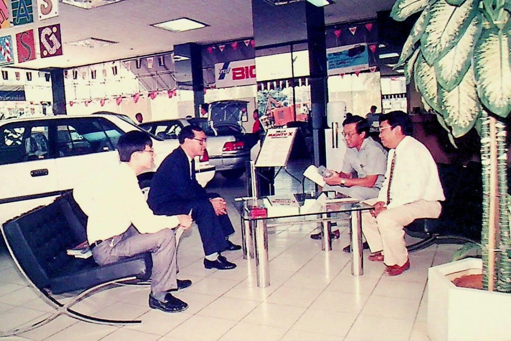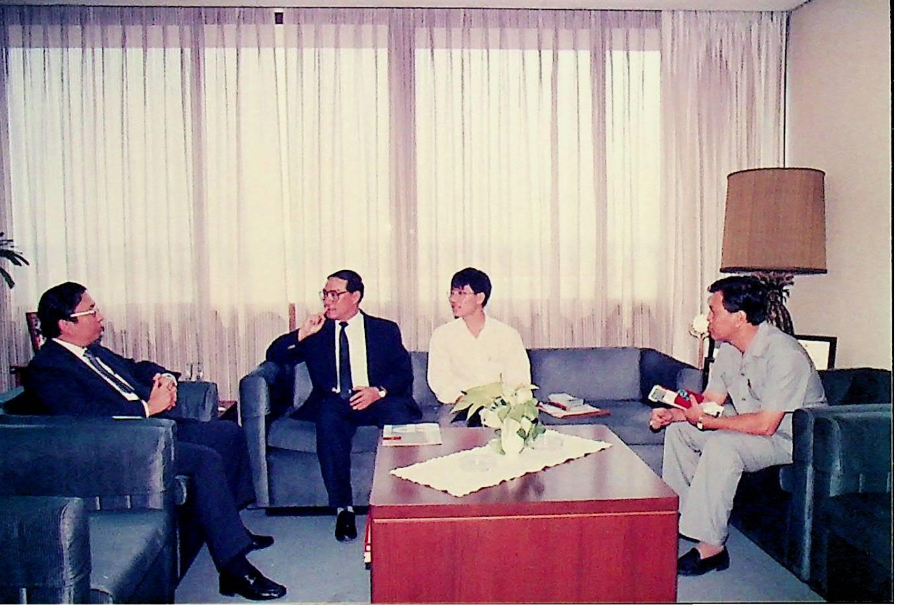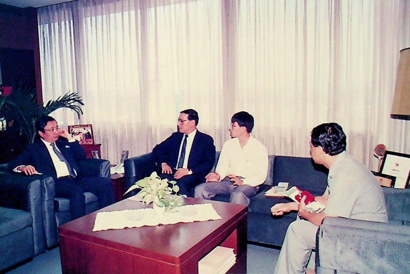 รองอธิการบดีฝ่ายวิจัยและวิเทศสัมพันธ์ รับมอบเครื่องยนต์ยันม่าร์จาก ดร.ชุมพล พรประภา ประธานกรรมการบริษัท ยันม่าร์ เอส.พี.ไอ. จำกัด ซึ่งมอบให้แก่ภาควิชาวิศวกรรมไฟฟ้า เพื่อใช้ประโยชน์ในการศึกษา ณ อาคาร SPI. หัวหมาก ในวันที่ 19 พฤศจิกายน 2533 จากภาพถ่ายอัลบั้มที่ 3366
