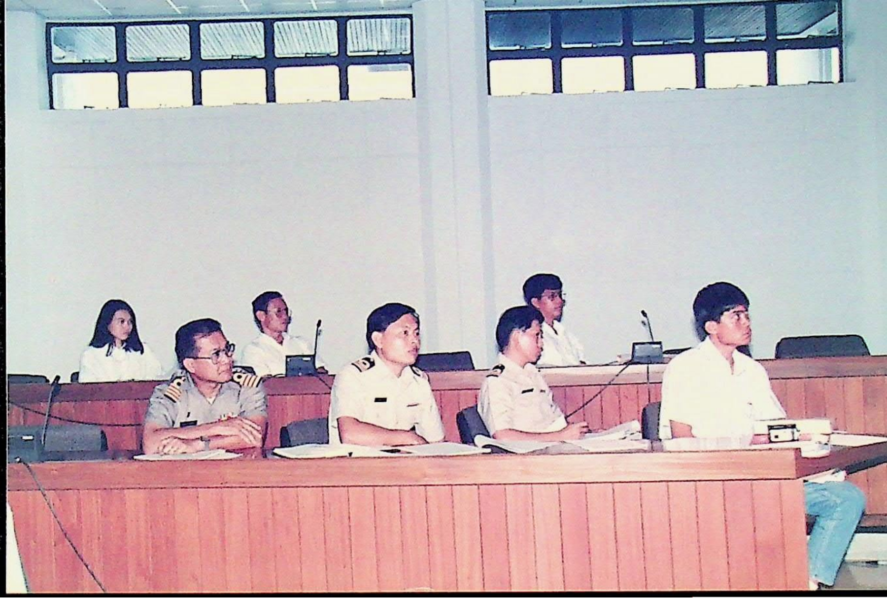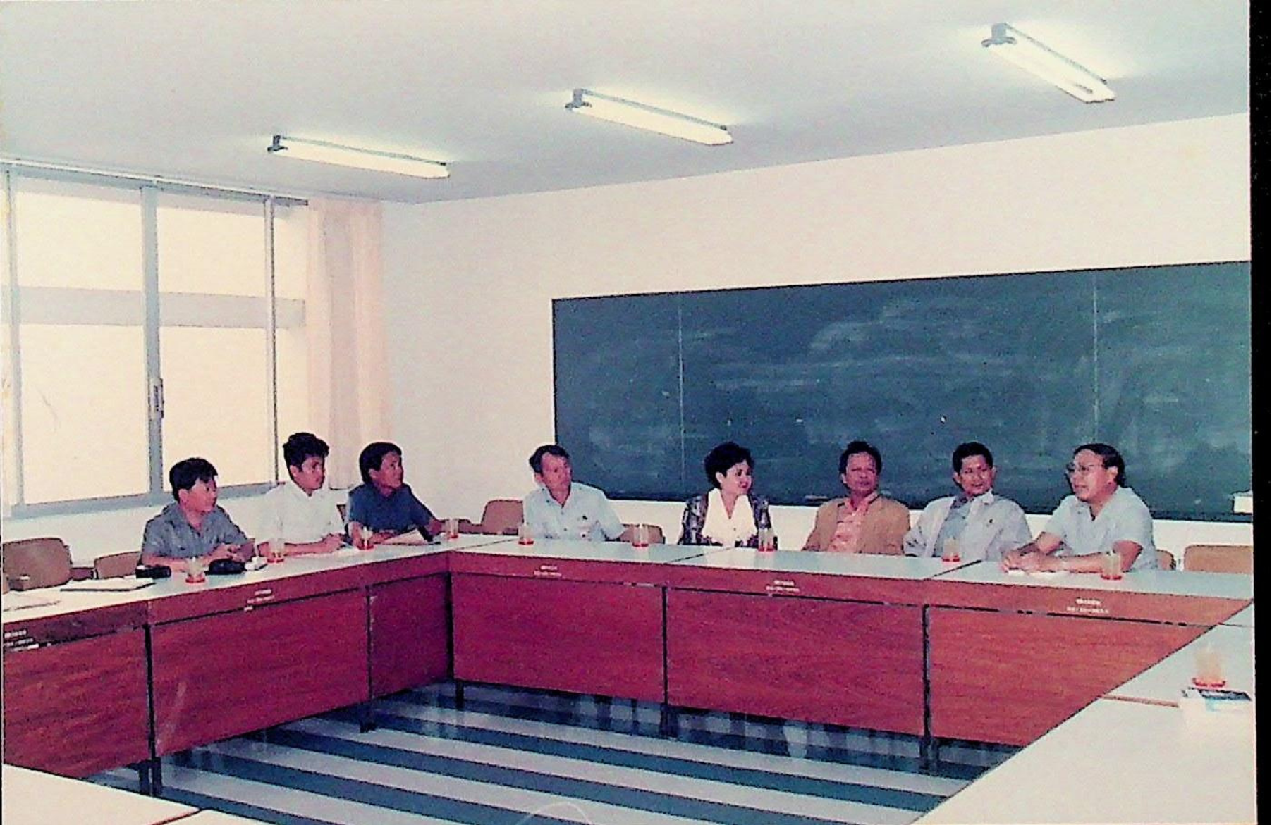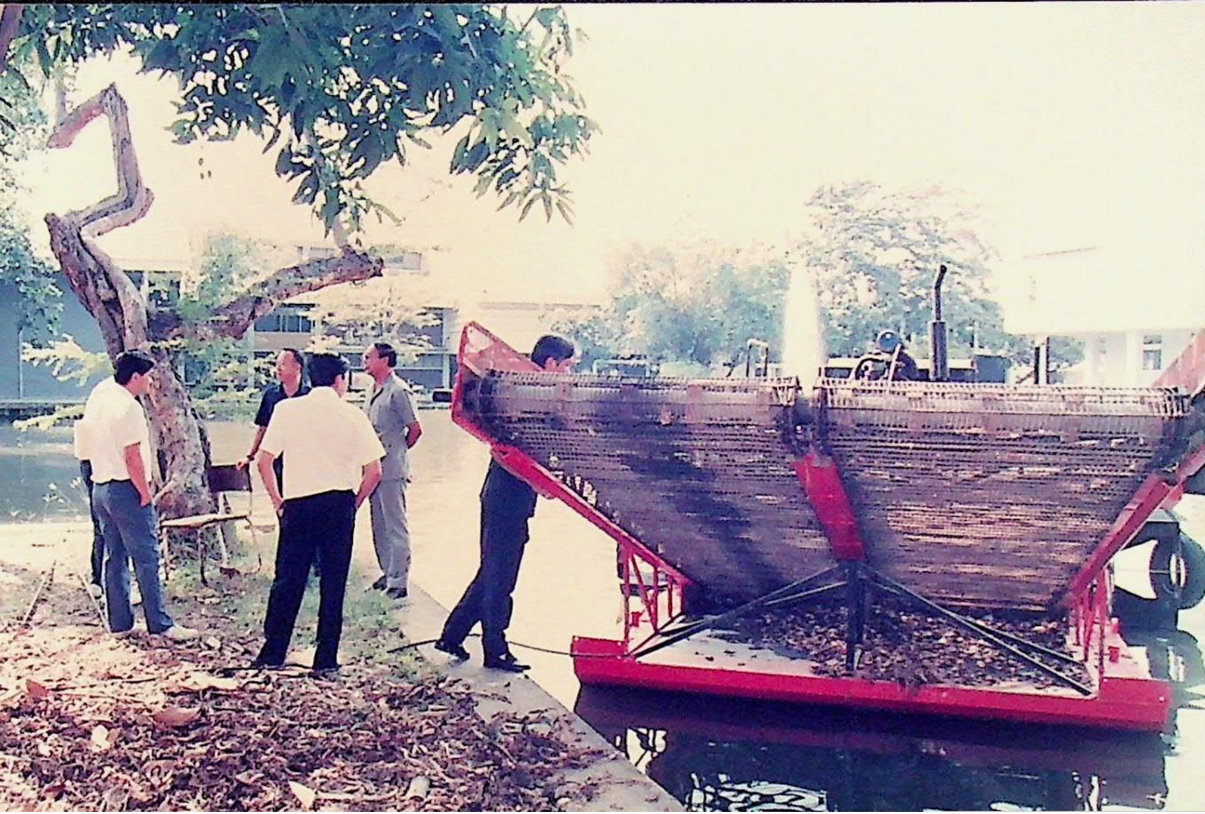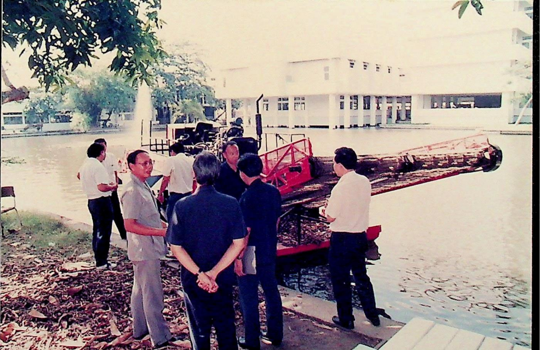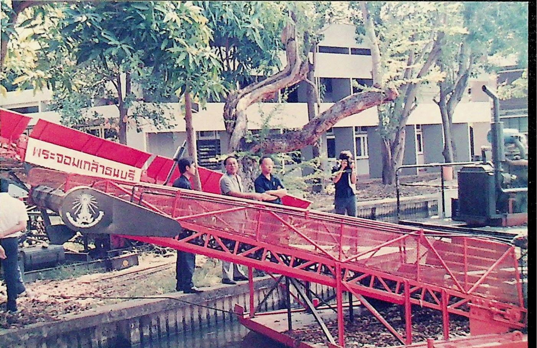 ปลัดจังหวัดพระนครศรีอยุธยาและคณะ ได้เข้าพบ รศ.ดร.เดช พุทธเจริญทอง คณบดีคณะวิศวกรรมศาสตร์ เพื่อขอทราบหลักการในการว่าจ้างภาควิชาวิศวกรรมเครื่องกลในการสร้างเรือกำจัดผักตบชวา และเข้าชมกระบวนการสร้างเรือ ณ ภาควิชาวิศวกรรมเครื่องกล ณ ห้อง CB.1204 ในวันพุธที่ 15 มกราคม 2535 จากภาพถ่ายอัลบั้มที่ 351
