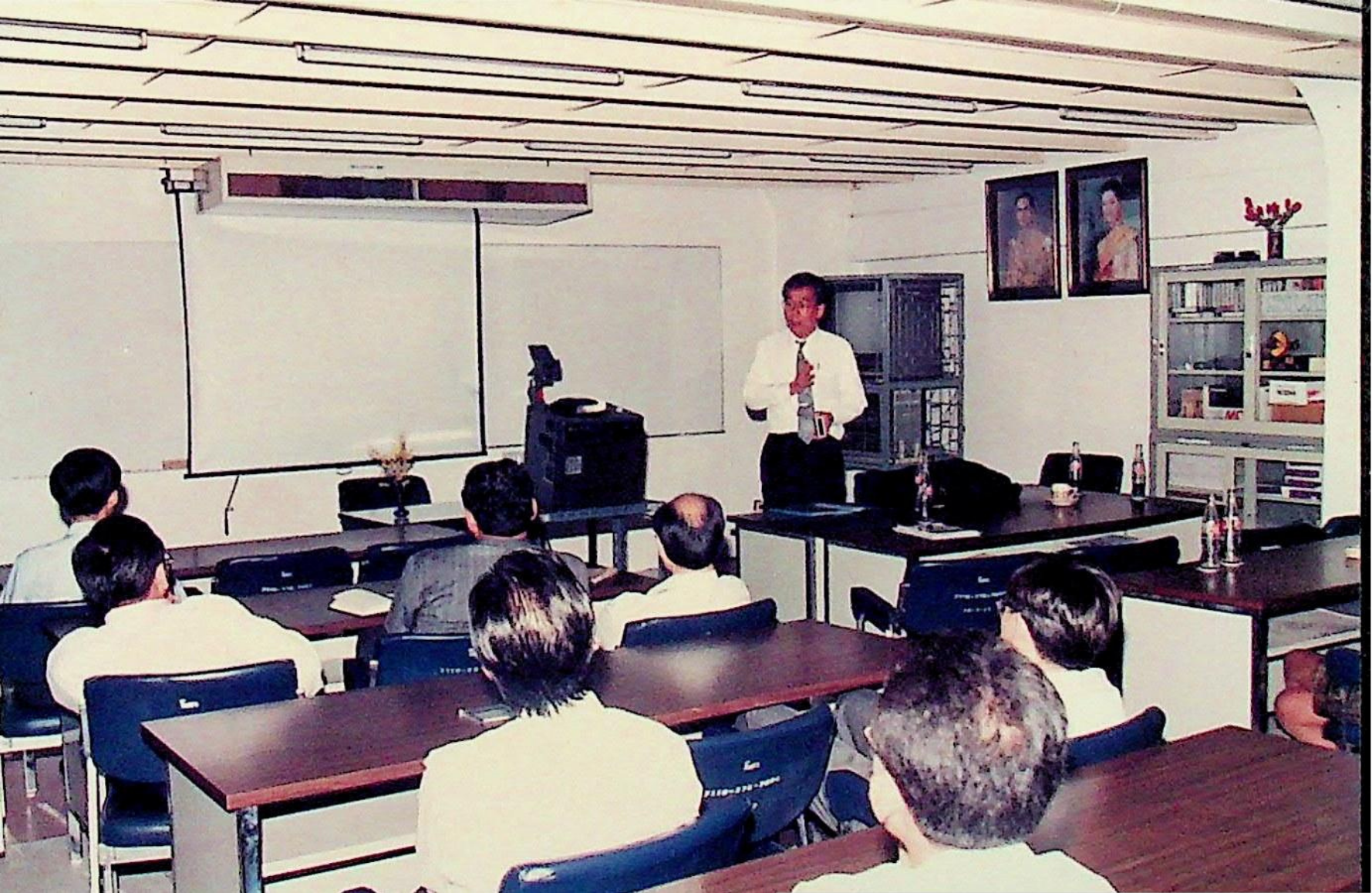 Prof. Chitoshi Miki จากภาควิชาวิศวกรรมโยธา Tokyo Institute of Technology บรรยายพิเศษเรื่อง Introduction to Fracture Mechanics and Its Engineering Application ณ ภาควิชาวิศวกรรมโยธา ในวันพฤหัสบดีที่ 27 กุมภาพันธ์ 2535 จากภาพถ่ายอัลบั้มที่ 356