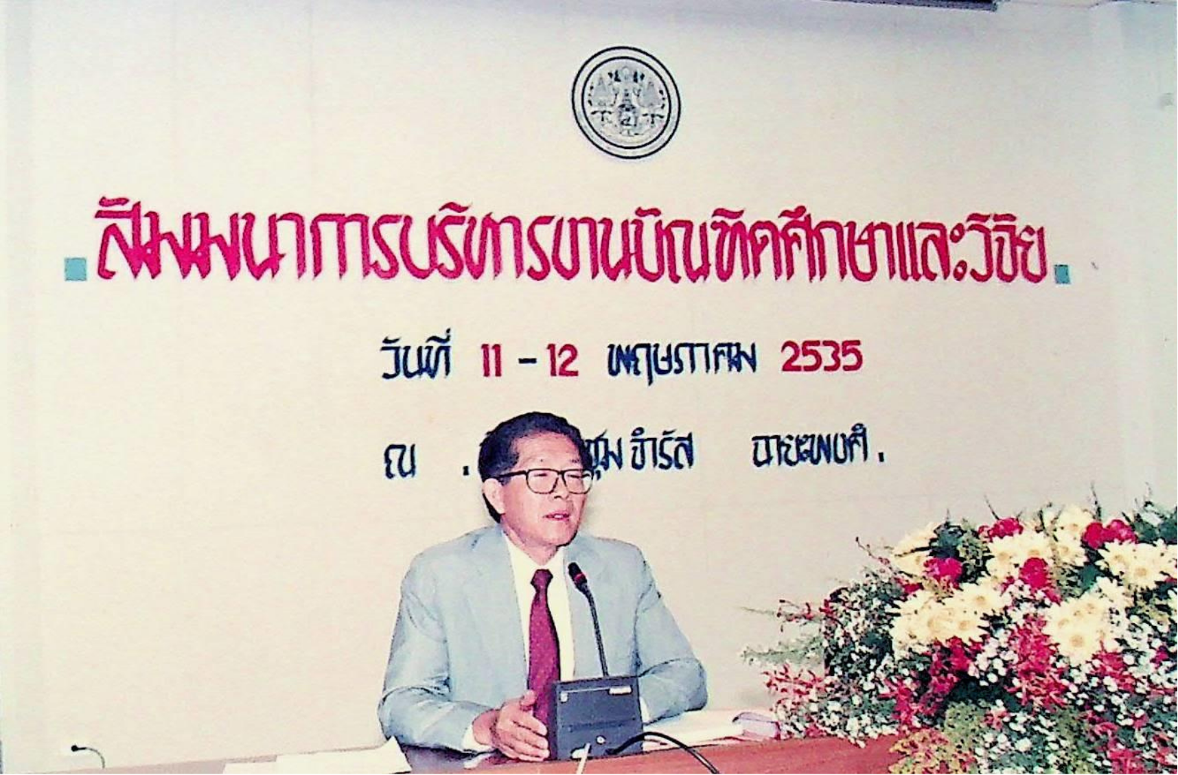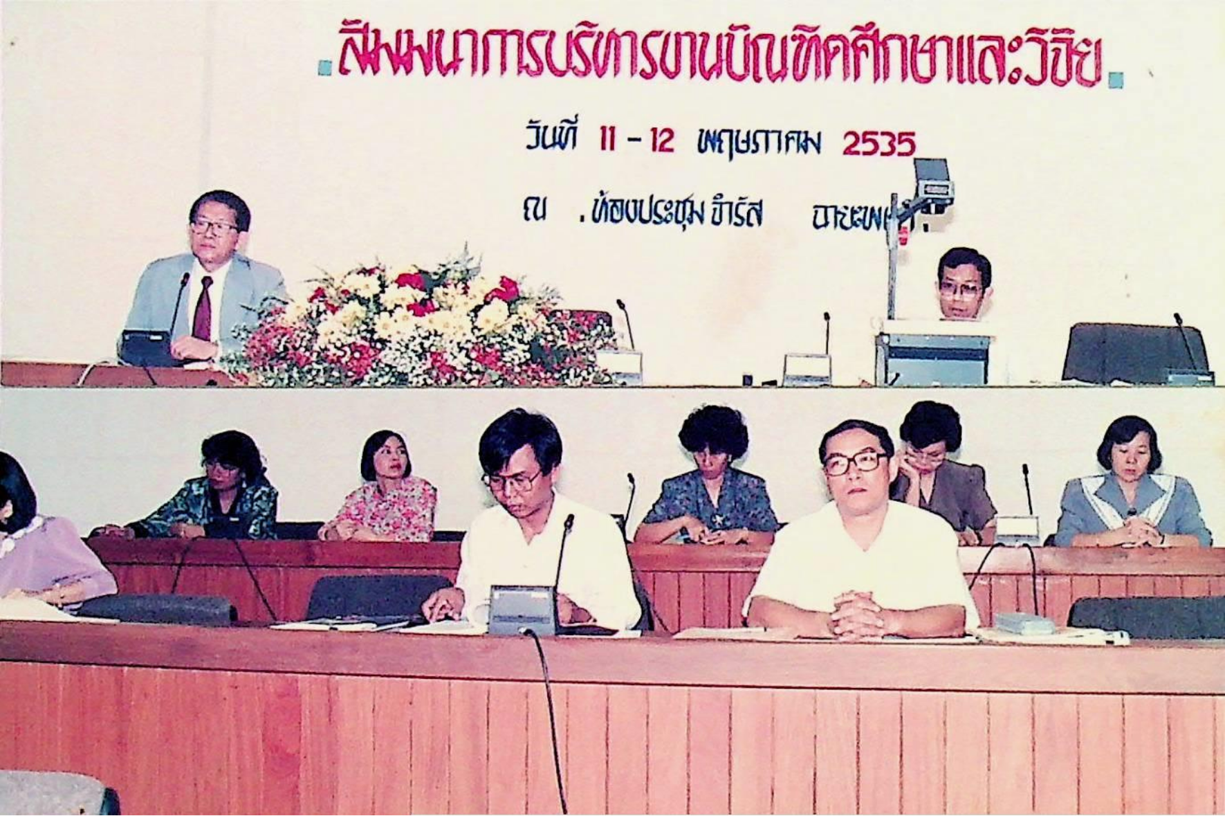 รศ.ดร.ไพบูลย์ หังสพฤกษ์ อธิการบดี เป็นประธานเปิดการสัมมนาเรื่อง การบริหารงานบัณฑิตศึกษาและงานวิจัย ณ ห้องประชุมจํารัส ฉายะพงศ์ ในวันจันทร์ที่ 11 พฤษภาคม 2535 จากภาพถ่ายอัลบั้มที่ 3518