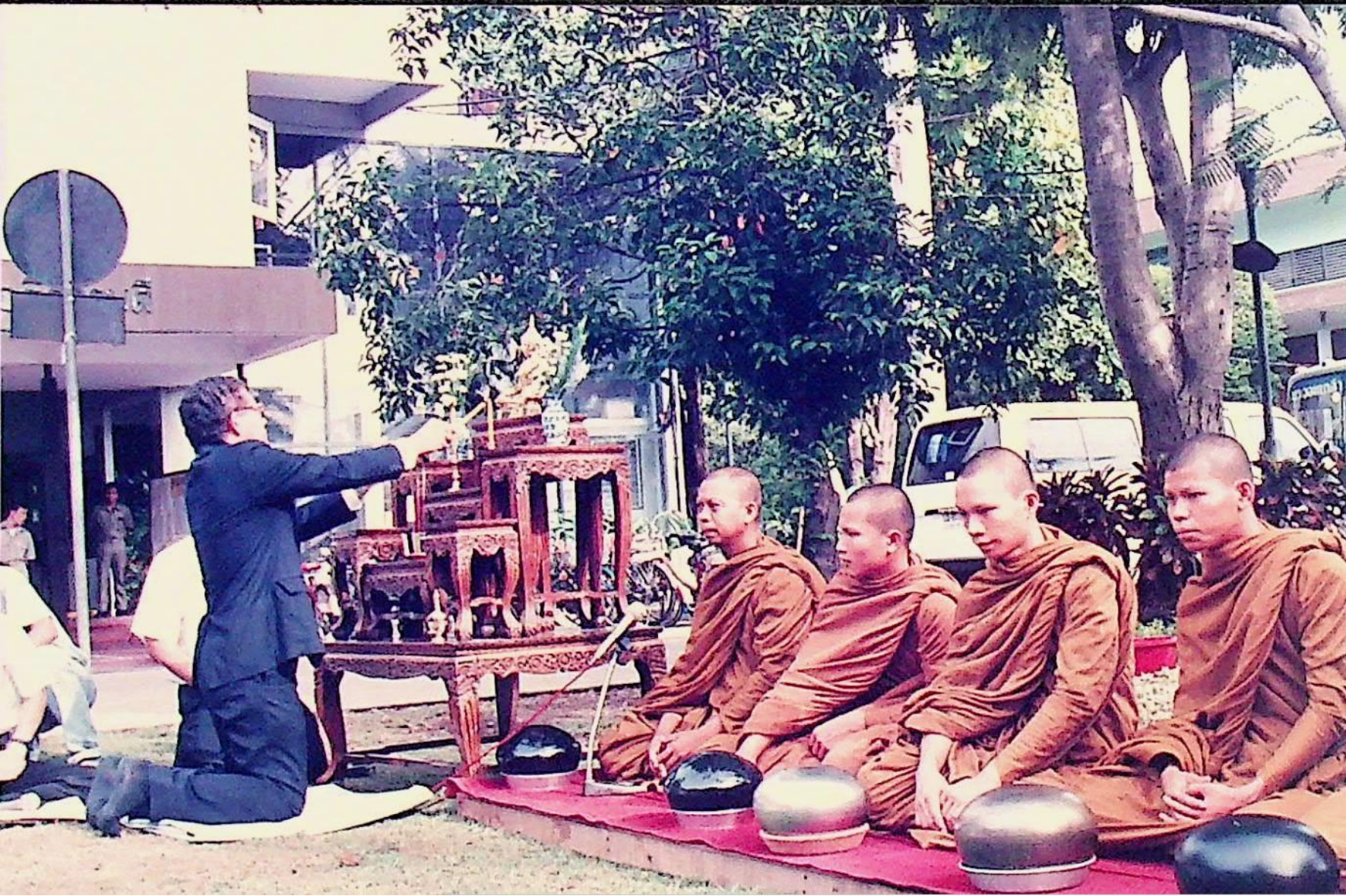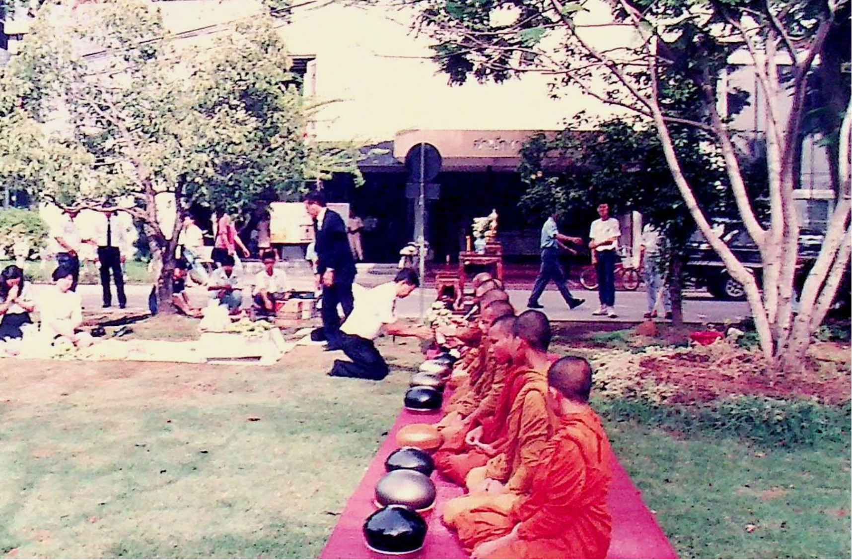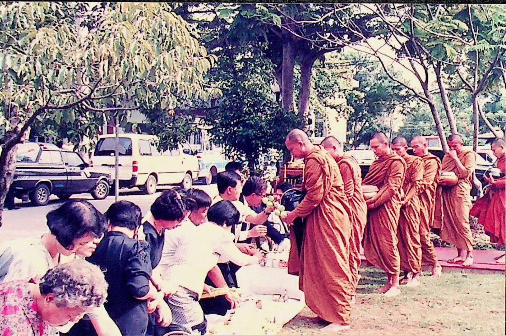 อธิการบดีนำอาจารย์ ข้าราชการ และนักศึกษาของสถาบัน ทำบุญเพื่ออุทิศส่วนกุศลแด่ ผู้เสียชีวิตในเหตุการณ์ชุมนุมเรียกร้องประชาธิปไตย ให้นายกรัฐมนตรีมาจากการเลือกตั้ง ณ หน้าอาคาร สนอ. ในจันทร์ที่ 25 พฤษภาคม 2535 จากภาพถ่ายอัลบั้มที่ 3518