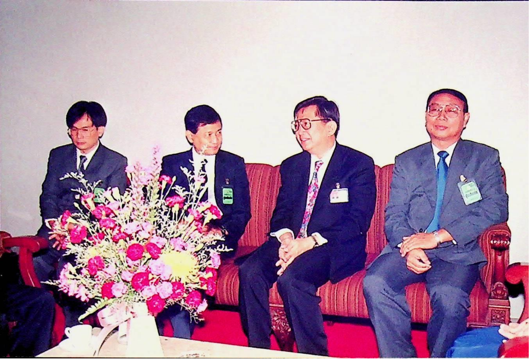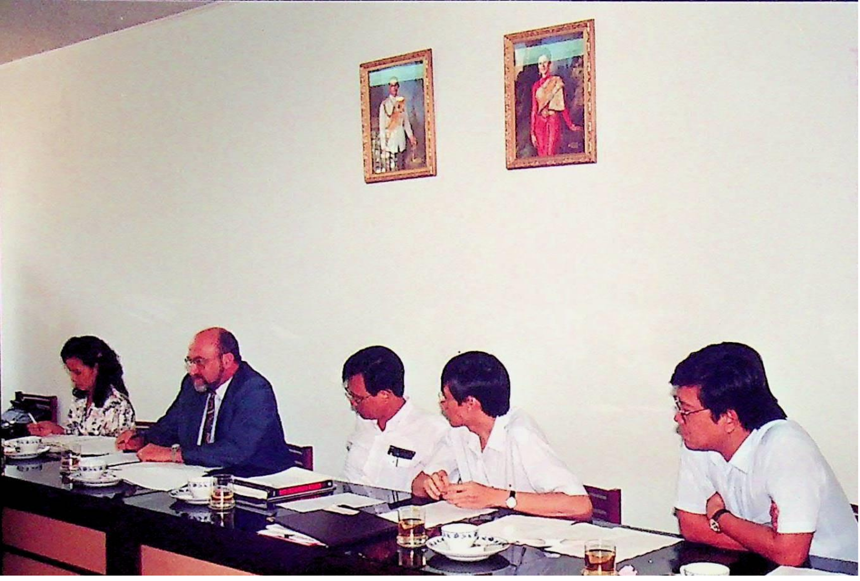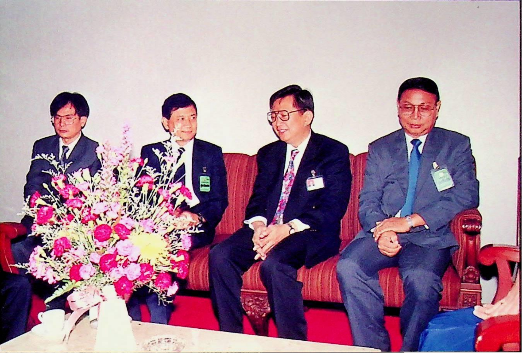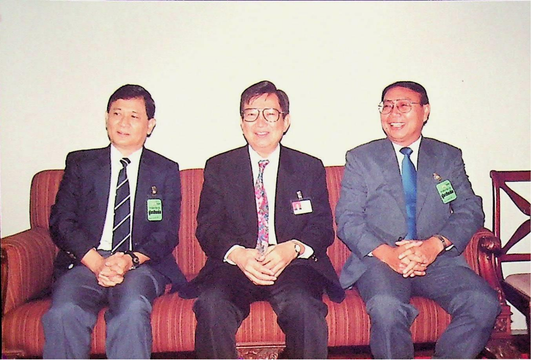 รศ.ดร.หริส สูตะบุตร อธิการบดีและคณะ มอบกระเช้าดอกไม้แสดงความยินดีแด่ พณฯ เทอดพงษ์ ไชยนันทน์ เนื่องในโอกาสเข้าดำรงตำแหน่ง รัฐมนตรีประจำสำนักนายกรัฐมนตรี ณ ตึกบัญชาการ ทำเนียบรัฐบาล ในวันพฤหัสบดีที 29 ตุลาคม 2535 จากภาพถ่ายอัลบั้มที่ 3559