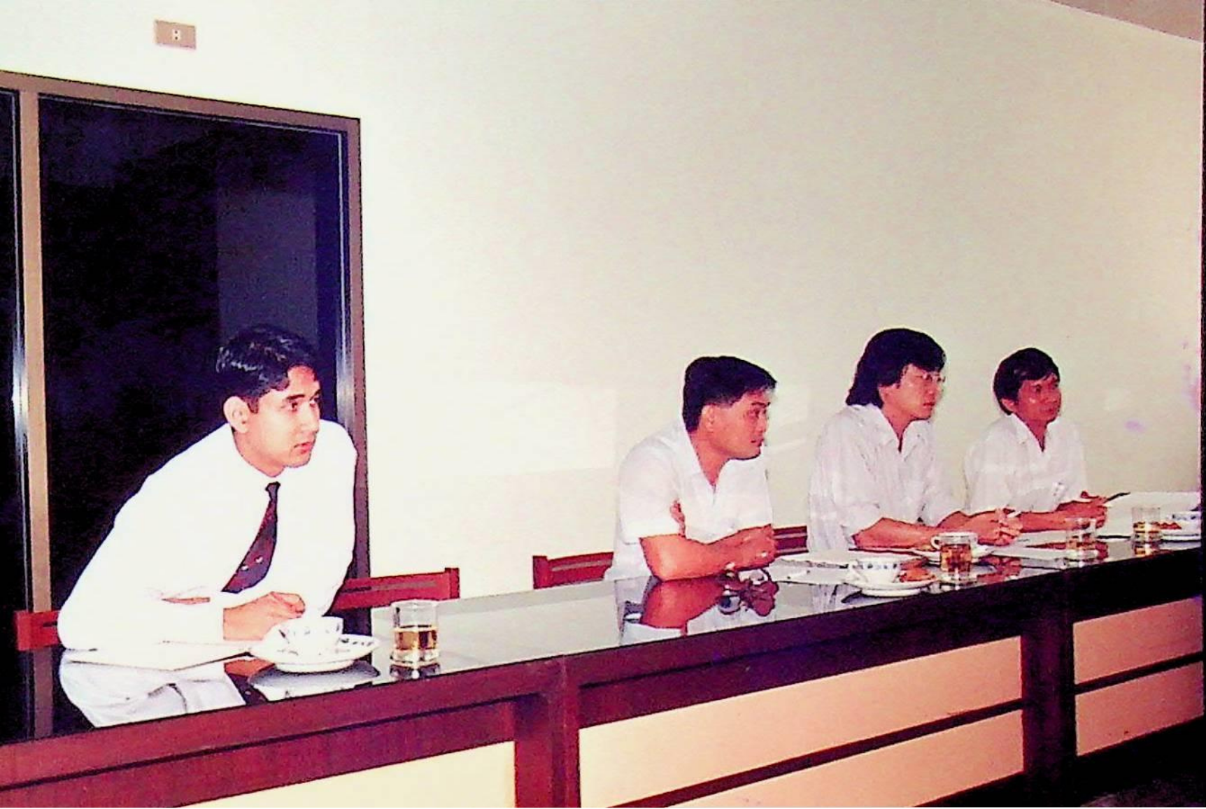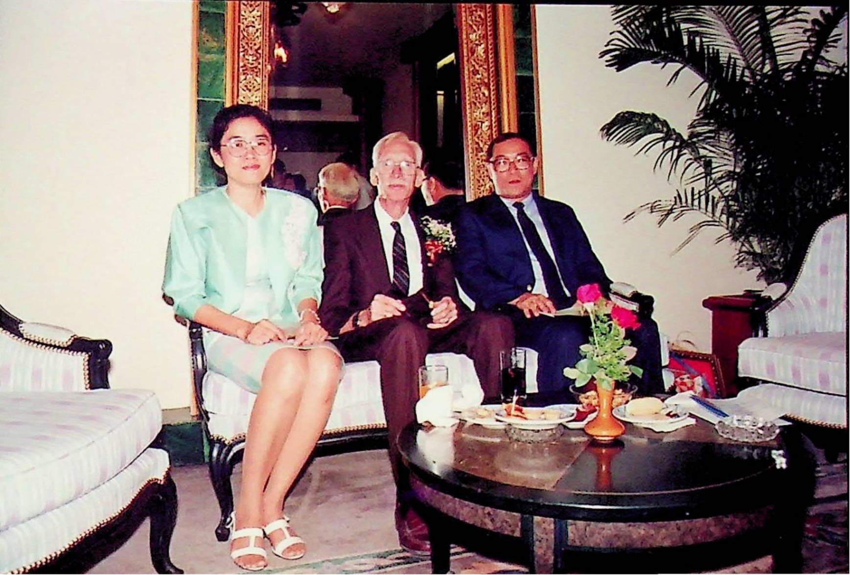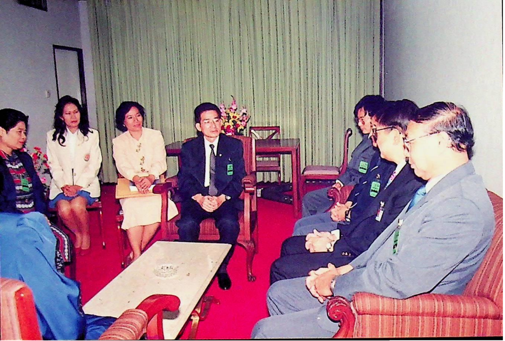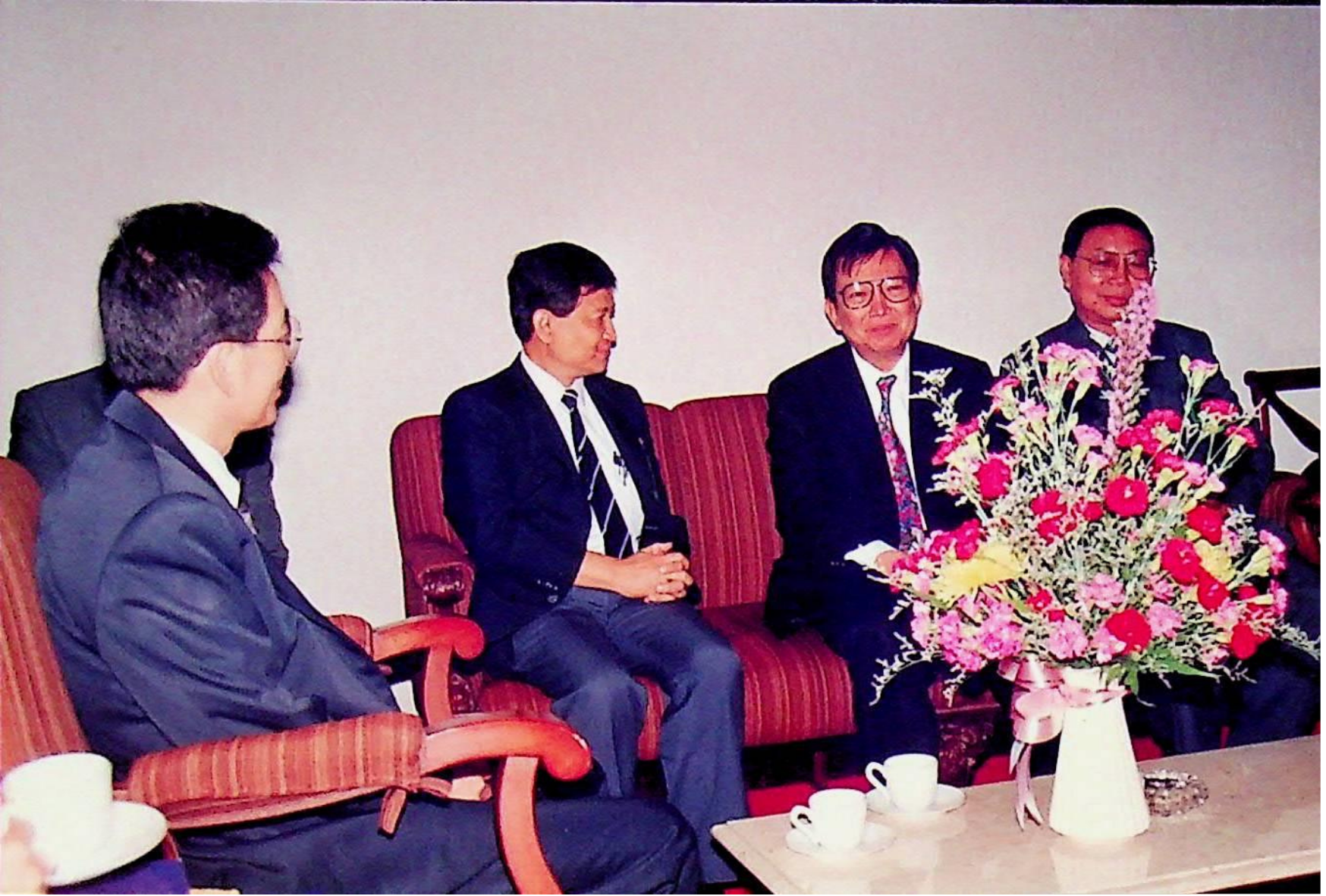 รศ.ดร.หริส สูตะบุตร อธิการบดีและคณะ มอบกระเช้าดอกไม้แสดงความยินดีแด่ พณฯ เทอดพงษ์ ไชยนันทน์ เนื่องในโอกาสเข้าดำรงตำแหน่ง รัฐมนตรีประจำสำนักนายกรัฐมนตรี ณ ตึกบัญชาการ ทำเนียบรัฐบาล ในวันพฤหัสบดีที 29 ตุลาคม 2535 จากภาพถ่ายอัลบั้มที่ 3559