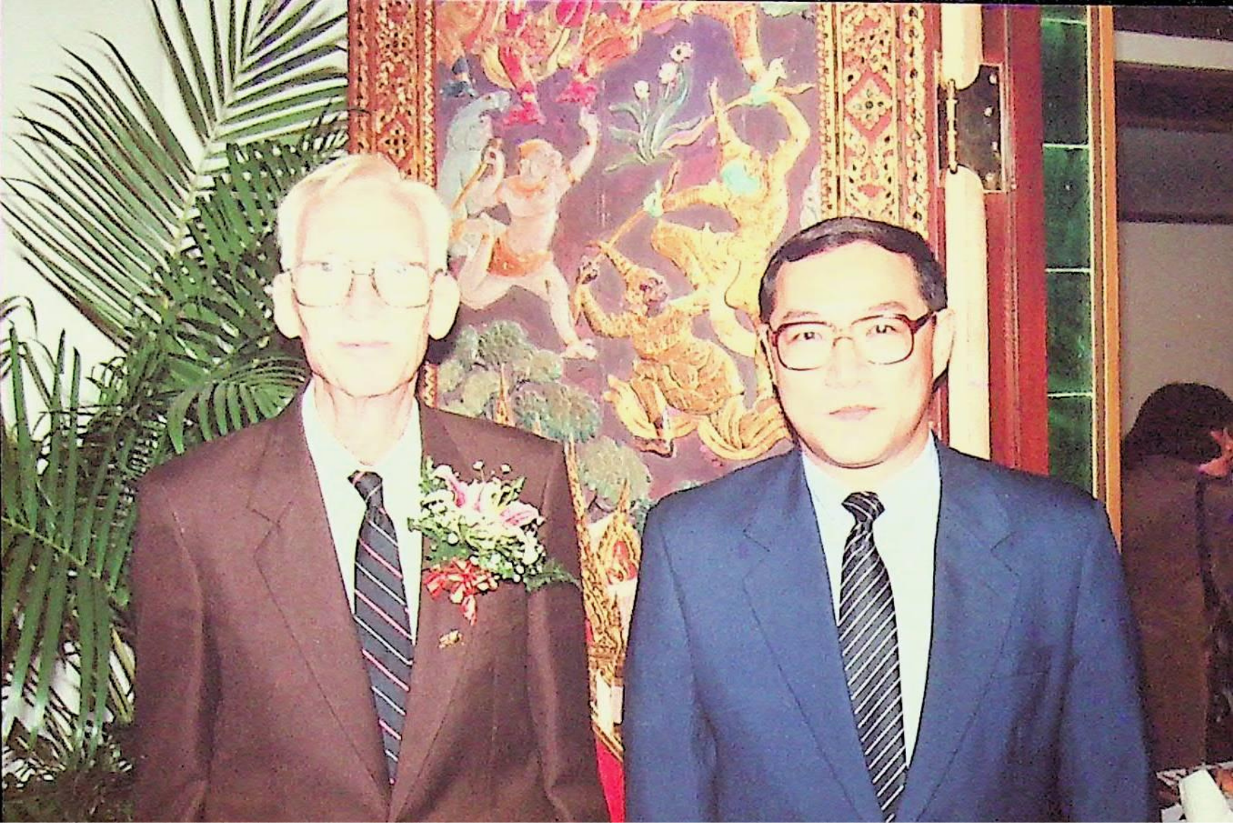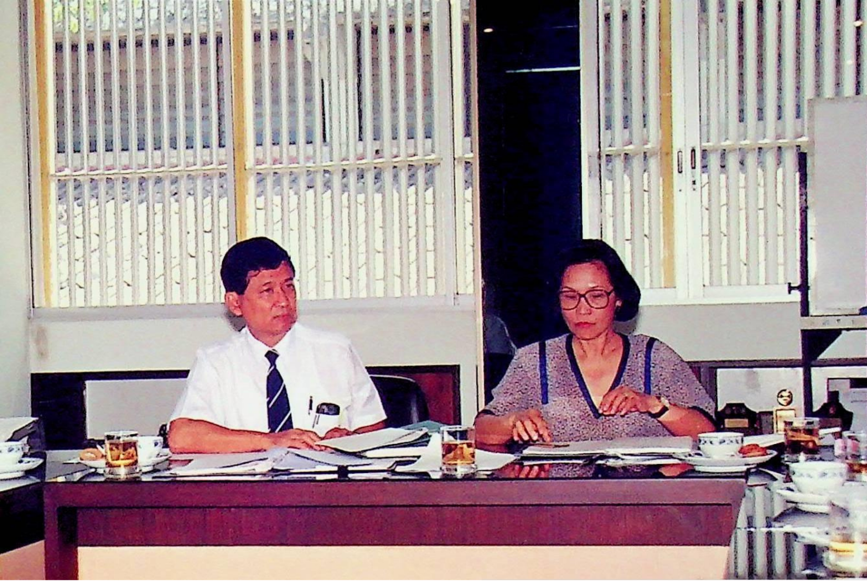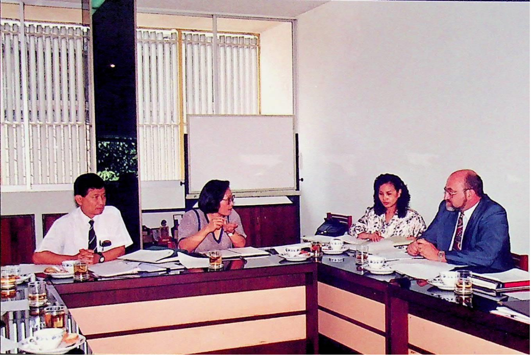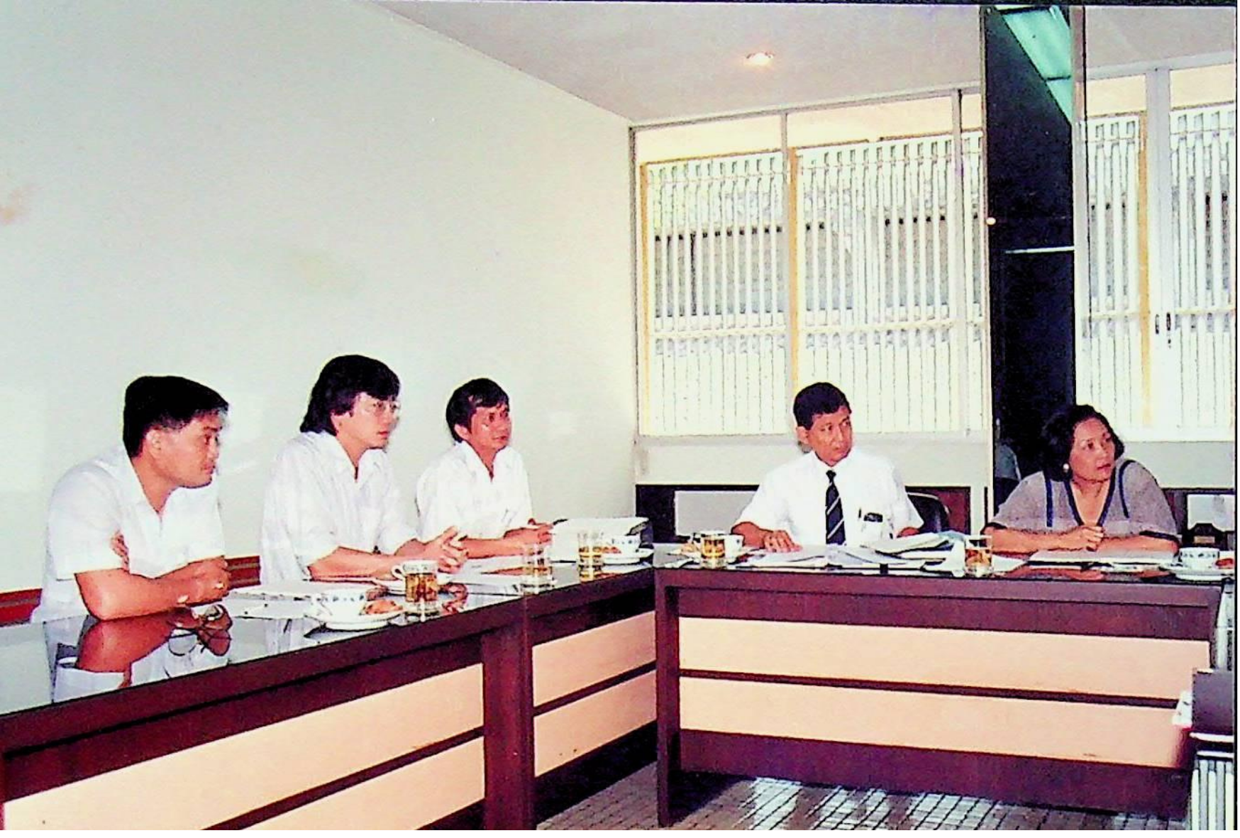 รศ.ดร.หริส สูตะบุตร อธิการบดีและคณะ มอบกระเช้าดอกไม้แสดงความยินดีแด่ พณฯ เทอดพงษ์ ไชยนันทน์ เนื่องในโอกาสเข้าดำรงตำแหน่ง รัฐมนตรีประจำสำนักนายกรัฐมนตรี ณ ตึกบัญชาการ ทำเนียบรัฐบาล ในวันพฤหัสบดีที 29 ตุลาคม 2535 จากภาพถ่ายอัลบั้มที่ 3559