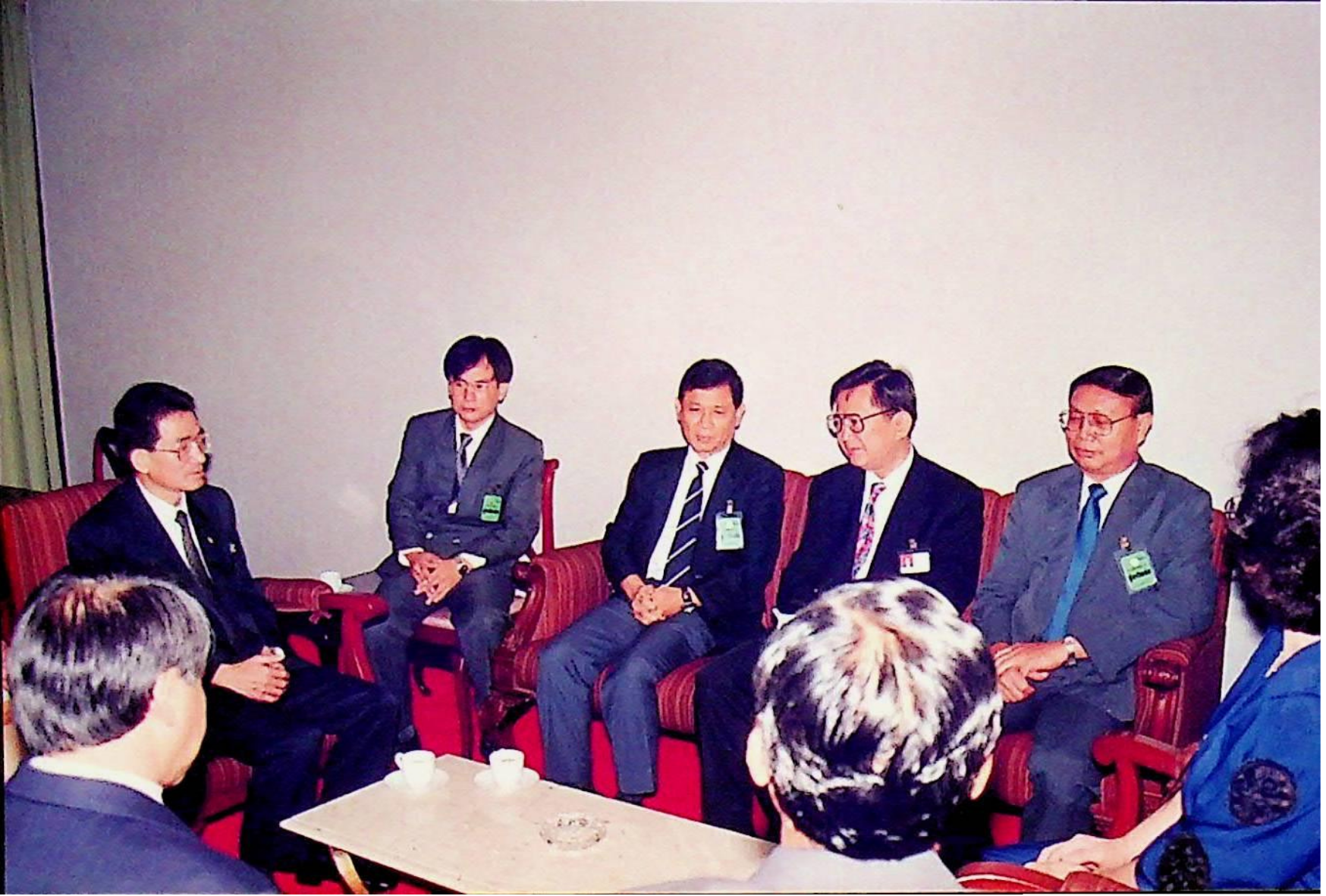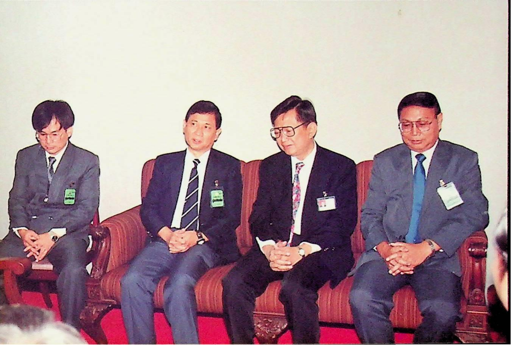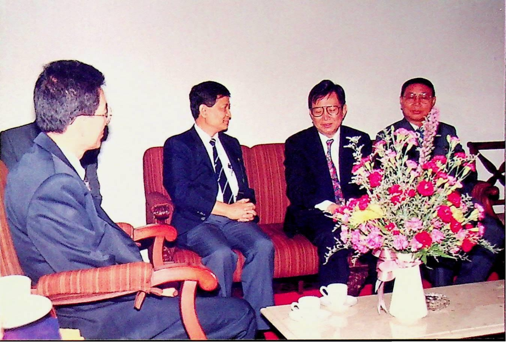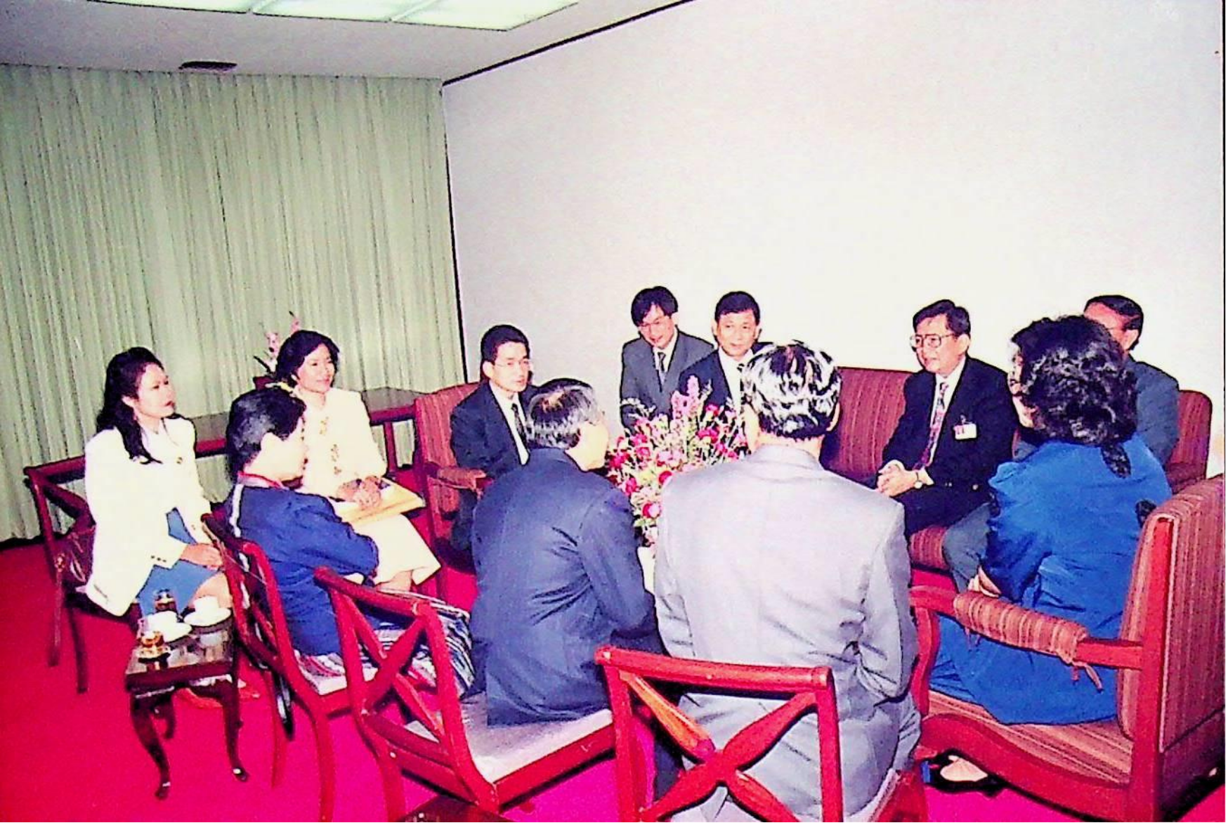 รศ.ดร.หริส สูตะบุตร อธิการบดีและคณะ มอบกระเช้าดอกไม้แสดงความยินดีแด่ พณฯ เทอดพงษ์ ไชยนันทน์ เนื่องในโอกาสเข้าดำรงตำแหน่ง รัฐมนตรีประจำสำนักนายกรัฐมนตรี ณ ตึกบัญชาการ ทำเนียบรัฐบาล ในวันพฤหัสบดีที 29 ตุลาคม 2535 จากภาพถ่ายอัลบั้มที่ 3559