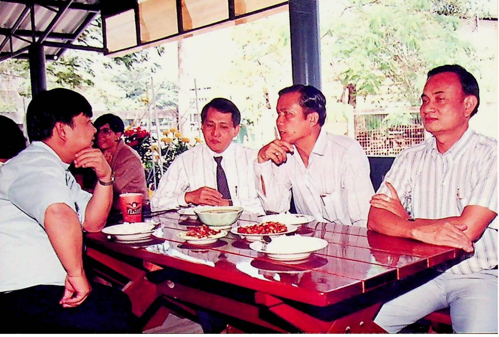 อาจารย์สุชาติ เพริดพริ้ง รองอธิการบดีฝ่ายบริหาร เป็นประธานเปิดการให้บริการโรงอาหารแห่งใหม่ บริเวณคณะพลังงานและวัสดุ ณ โรงอาหาร บริเวณคณะพลังงาน ในวันพุธที่ 4 พฤศจิกายน 2535 จากภาพถ่ายอัลบั้มที่ 3560