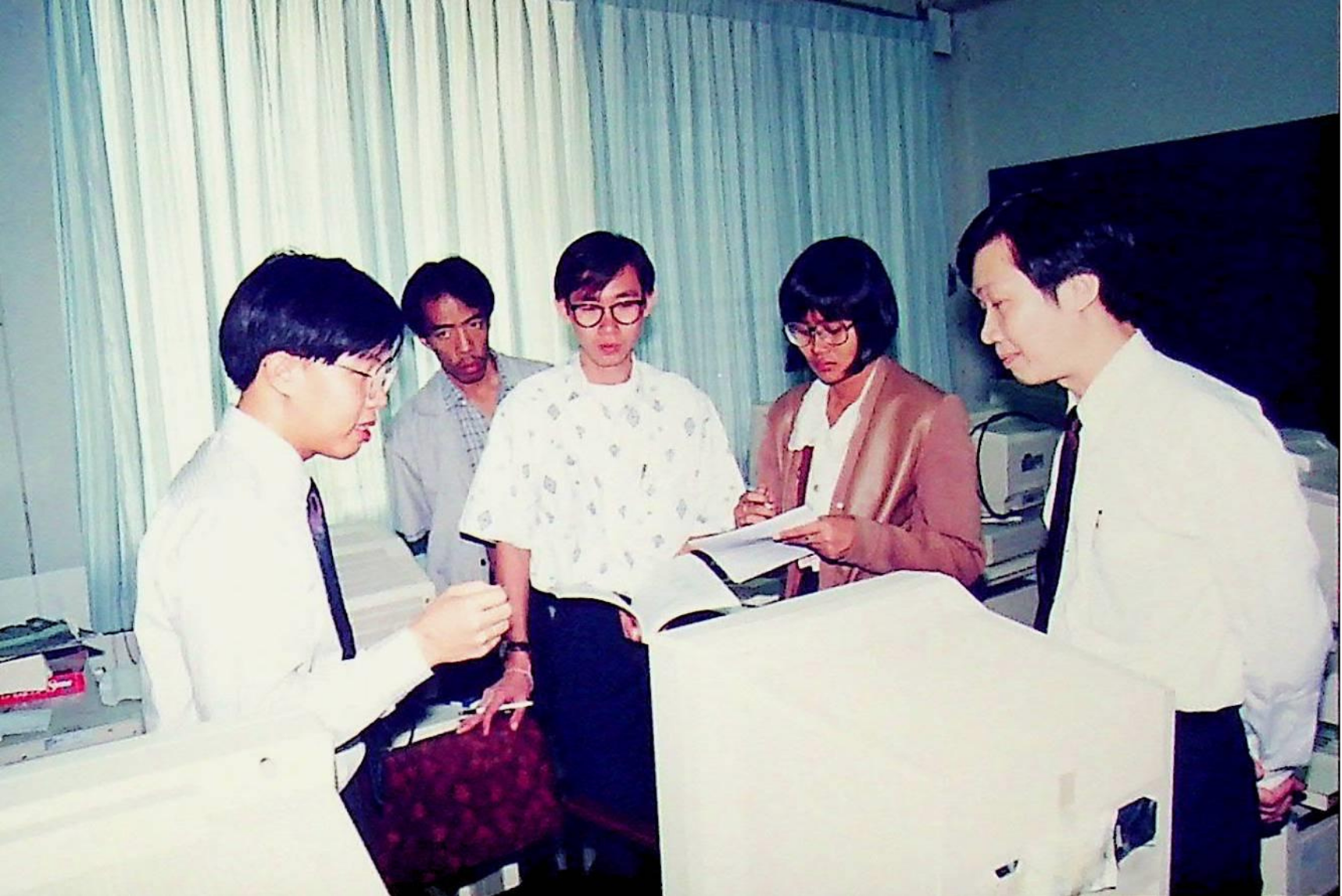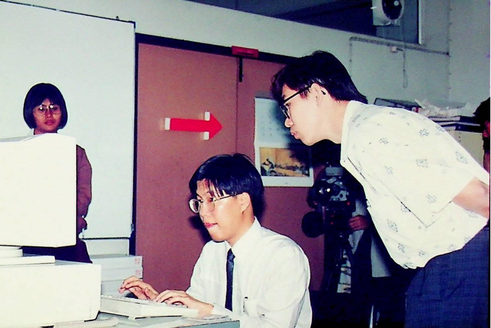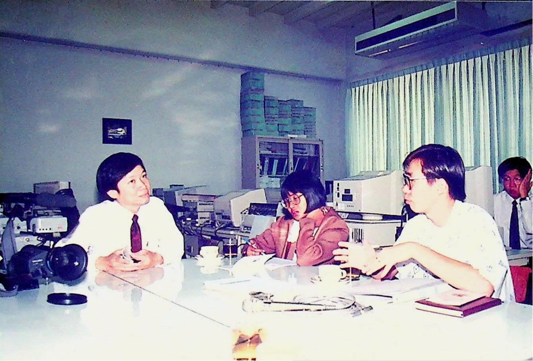 ผู้สื่อข่าวสถานีโทรทัศน์สีกองทัพบก ช่อง 7 ทำข่าว ปัญญาประดิษฐ์ ระบบผู้เชี่ยวชาญ โดยสัมภาษณ์ อาจารย์บุญเจริญ ศิริเนาวกุล เพื่อนำไปแพร่ภาพในรายการ คนไทยวันนี้ ณ ศูนย์วิจัยปัญญาประดิษฐ์ ในวันอังคารที่ 17 พฤศจิกายน 2535 จากภาพถ่ายอัลบั้มที่ 3563