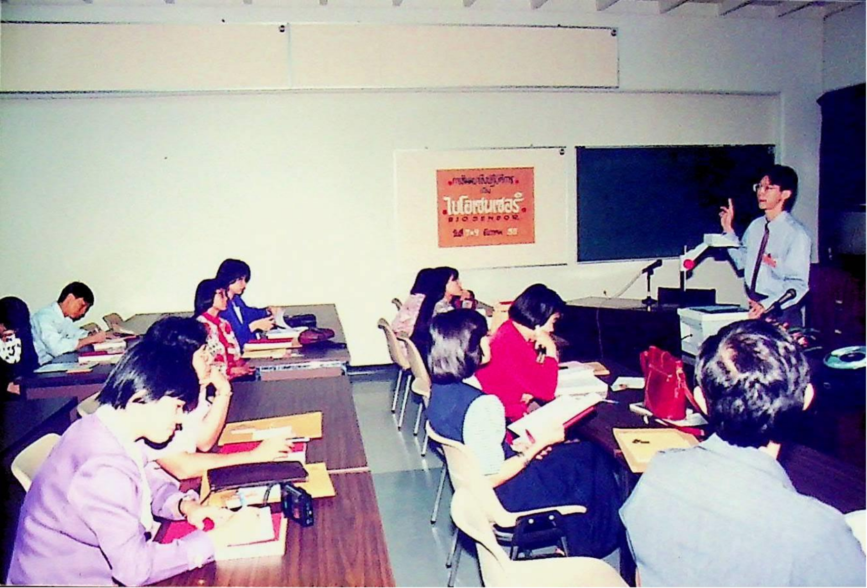 สายวิชาเทคโนโลยีชีวภาพ คณะทรัพยากรชีวภาพและเทคโนโลยี ร่วมกับสถาบันพัฒนาและฝึกอบรมโรงงานต้นแบบ และศูนย์การศึกษาต่อเนื่อง จัดสัมมนาเชิงปฏิบัติการ เรื่อง ไบโอเซนเซอร์ ณ อาคารสัมมนา ชั้น 3 ในวันจันทร์ที่ 7 ธันวาคม 2535 จากภาพถ่ายอัลบั้มที่ 3571