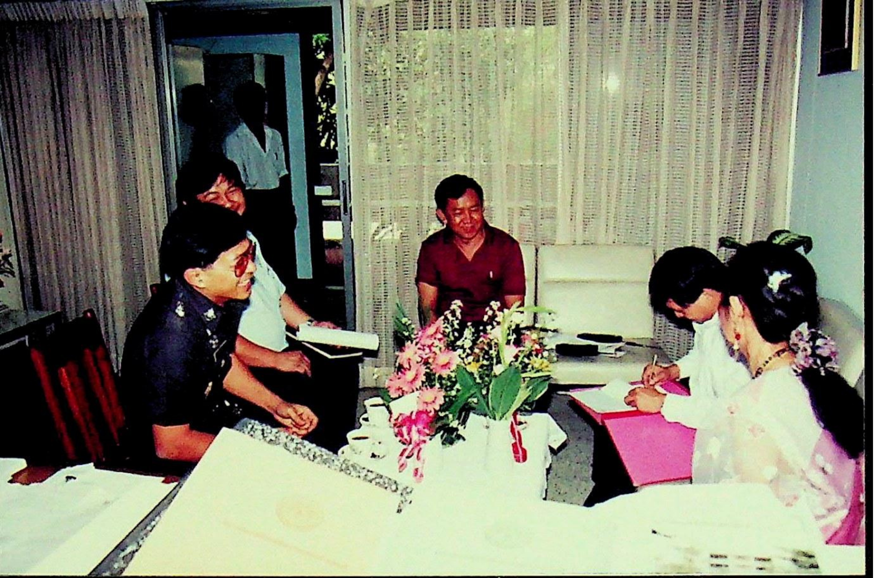พ.ต.ท.วิโรจน์ พานิชผล สารวัตรใหญ่ สถานีตำรวจนครบาลราษฎร์บูรณะ เข้าเยี่ยมคำนับและปรึกษาข้อราชการกับ อาจารย์สุชาติ เพริดพริ้ง รองอธิการบดีฝ่ายบริหาร ณ ห้องรองอธิการบดีฝ่ายบริหาร ในวันพุธที่ 6 มกราคม 2536