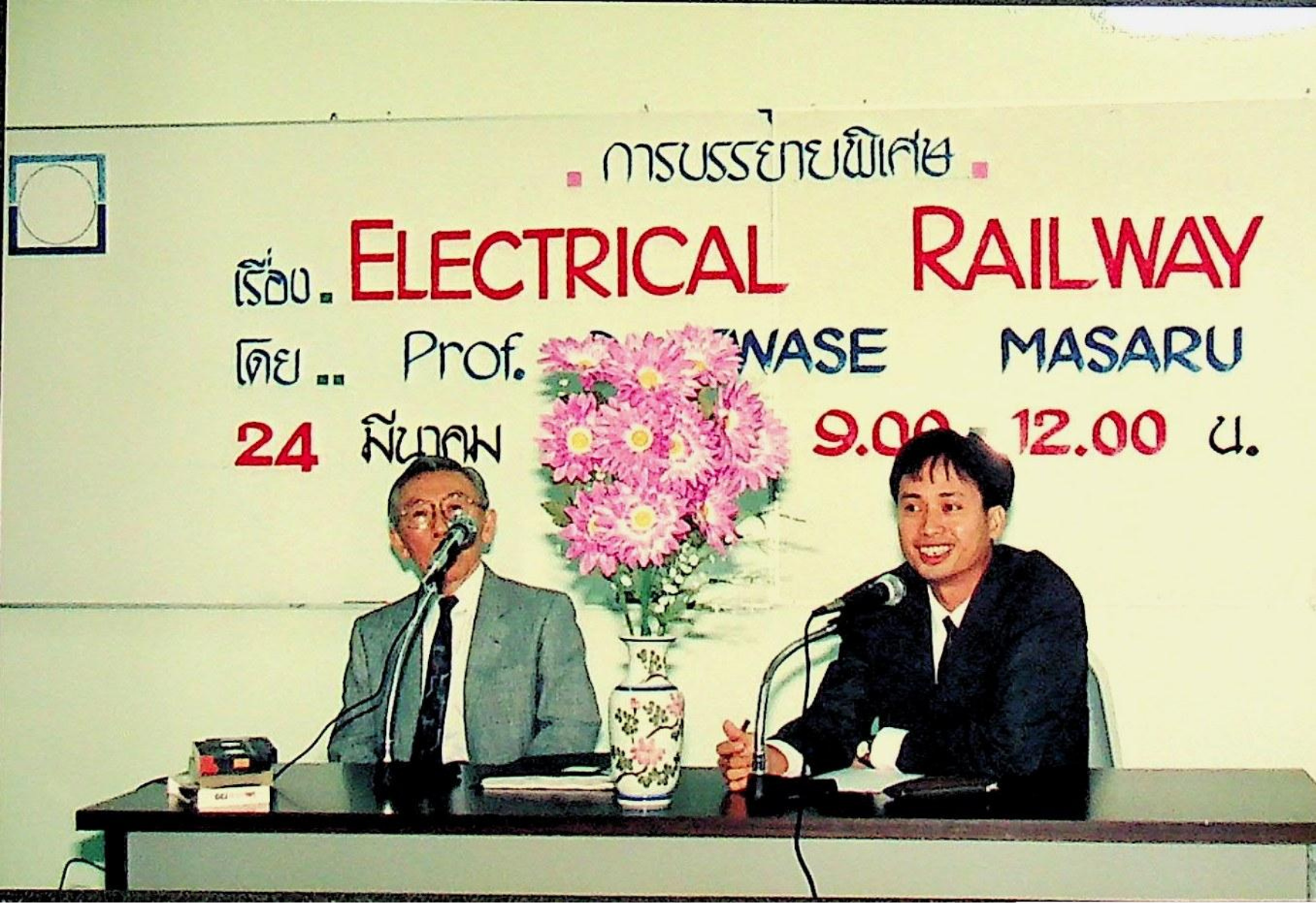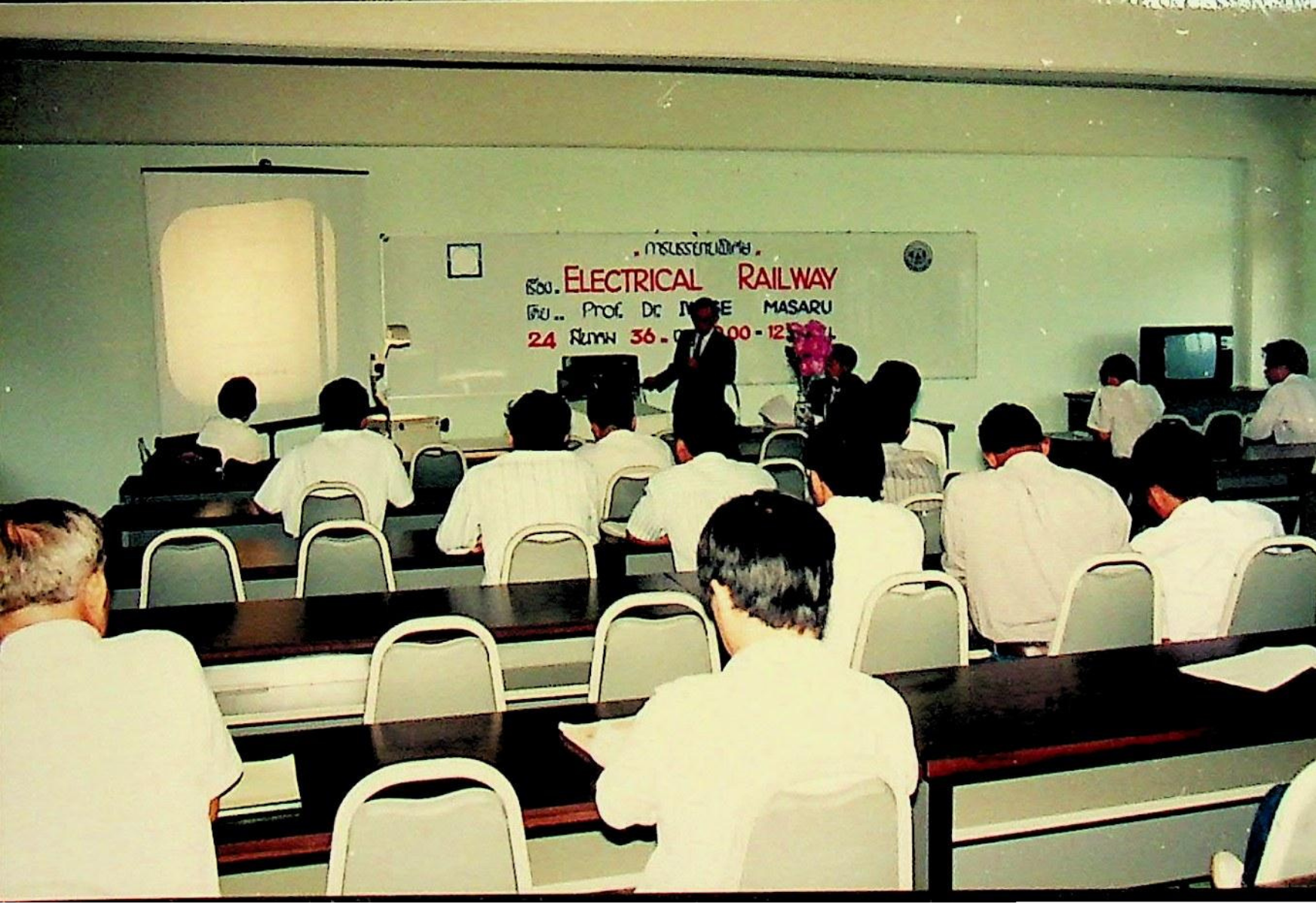 Prof. Dr. Iwase Masaru จาก Nippon Institute of Technology เข้าพบอธิการบดี คณบดีคณะวิศวกรรมศาสตร์ พร้อมทั้งบรรยายพิเศษเรื่อง รถไฟฟ้า (Electric Railway) ณ ห้องอธิการบดี,ภาควิชาวิศวกรรมไฟฟ้า อาคารสัมมนา ในวันพุธที 24 มีนาคม 2536 จากภาพถ่ายอัลบั้มที่ 3624