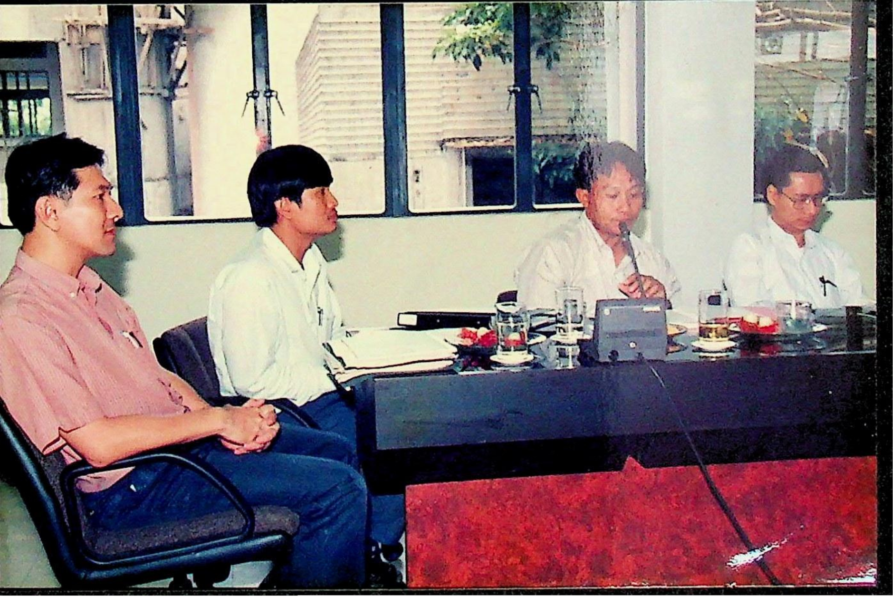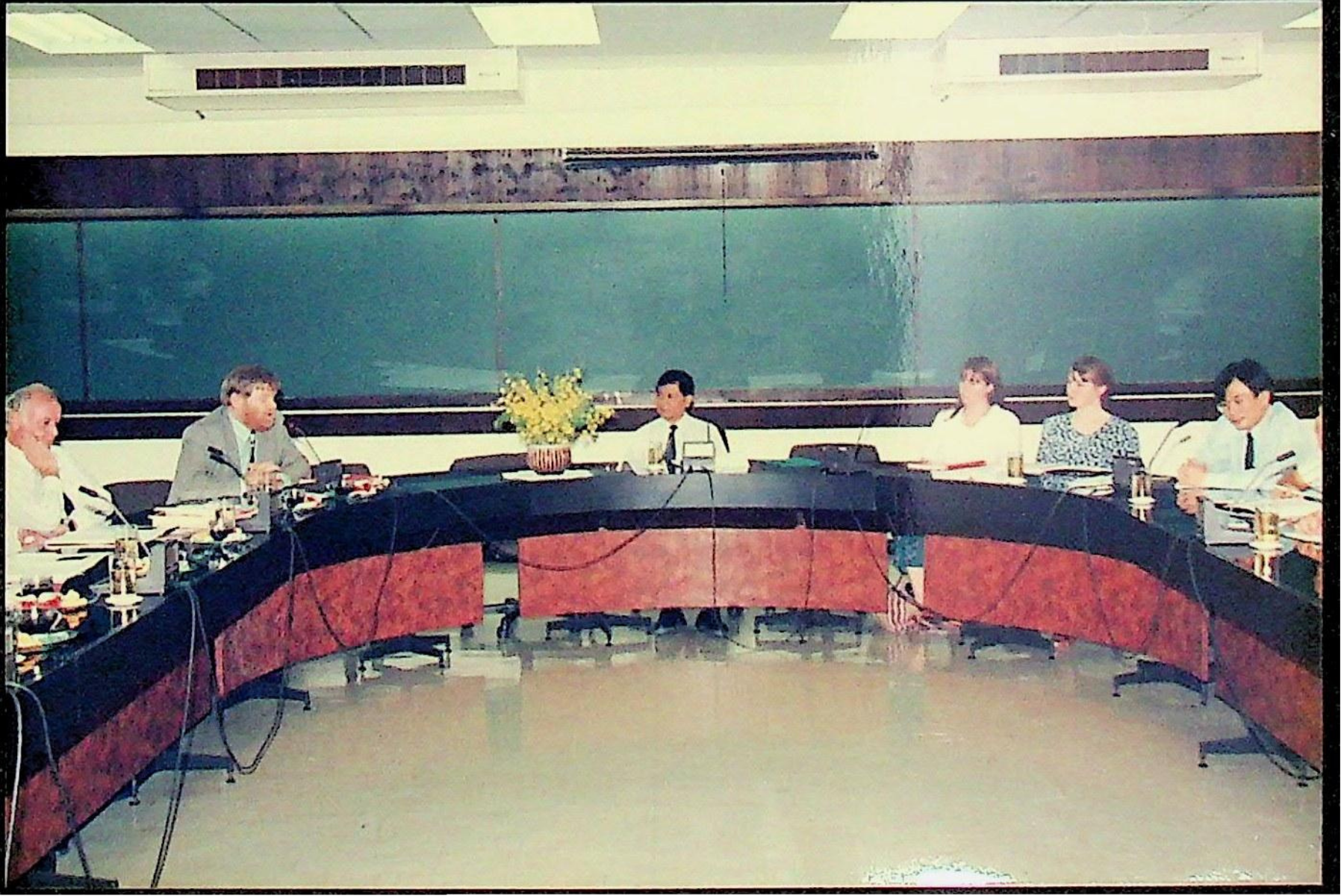 รศ.ดร.หริส สูตะบุตร อธิการบดี และคณะ ให้การต้อนรับ และปฐมนิเทศนักศึกษาปีสุดท้ายจาก University of Melbourne ประเทศออสเตรเลีย ซึ่งเข้ามาทำโครงการในประเทศไทย ระหว่างวันที่ 27 มิ.ย. - 25 ก.ค. 2536 ตามโครงการความร่วมมือด้านการแลกเปลี่ยนทางวิชาการระหว่าง U. of Melbourne กับสถาบัน ณ ห้อง CB.2313 อาคารเรียนรวม 2 ในวันจันทร์ที่ 28 มิถุนายน 2536 จากภาพถ่ายอัลบั้มที่ 3636