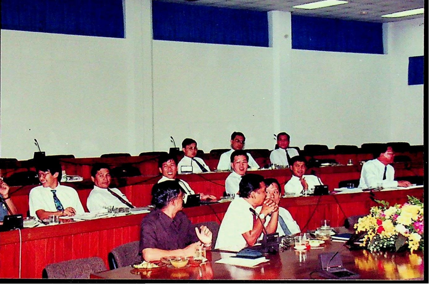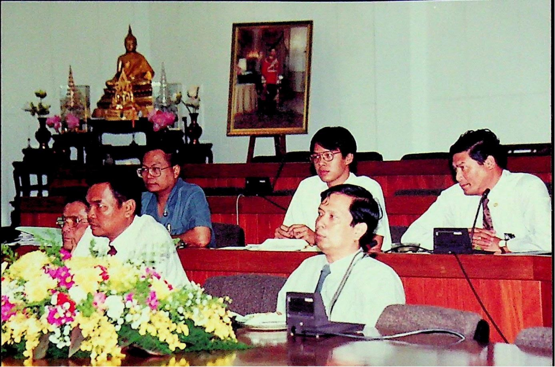 สมาชิกสภาผู้แทนราษฎร เขต 9 กรุงเทพมหานคร นายถวิล ไพรสณฑ์ รองประธานสภาผู้แทนราษฎร และนายเธียร มโนหรทัต เข้าเยี่ยม และรับฟังการดำเนินงาน และผลงานวิจัยของคณะวิศวกรรมศาสตร์ โดยมี รศ.ดร.หริส สูตะบุตร อธิการบดี และ รศ.ดร.เดช พุทธเจริญทอง คณบดีคณะวิศวกรรมศาสตร์ และคณะให้การต้อนรับ ณ ห้องประชุมจํารัส ฉายะพงศ์ ในวันอังคารที่ 6 กรกฏาคม 2536 จากภาพถ่ายอัลบั้มที่ 3637