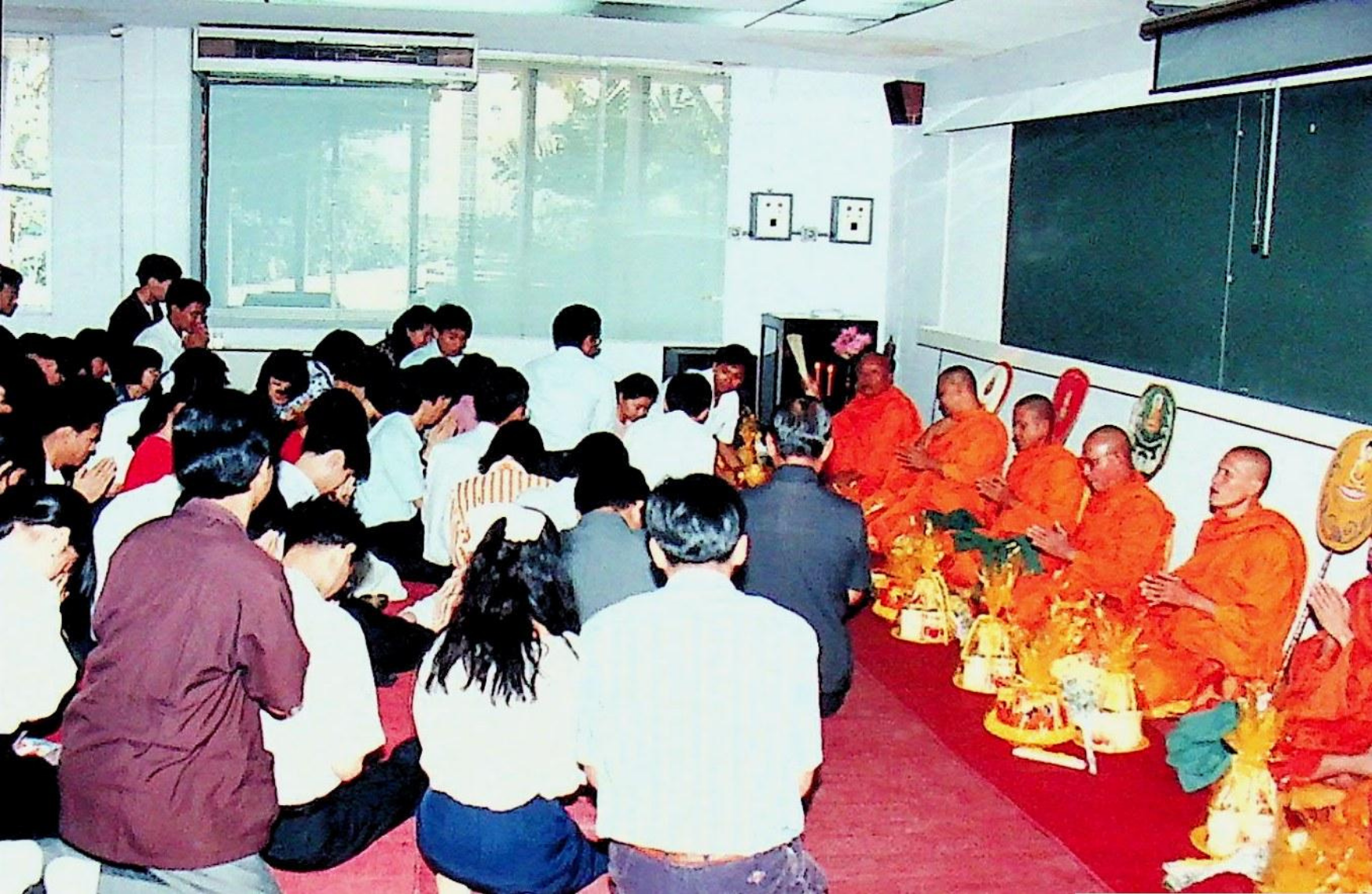 ภาควิชาวิศวกรรมเคมี จัดพิธีถวายภัตตาหารเพลแด่พระสงฆ์ เนื่องในโอกาสครบรอบ 20 ปีของการก่อตั้งภาควิชา ณ ห้องสัมมนา ภาควิชาวิศวกรรมเคม ในวันพุธที่ 3 พฤศจิกายน 2536 จากภาพถ่ายอัลบั้มที่ 3669